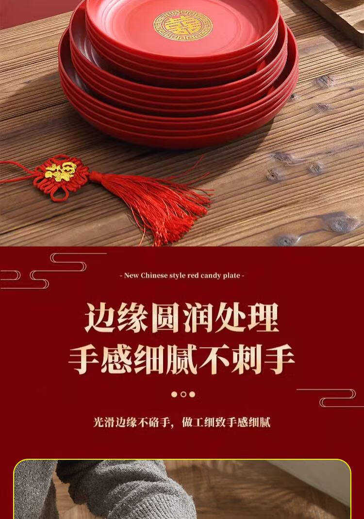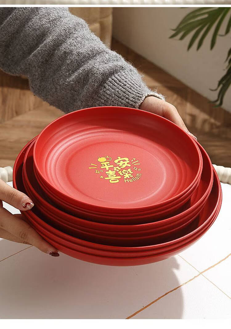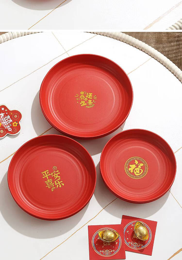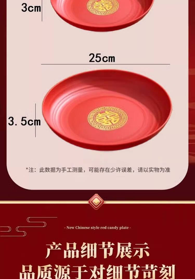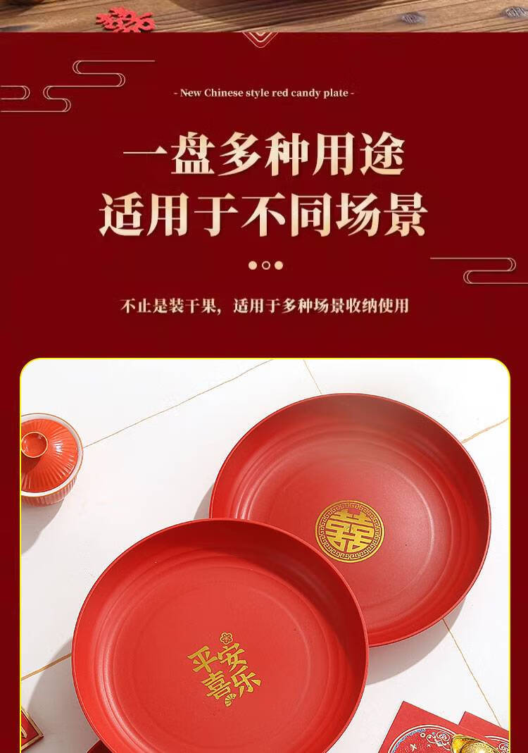 Fantasy Wedding Housewarming Birthday Banquet Disposable Plates Plastic Thickened Red Environmentally Friendly Festive Dried Fruit Candy Dinner Plate Happy Word Disposable Plate 20cm 8 Pack