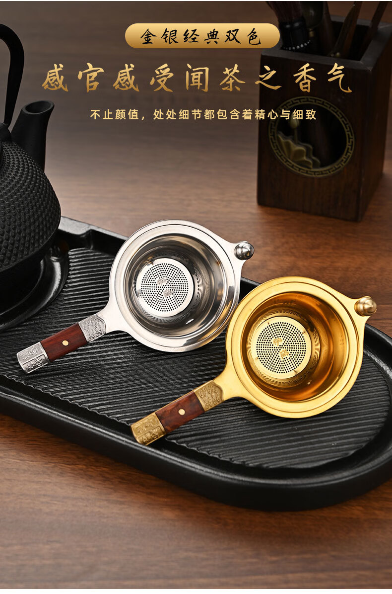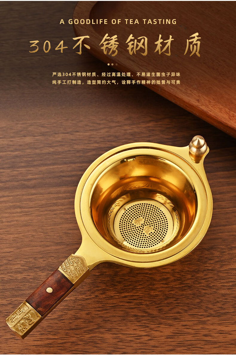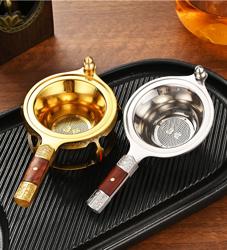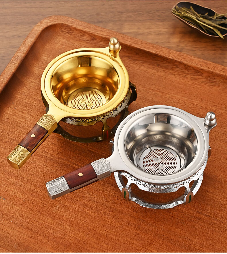 Betfair 304 stainless steel tea drain tea set accessories high-end tea filter tea filter tea filter combination filter bracket Jixiang Ruyi-304 gold tea drain + golden octagonal base