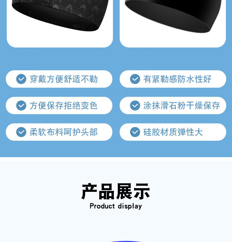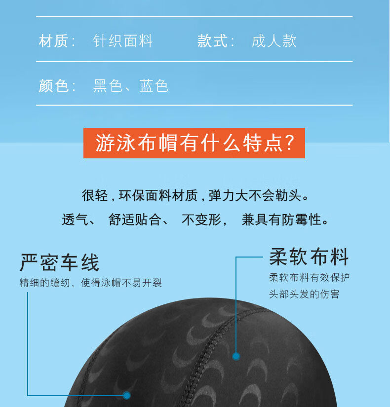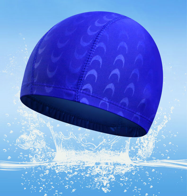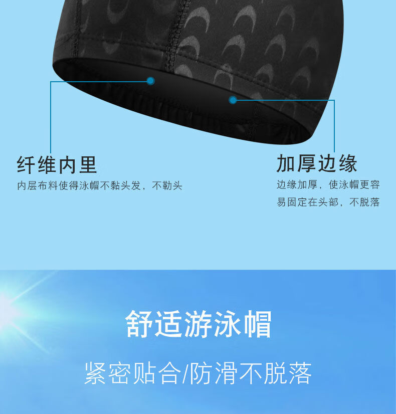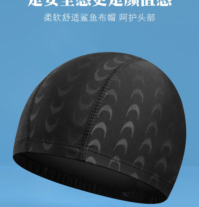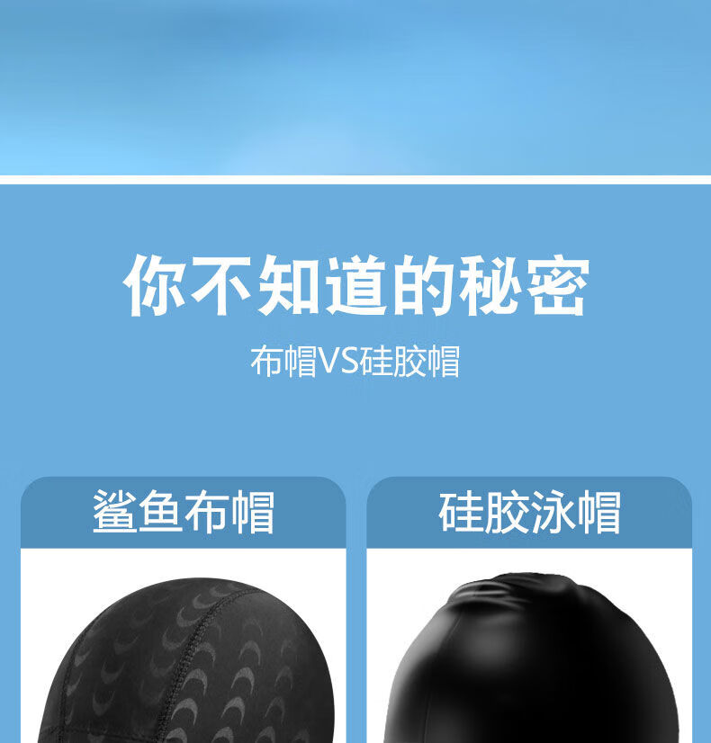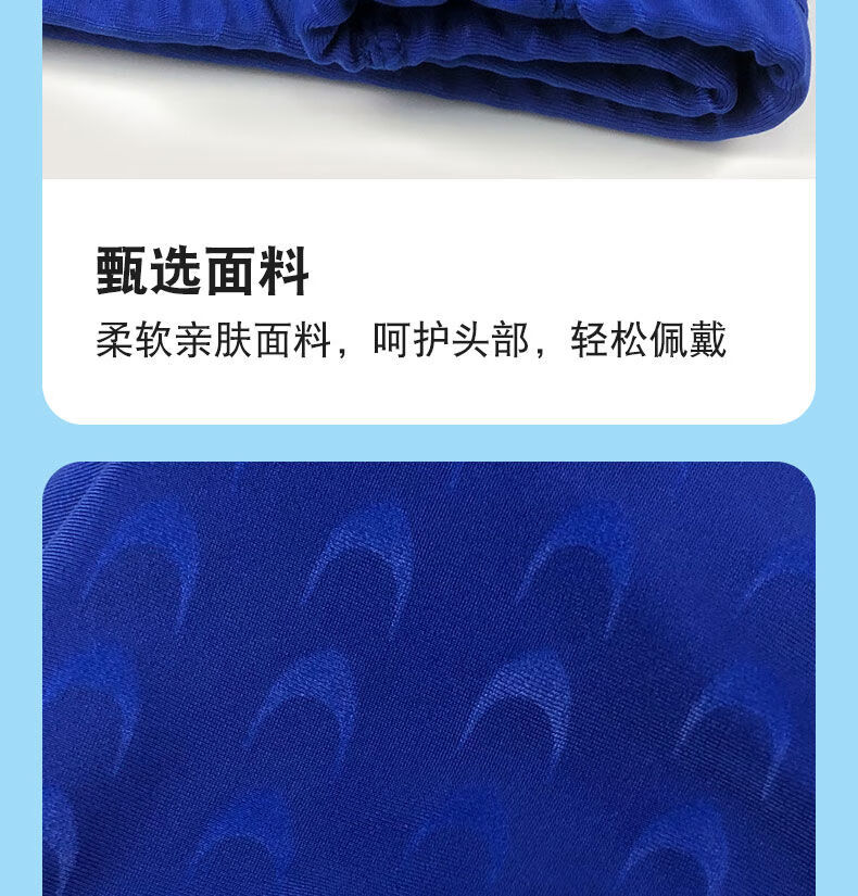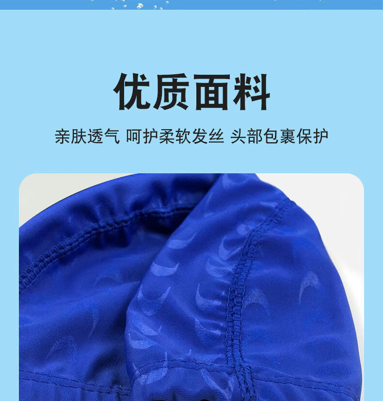 Swimming cap for men with large head circumference, sharkskin fabric, sun protection, oversized swimming trunks and goggles set for men, blue + nose clip and earplugs