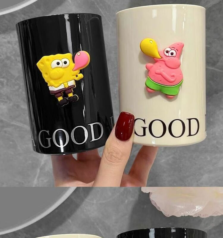 Vinoya Cute Crayon Xiaoxin Gao Washing Couple Mouthwash Cup High-value Home Student Dormitory Tooth Cylinder Brushing Cup Balloon Spongebob + Balloon Patrick Star 2-pack Sensitive Mouthwash Cup Thickened Single Cup