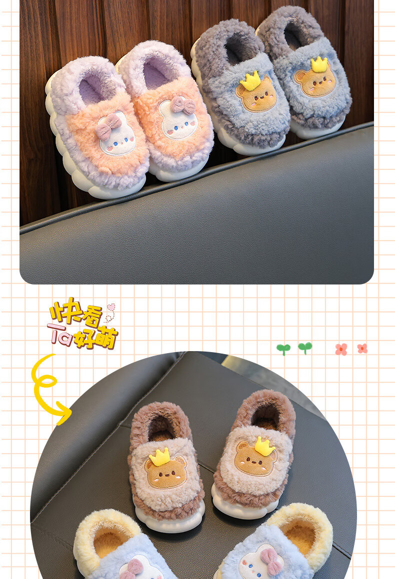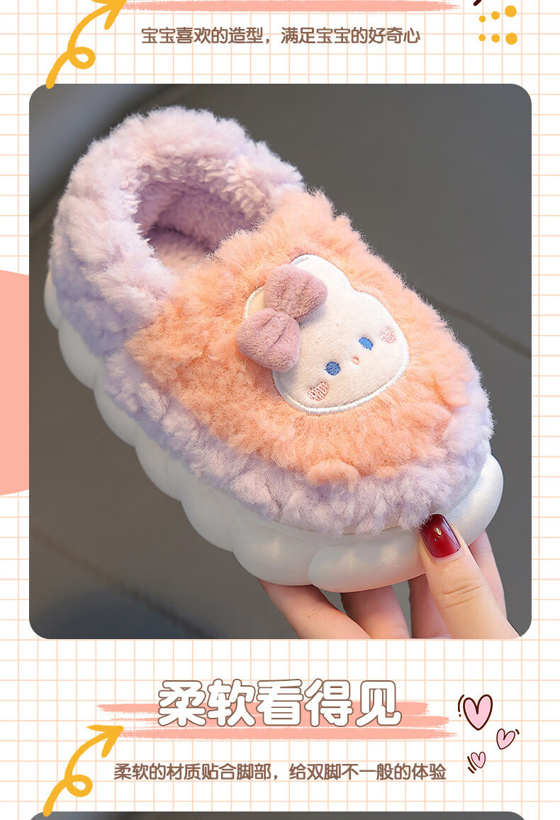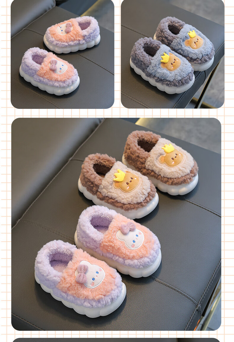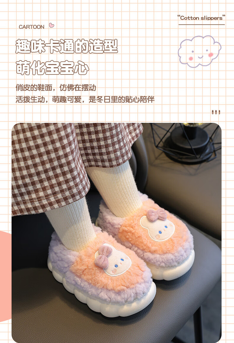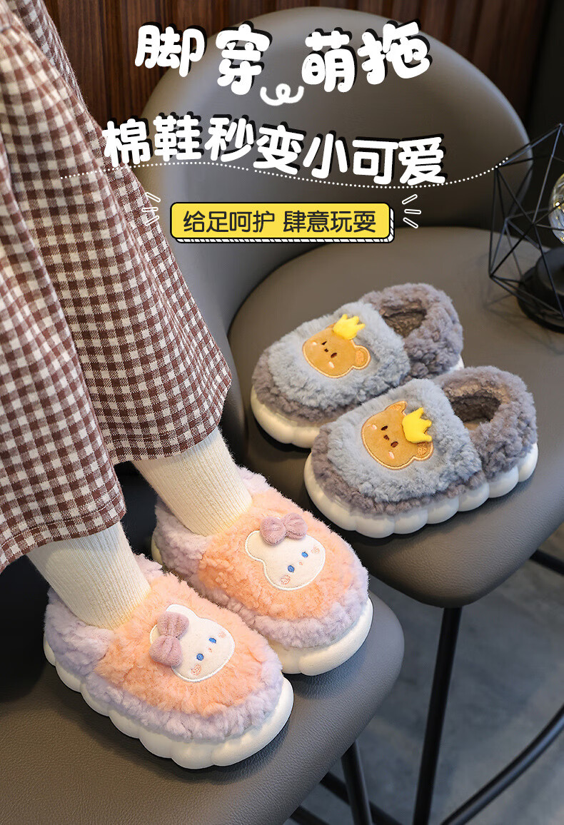 Kenhu winter children's cotton slippers for boys and girls parent-child bag with heel to keep warm and velvet thick-soled cartoon home baby furry cotton slippers Watermelon Red Rabbit (heel bag) 24 25 size (inner length 15CM suitable for 1-2 years old)