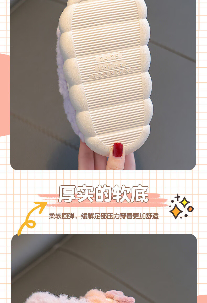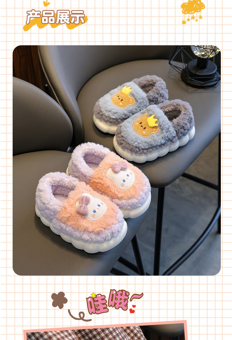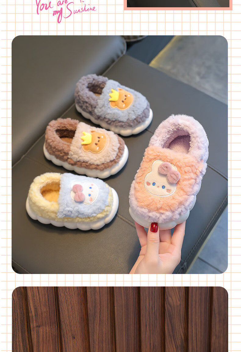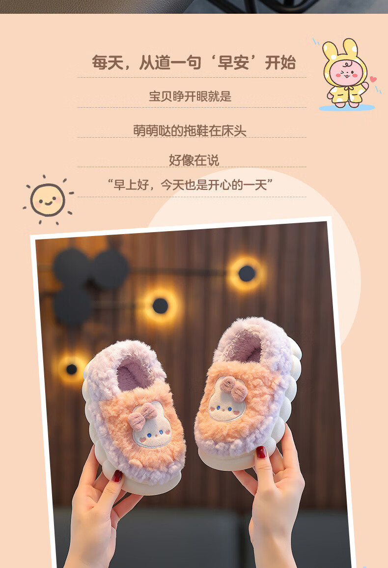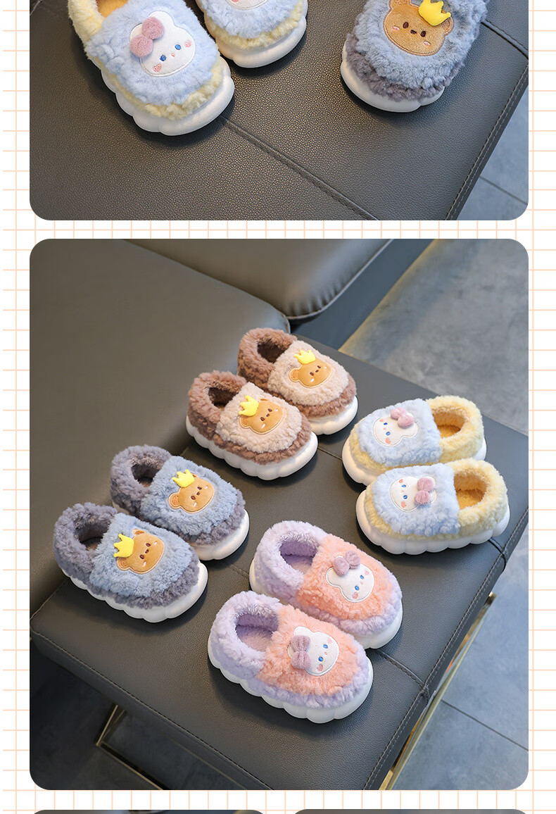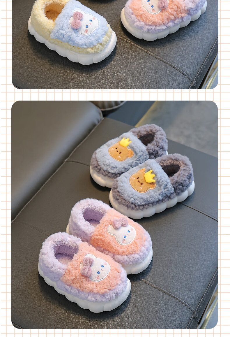 Kenhu winter children's cotton slippers for boys and girls parent-child bag with heel to keep warm and velvet thick-soled cartoon home baby furry cotton slippers Watermelon Red Rabbit (heel bag) 24 25 size (inner length 15CM suitable for 1-2 years old)