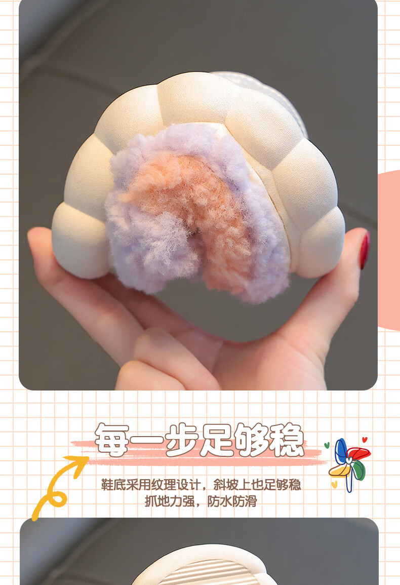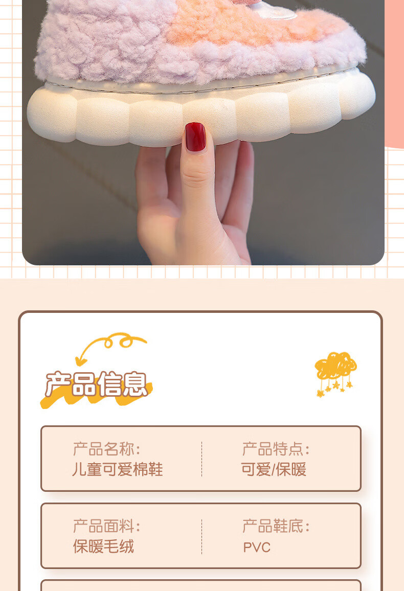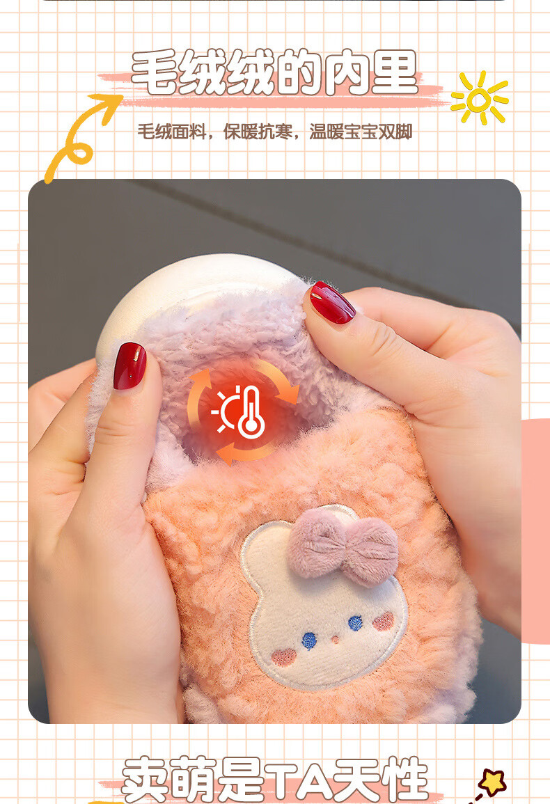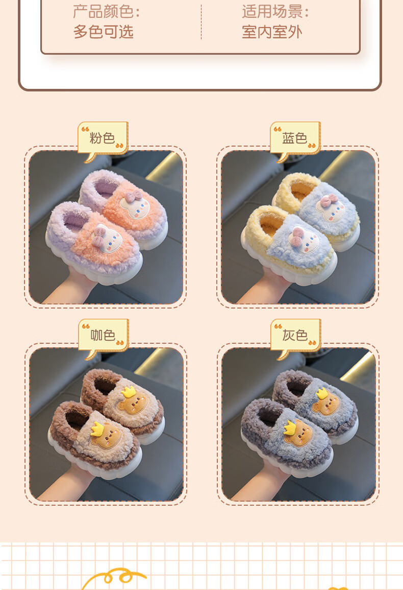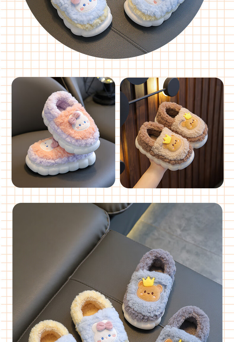 Kenhu winter children's cotton slippers for boys and girls parent-child bag with heel to keep warm and velvet thick-soled cartoon home baby furry cotton slippers Watermelon Red Rabbit (heel bag) 24 25 size (inner length 15CM suitable for 1-2 years old)