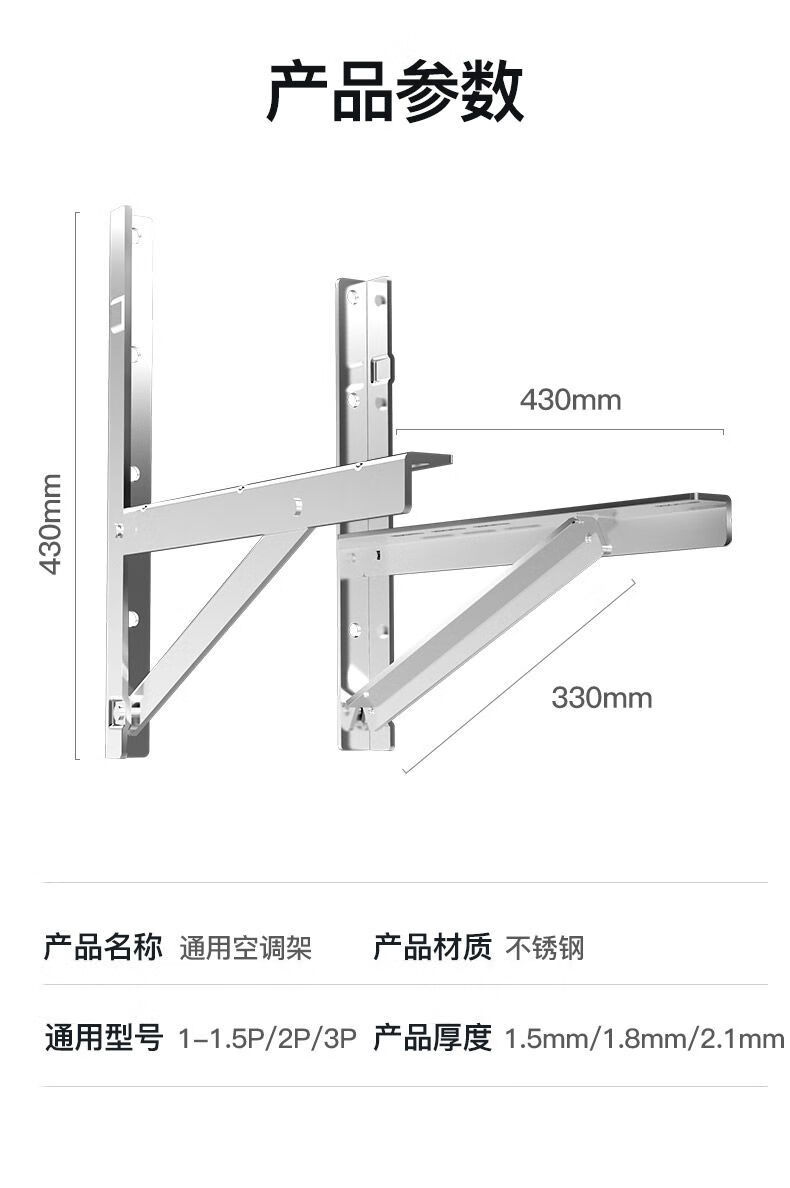 Fanshuai air conditioner outdoor unit bracket stainless steel thickened 304 universal outdoor unit air conditioner bracket 1.5 hp 2/3 hp air conditioner bracket suitable for Midea air conditioner bracket 1.5 extra thick