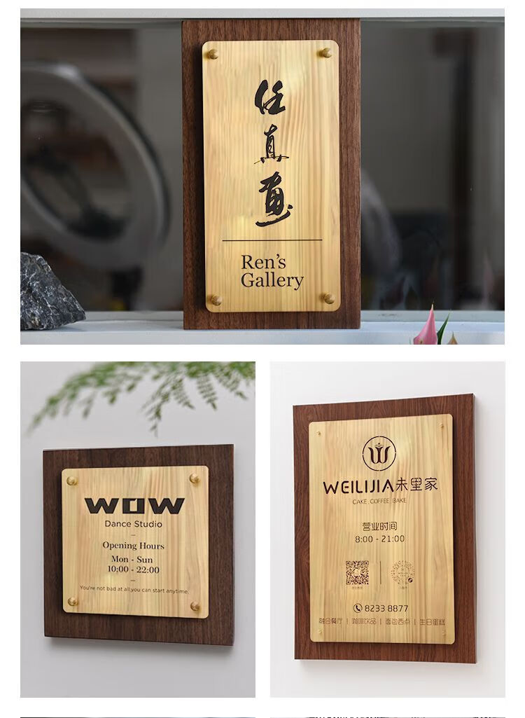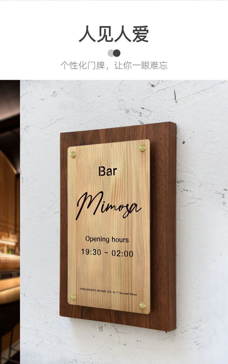 Business hours notice board wooden shop door logo custom wooden sign solid wood signage creative double-layer plane 40*60
