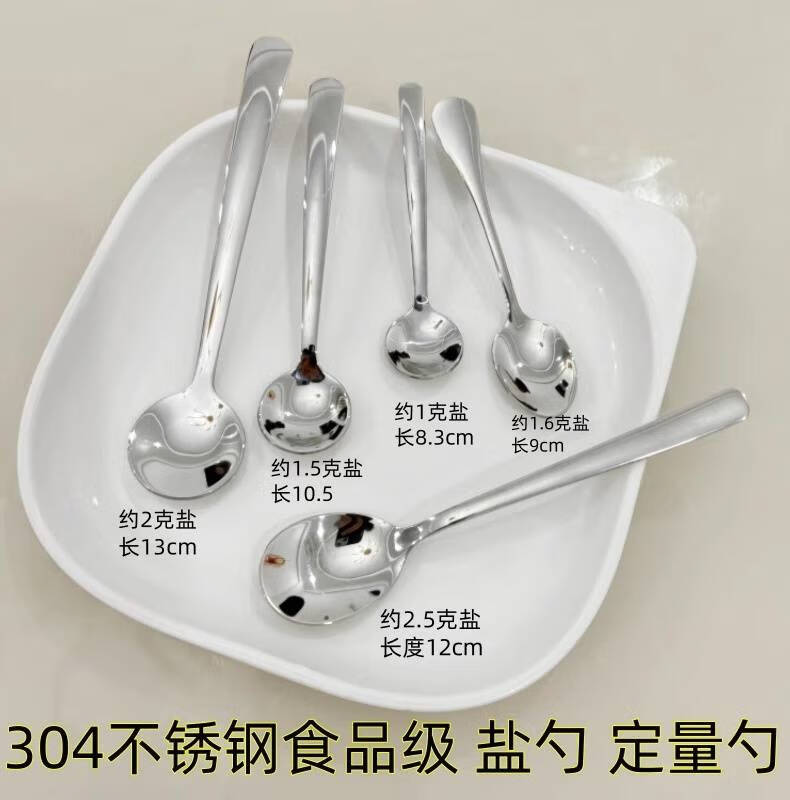 Wing Fantasy 304 stainless steel salt spoon measuring spoon 1g 2g salt spoon kitchen seasoning spoon short handle salt control spoon mini small spoon large size 13cm (about 2g salt) 1 pack