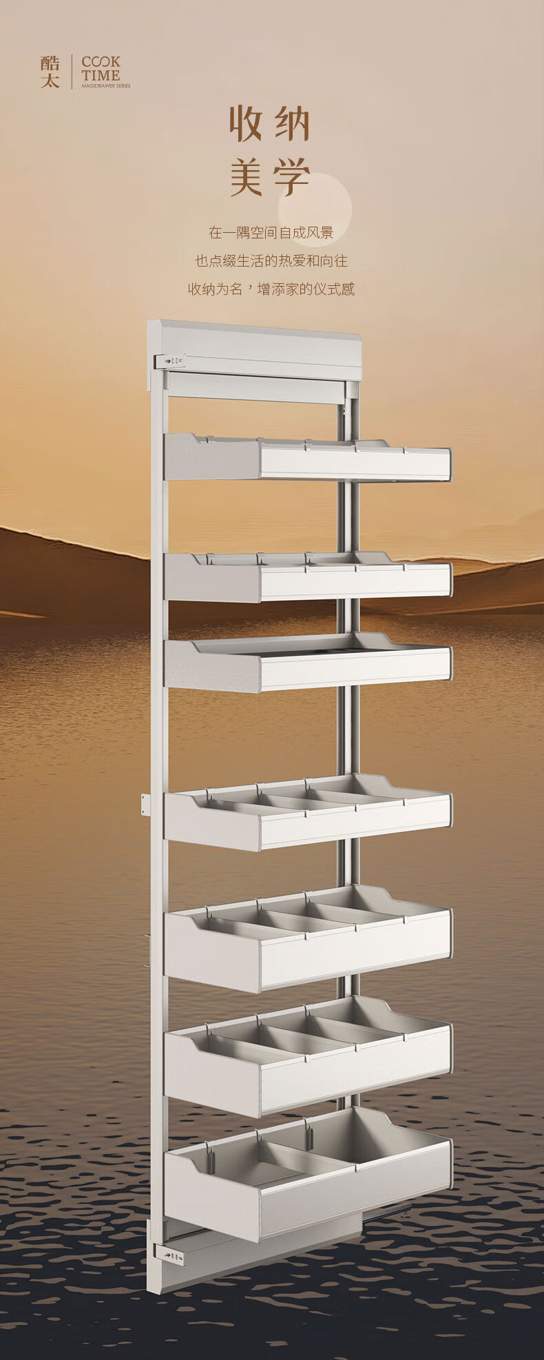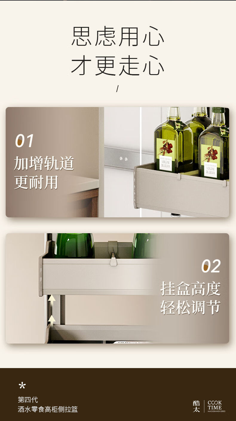 CLCEY kitchen high cabinet pull basket seven-layer central cabinet narrow cabinet seasoning drawer type cabinet aluminum alloy storage rack 300mm cabinet 7-layer model multi-layer drawer type