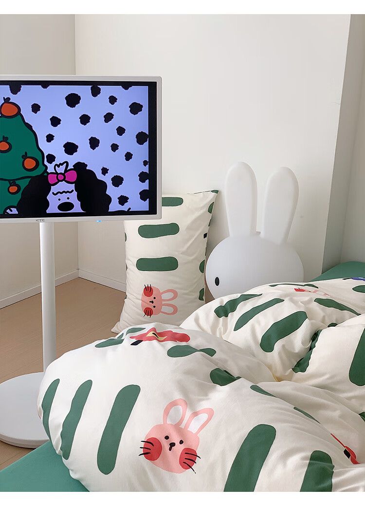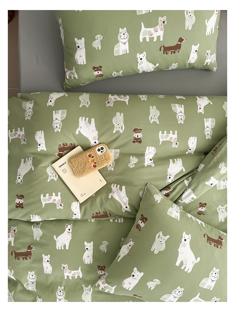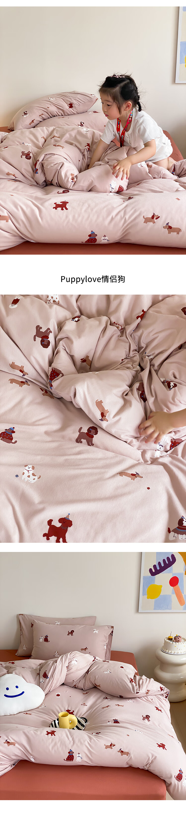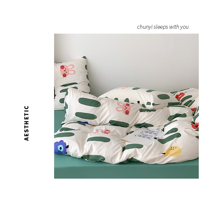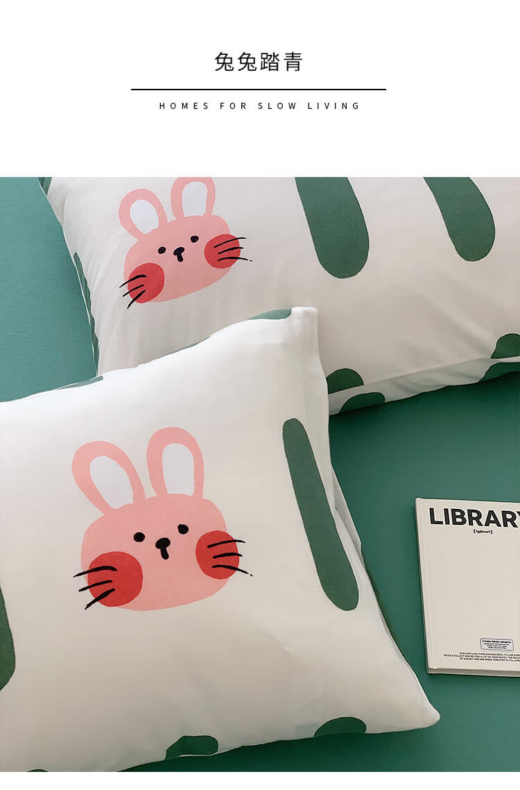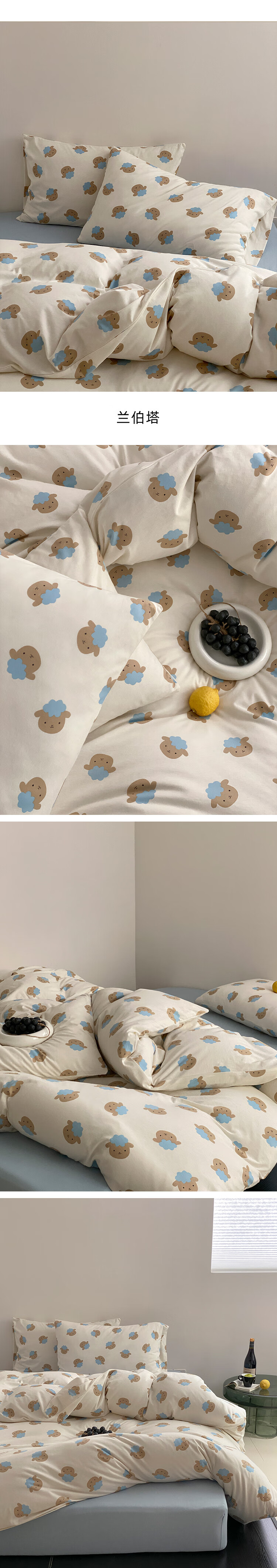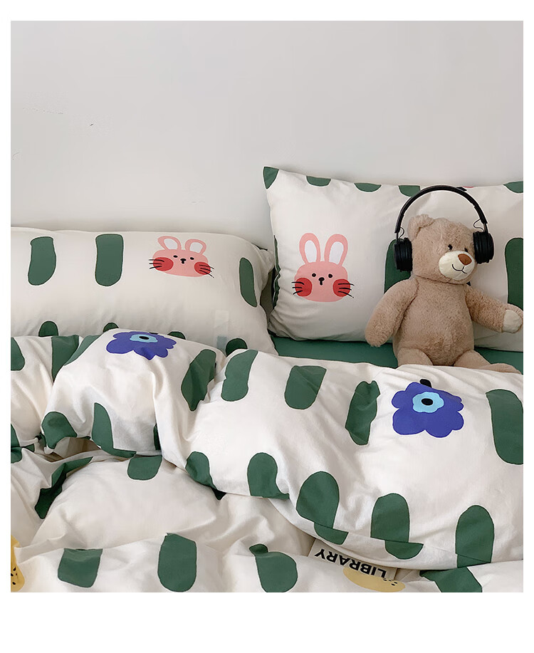 Perfect in Everything (IT S A 10) Class A Cartoon Baby Grade Tianzhu Cotton Four-piece Set for Naked Sleeping Knitted 100 Pure Cotton Children's Lamb Quilt Cover Sheet Bedding Sheep-Green Sheet Style Piece_1.2m Bed_Suitable for 150*200cm Quilt Core
