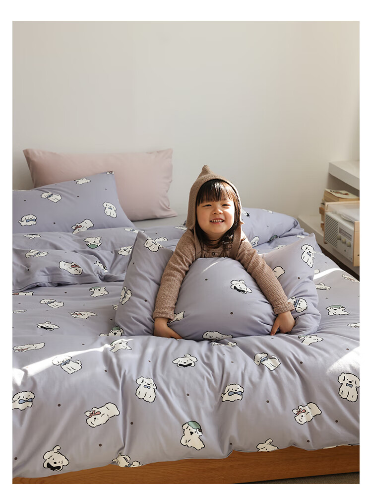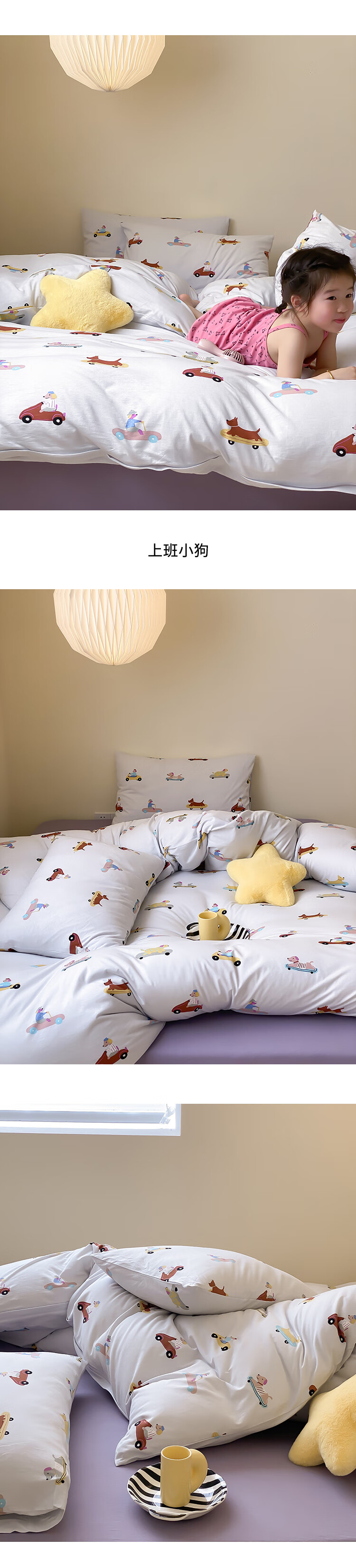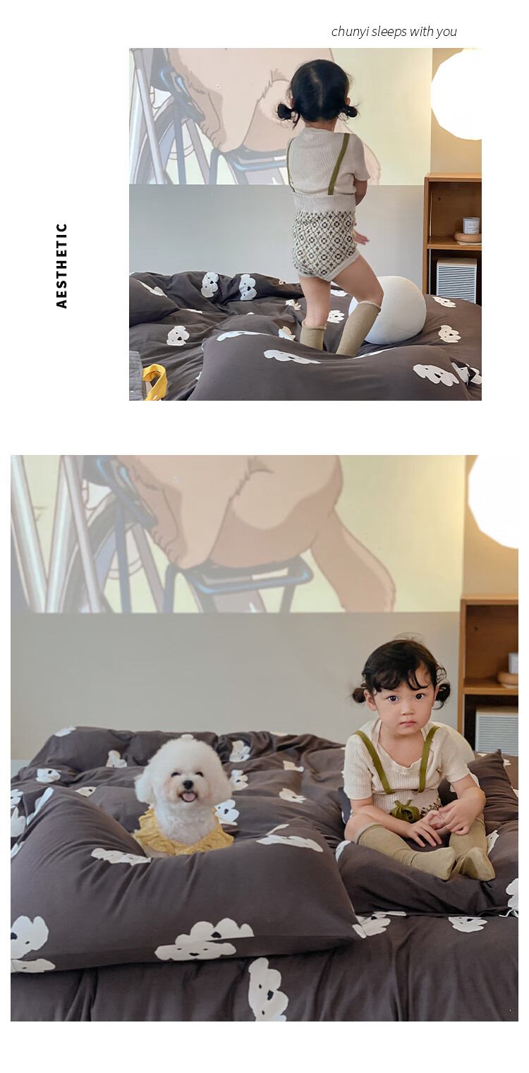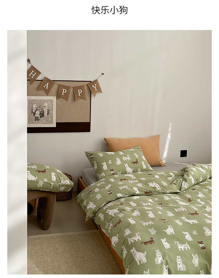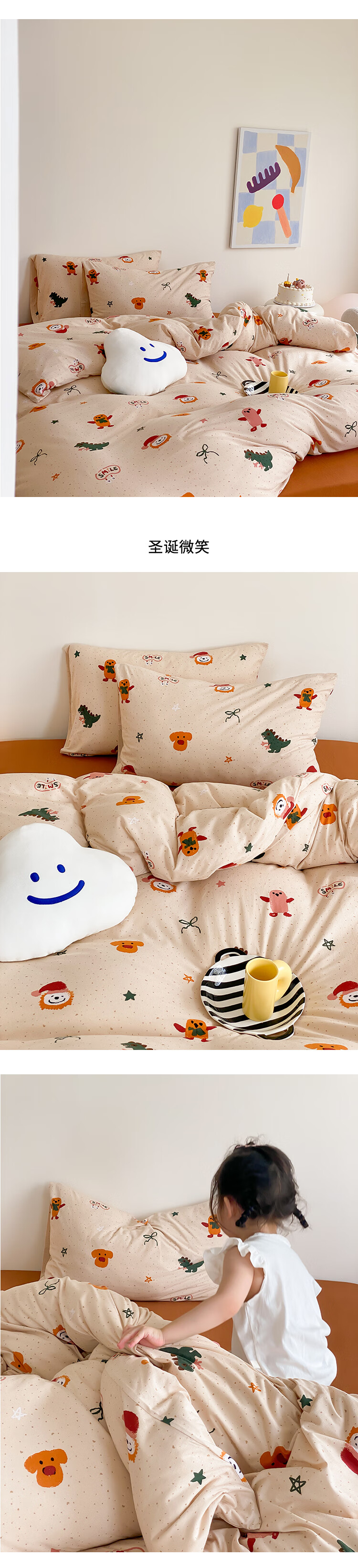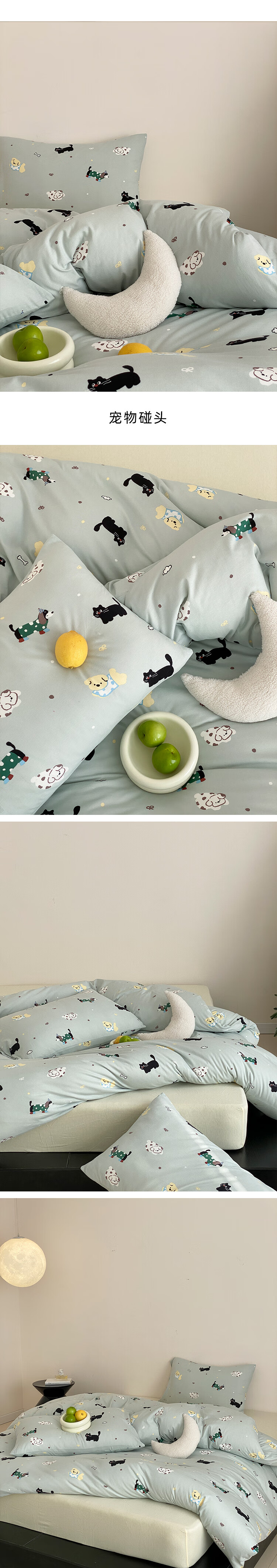 Perfect in Everything (IT S A 10) Class A Cartoon Baby Grade Tianzhu Cotton Four-piece Set for Naked Sleeping Knitted 100 Pure Cotton Children's Lamb Quilt Cover Sheet Bedding Sheep-Green Sheet Style Piece_1.2m Bed_Suitable for 150*200cm Quilt Core