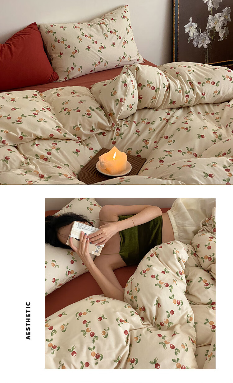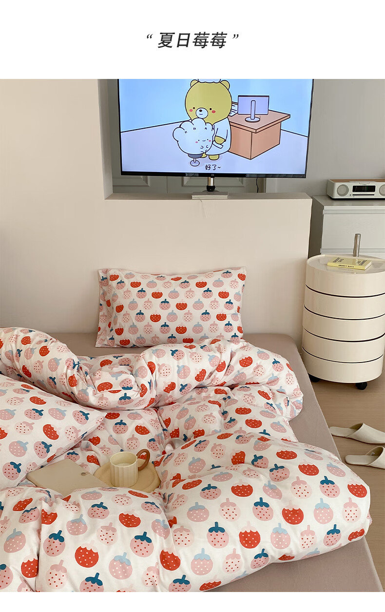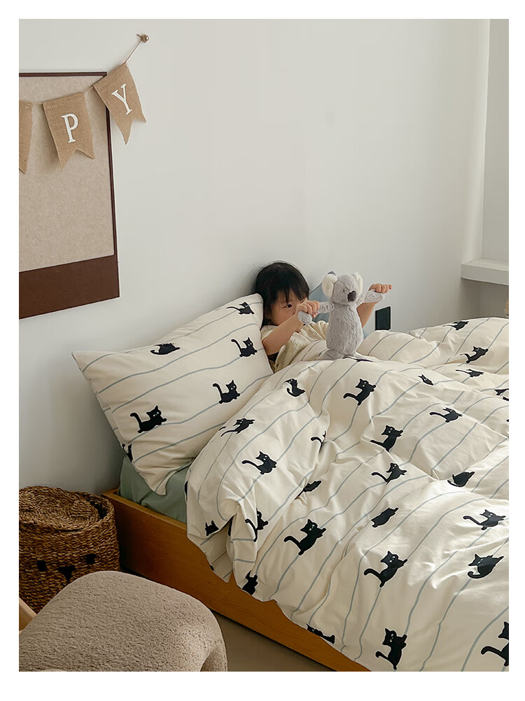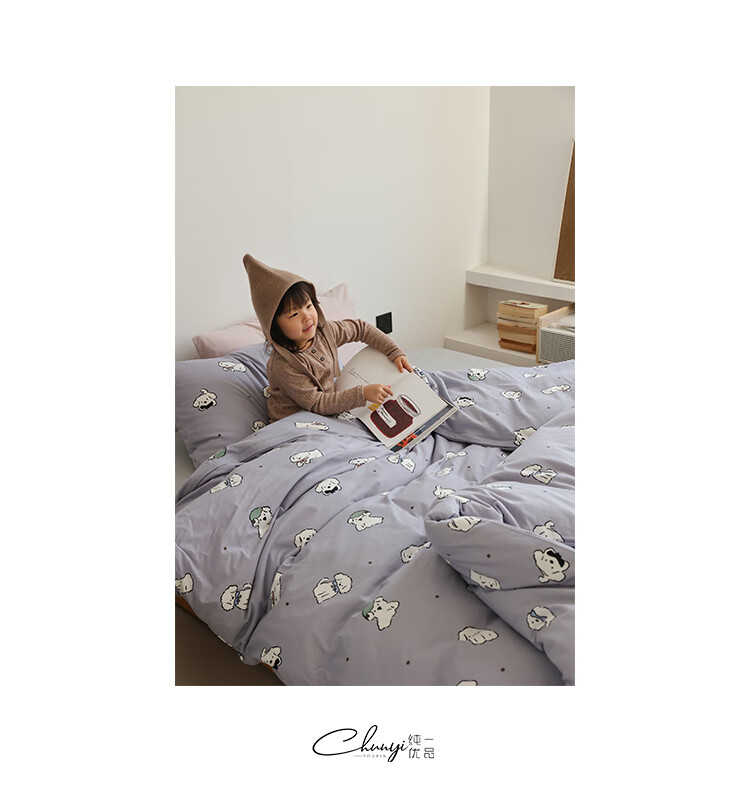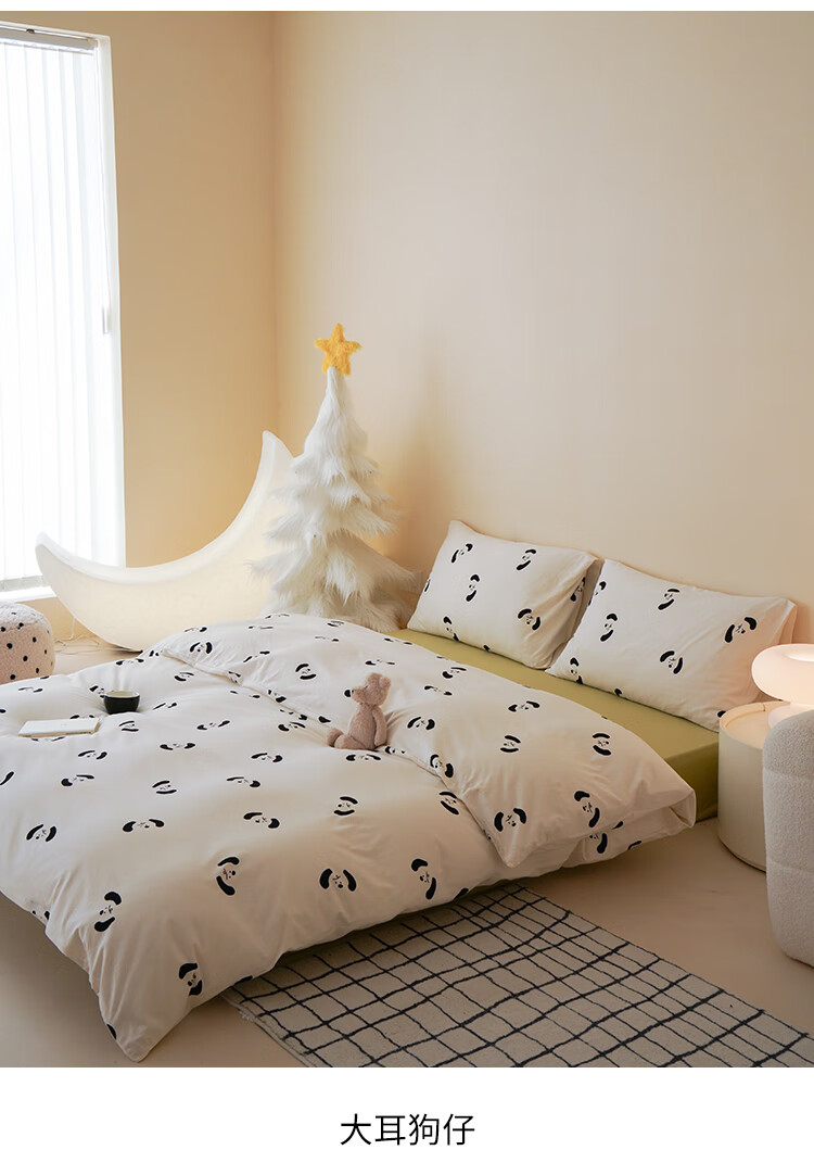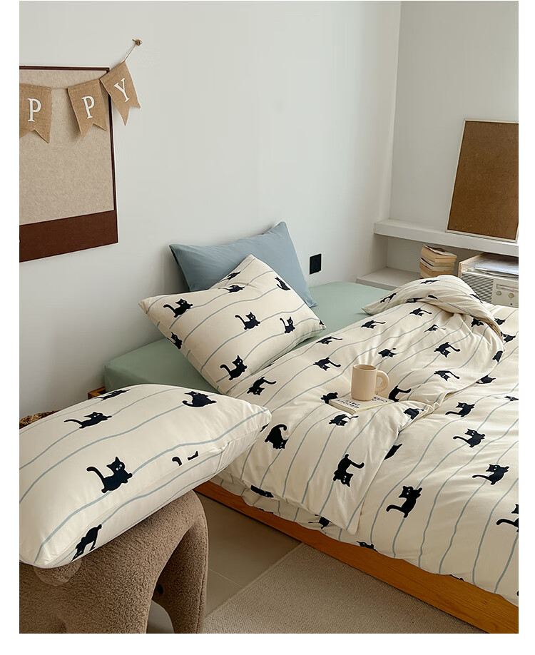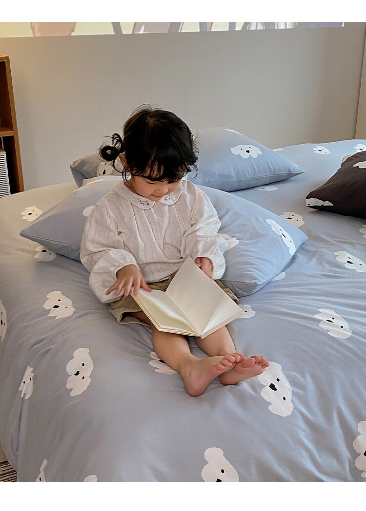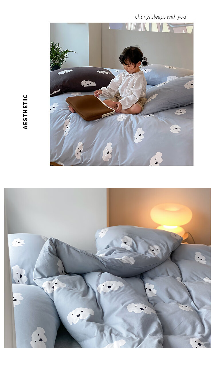 Perfect in Everything (IT S A 10) Class A Cartoon Baby Grade Tianzhu Cotton Four-piece Set for Naked Sleeping Knitted 100 Pure Cotton Children's Lamb Quilt Cover Sheet Bedding Sheep-Green Sheet Style Piece_1.2m Bed_Suitable for 150*200cm Quilt Core