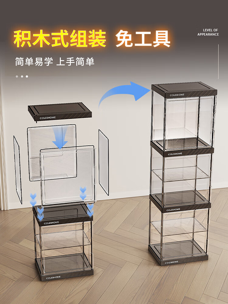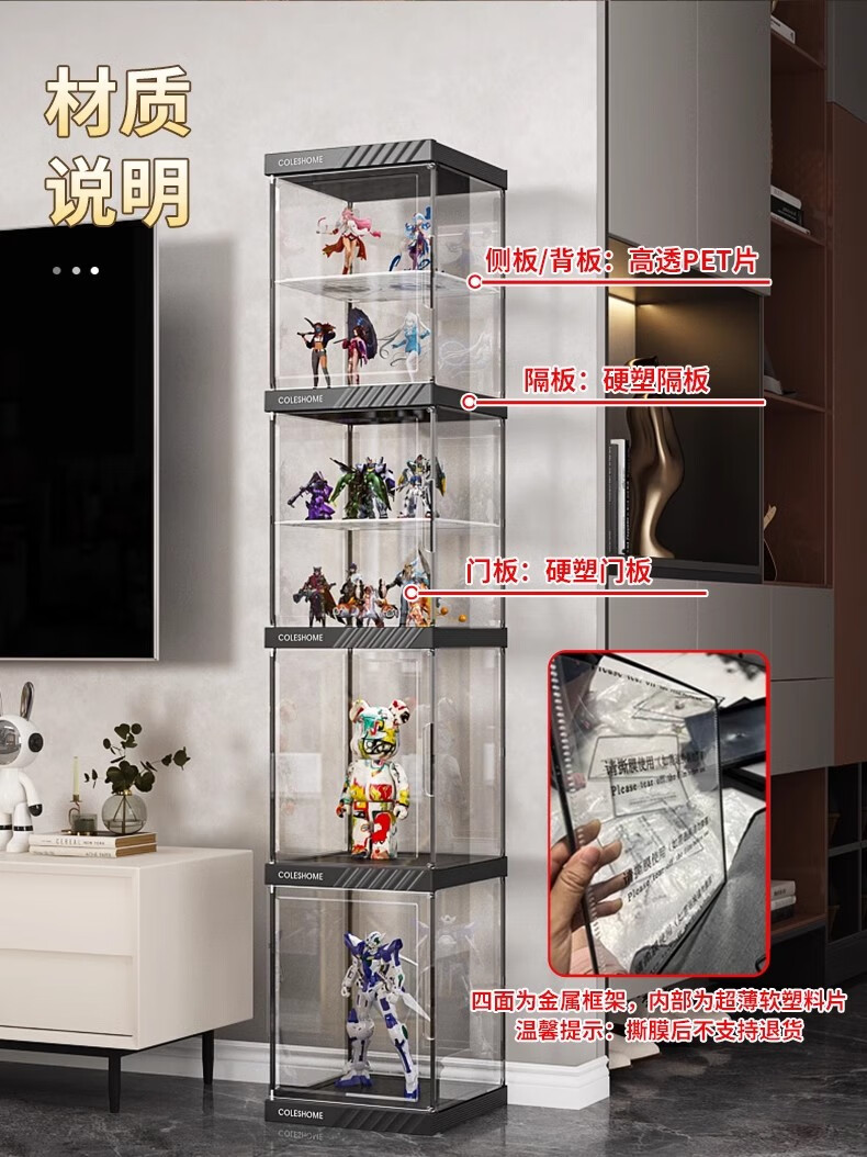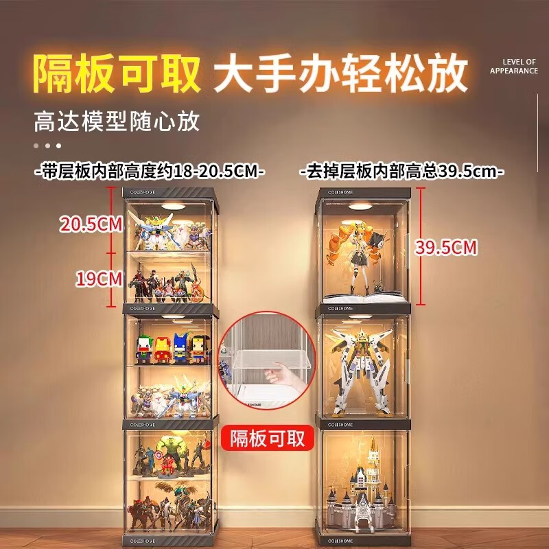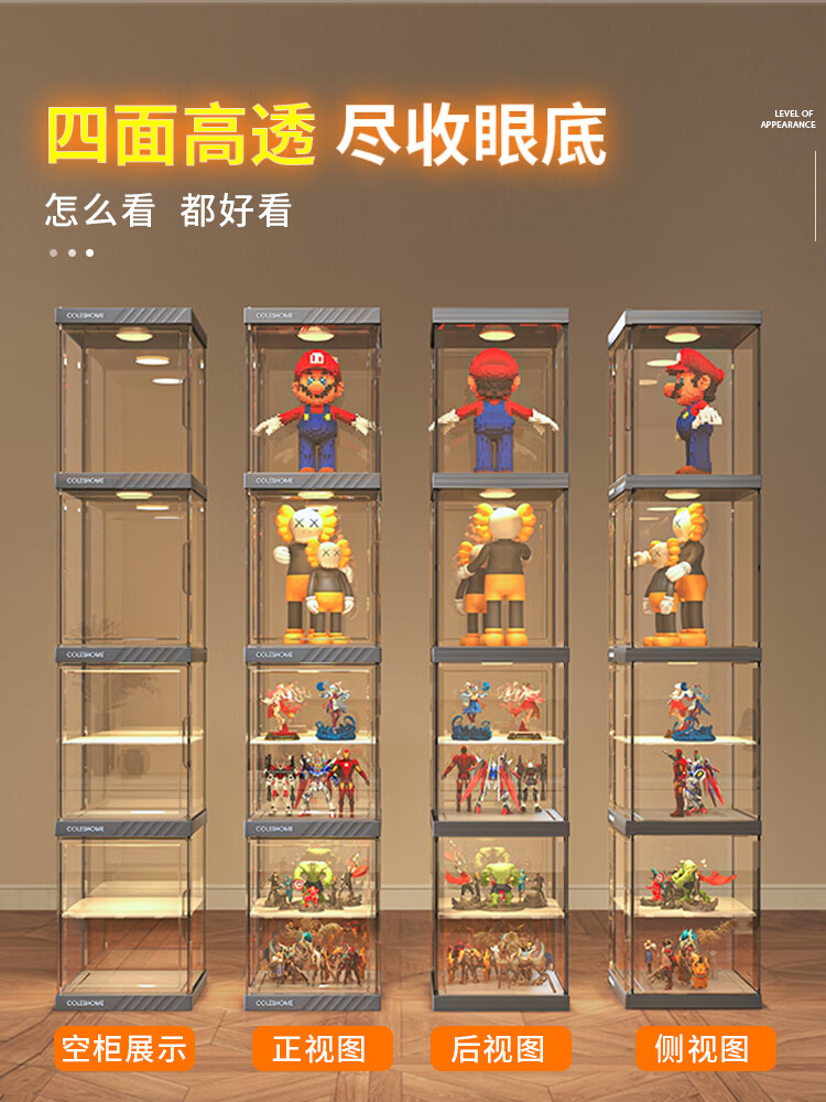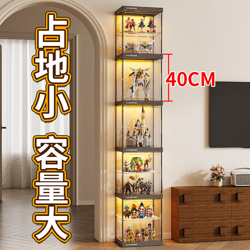 Fengxi figure display cabinet storage box suitable for Lego toys household building block model up to floor-standing transparent display shelf 40 high - layered 1 column 10 layers - white (building block storage cabinet)