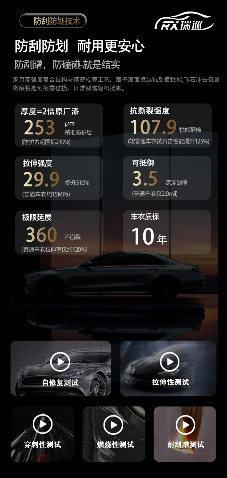 Ruixun Invisible Car Cover Full Car Film Cover TPU Car Transparent Protective Film Repair Scratches Installation Included 8MIL-Luxury Model Ten Year Warranty Construction Included