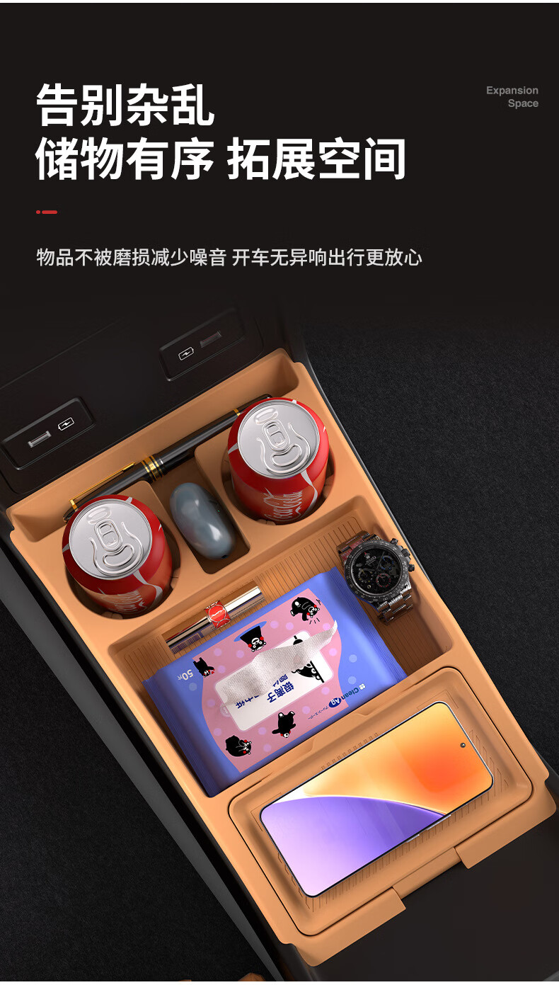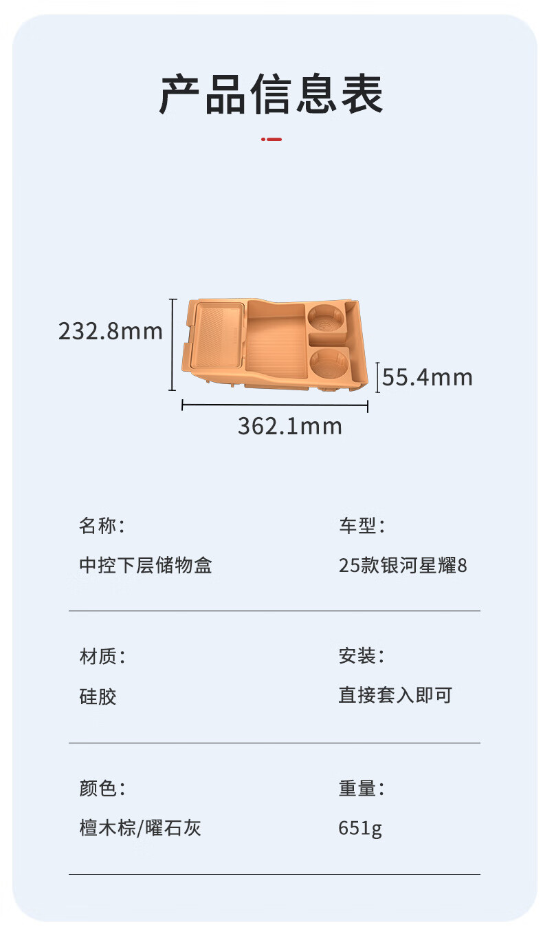 Tianzhenjue MDD is suitable for 25 models of Galaxy Star 8 central control storage box glasses storage box car accessories modified sandalwood brown