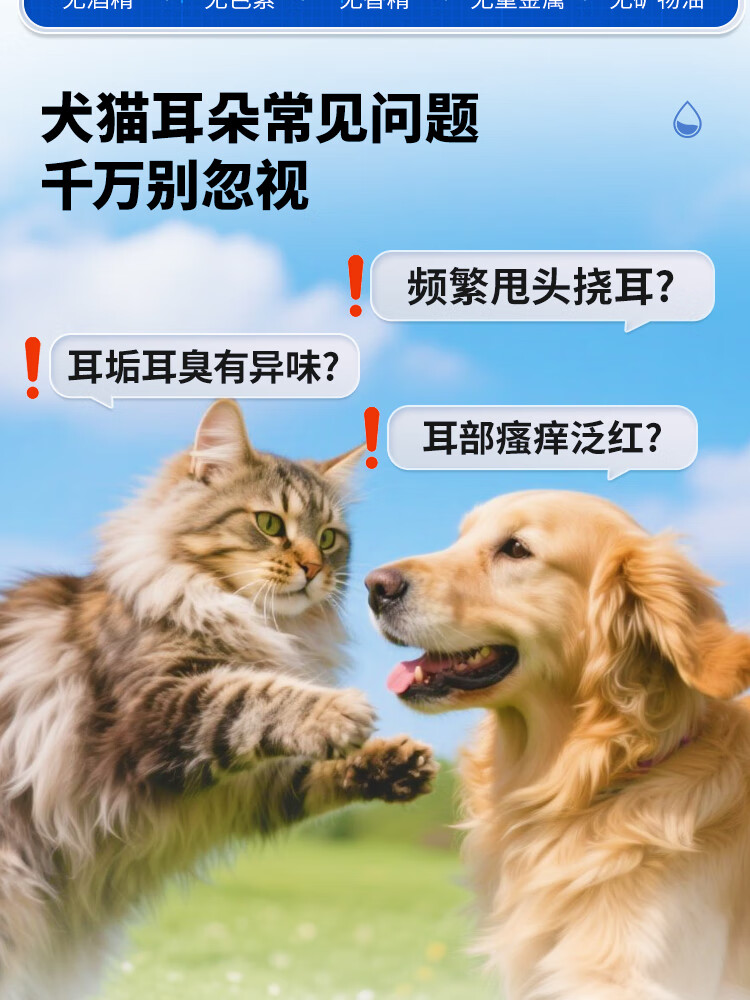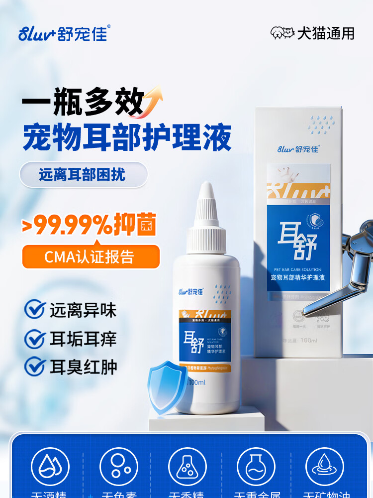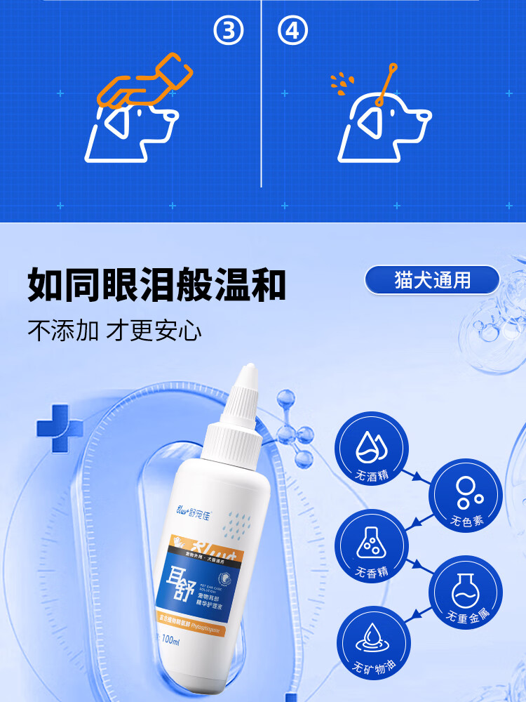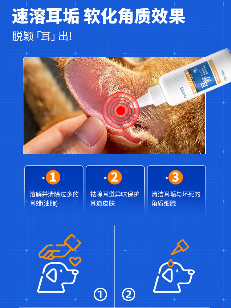 Shu Chongjia Pet Ear Cleanser Cat and Dog Ear Cleansing Antibacterial Anti-Itching Ear Cleanser Ear Drops 100ml 2 Bottles