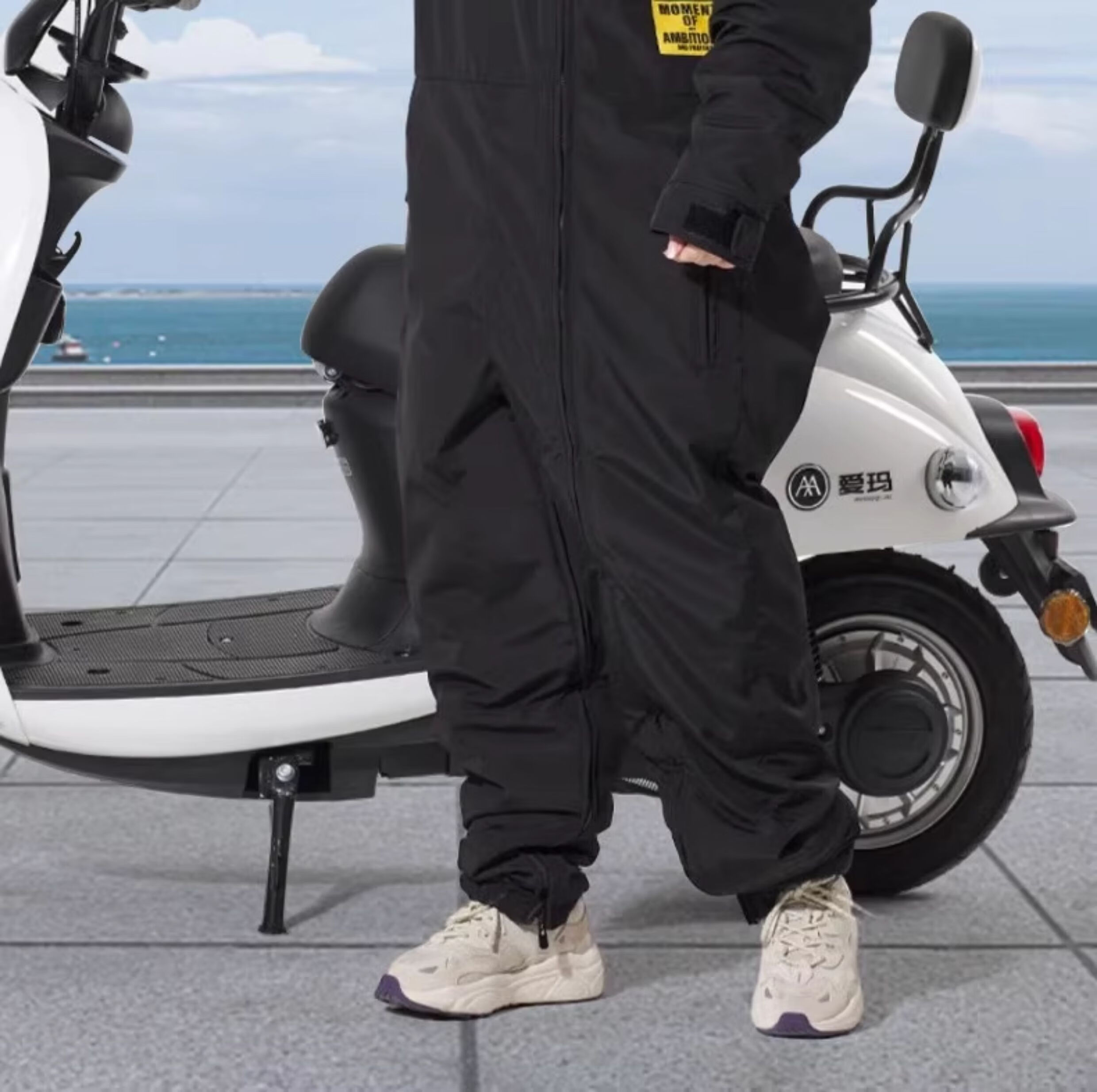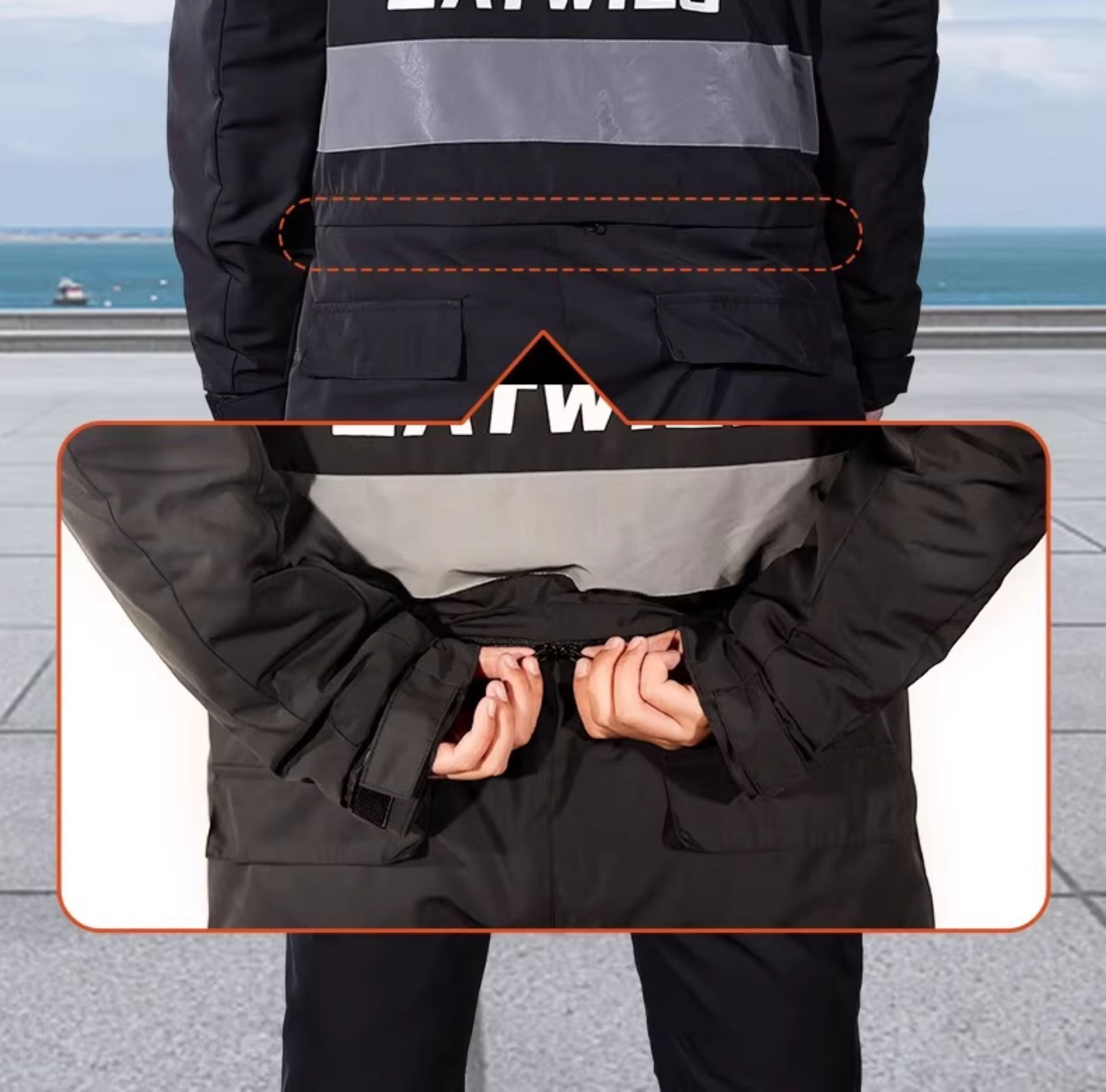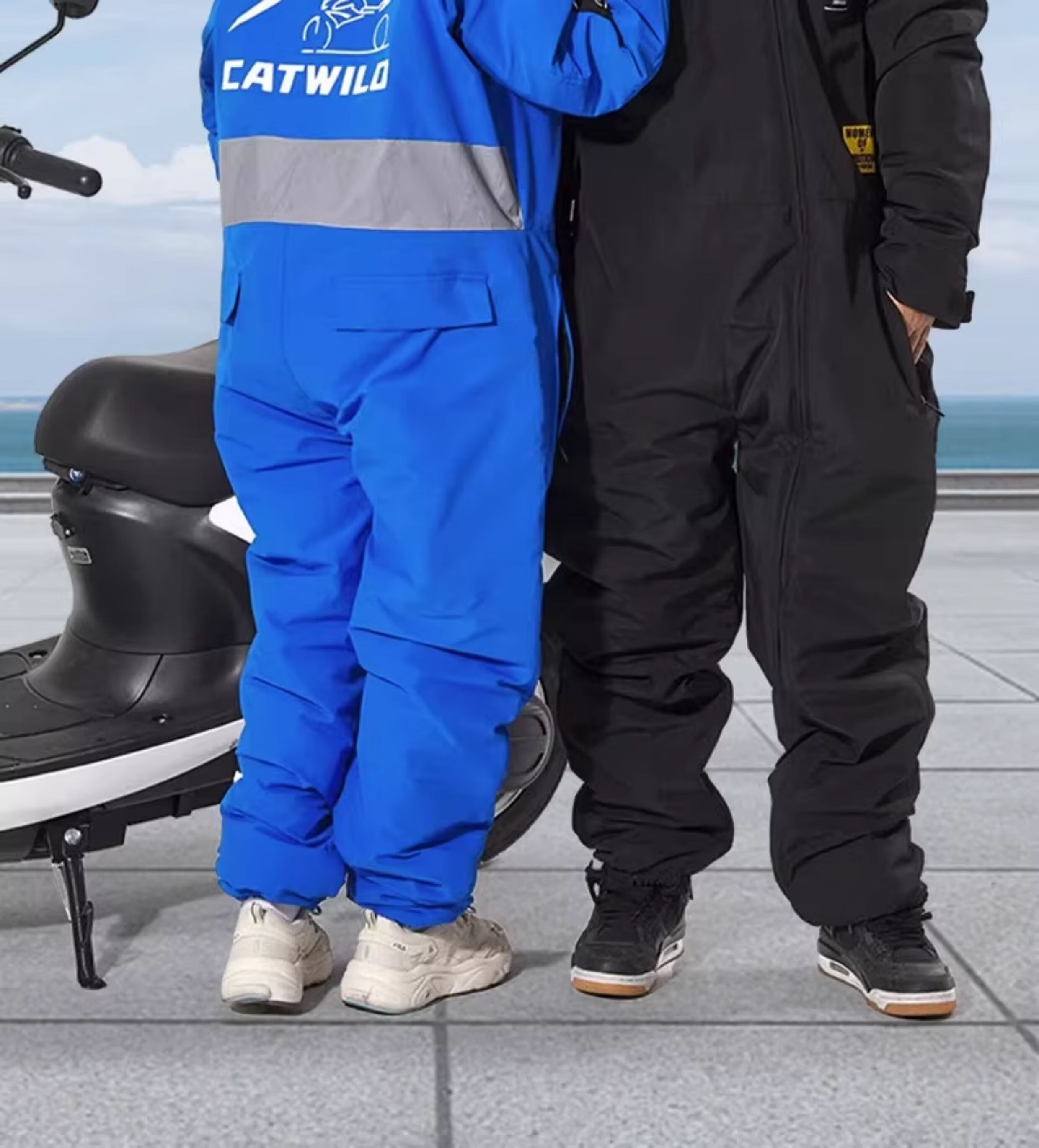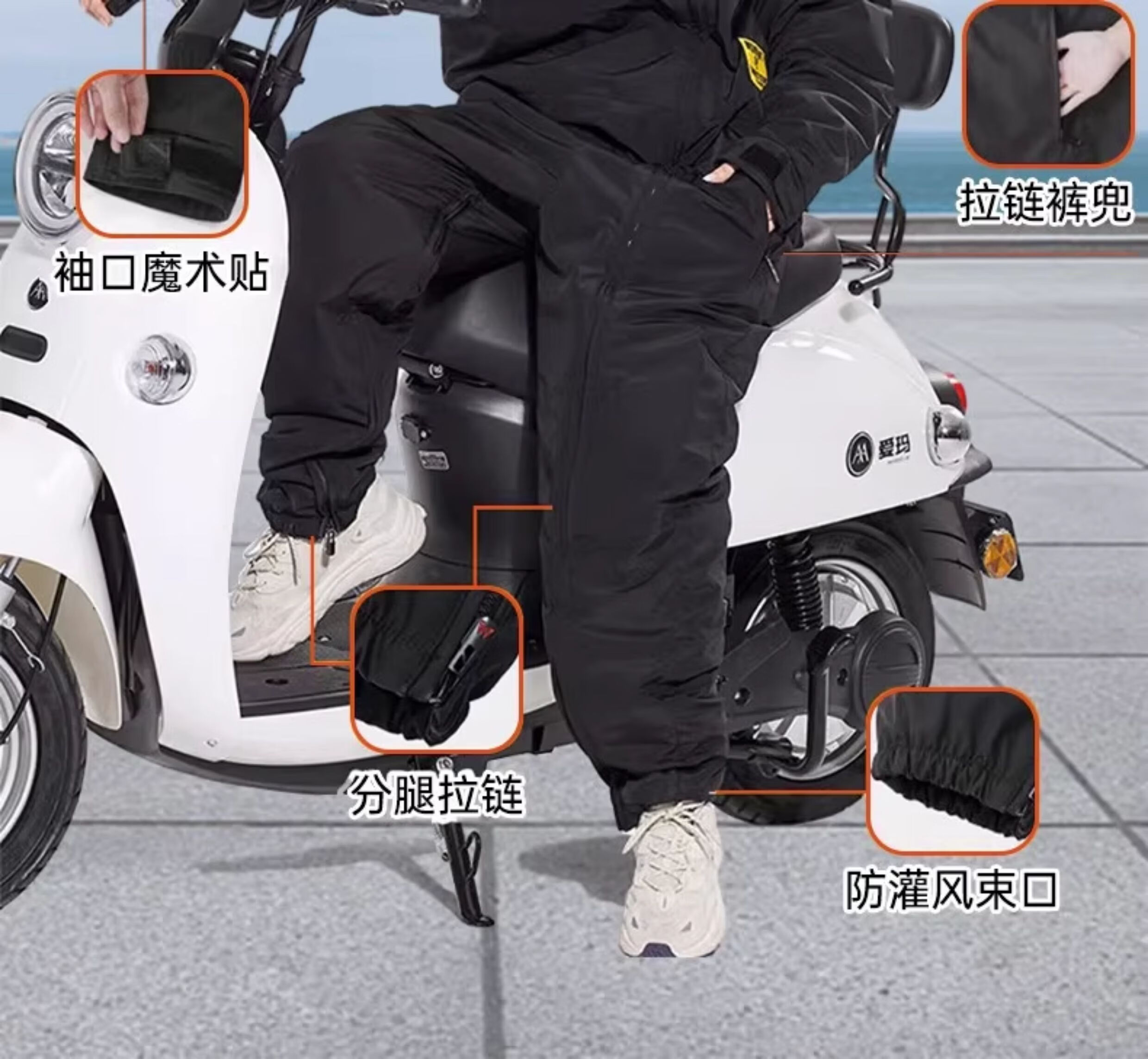 Linwa winter riding one-piece suit men's motorcycle riding suit electric windshield quilt warm plus velvet thickened windbreaker battery regular thickened version with zipper on the back black L one-piece version