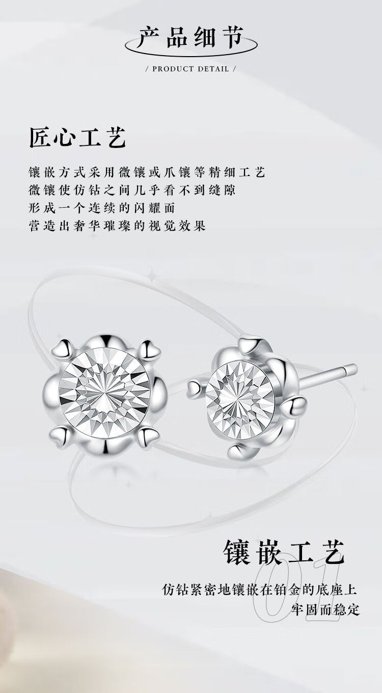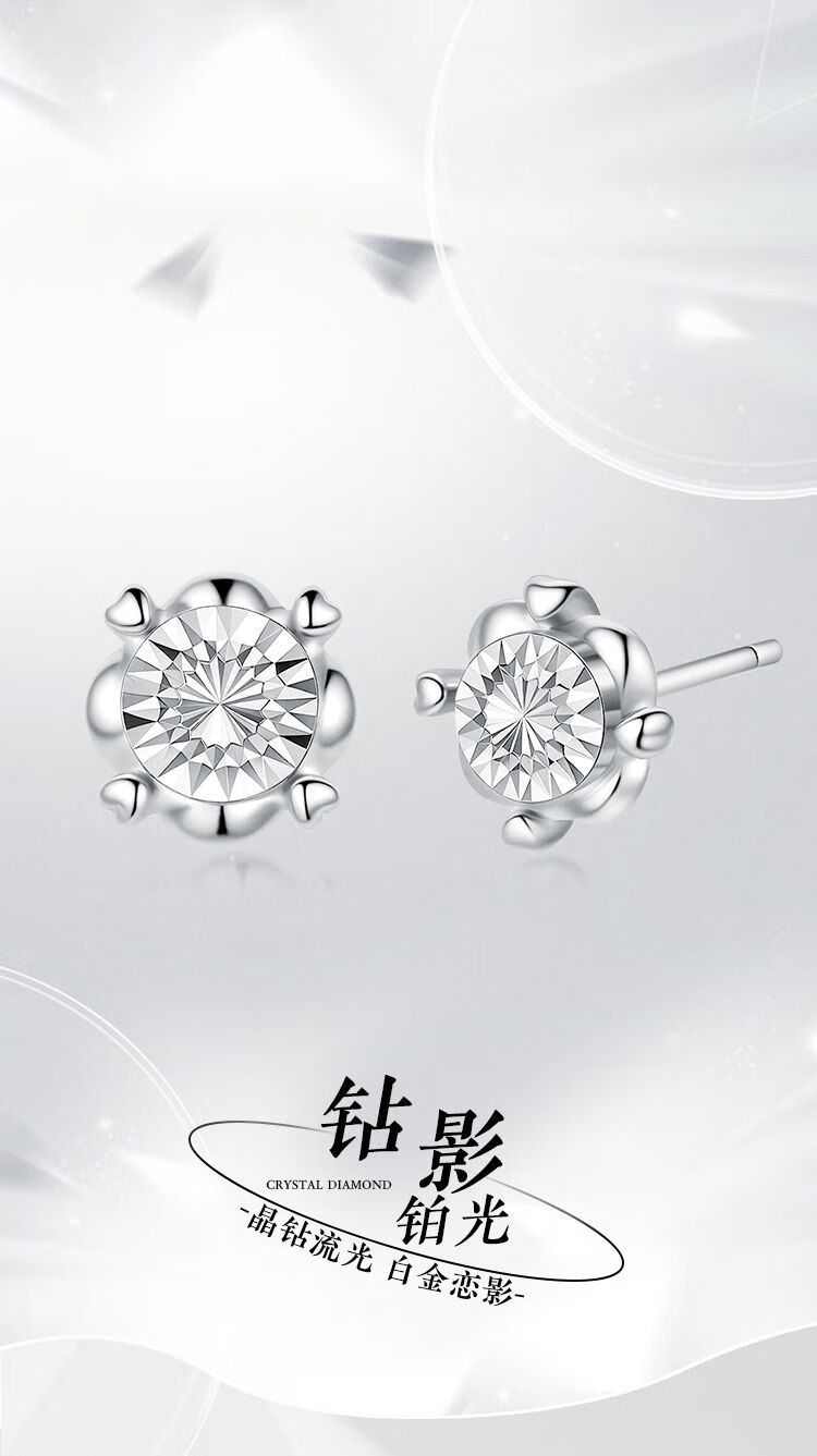 Wanfulong genuine platinum 950 earrings, simple and fashionable imitation diamond platinum earrings, simple and high-end gift box for girlfriend on Chinese Valentine's Day, platinum 950 earrings, simple and fashionable imitation diamond platinum earrings 2.52g
