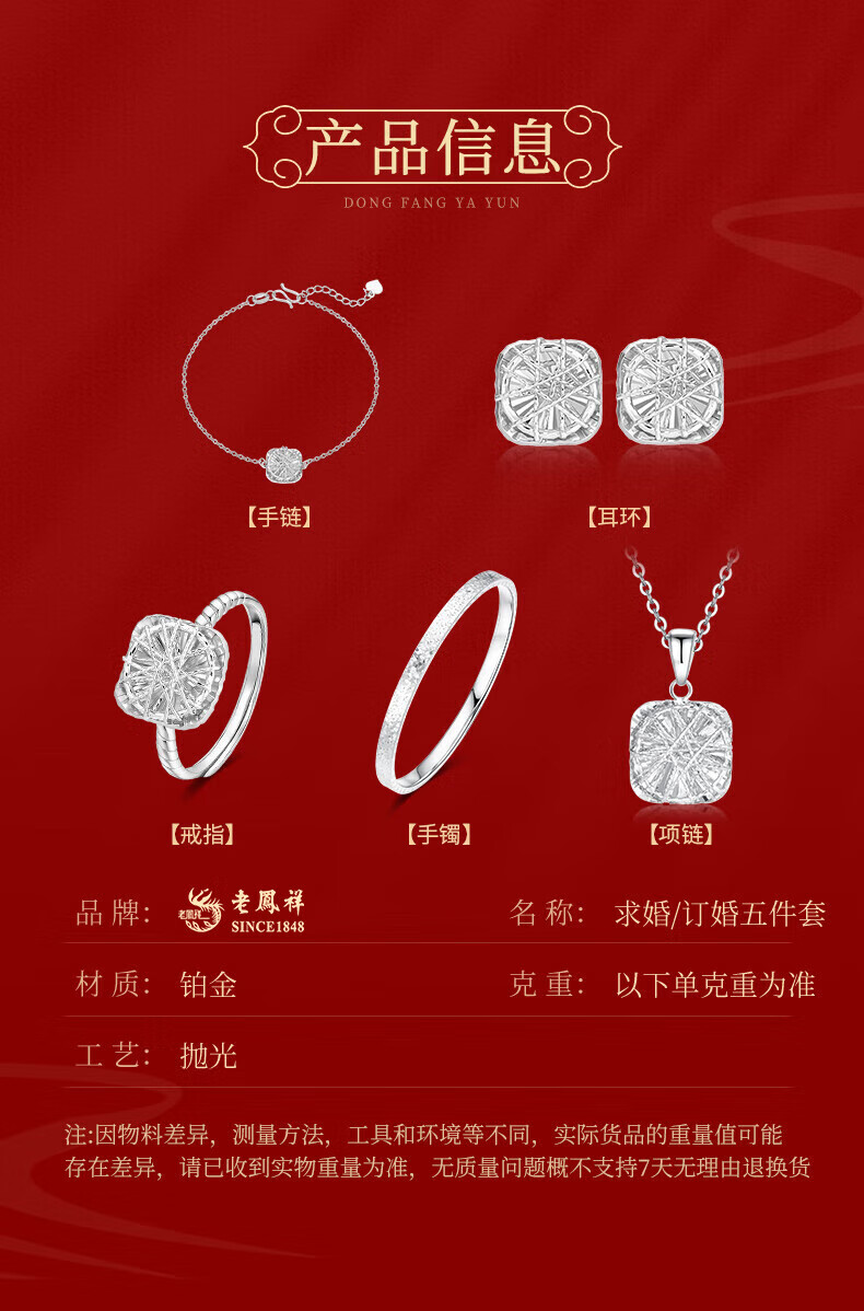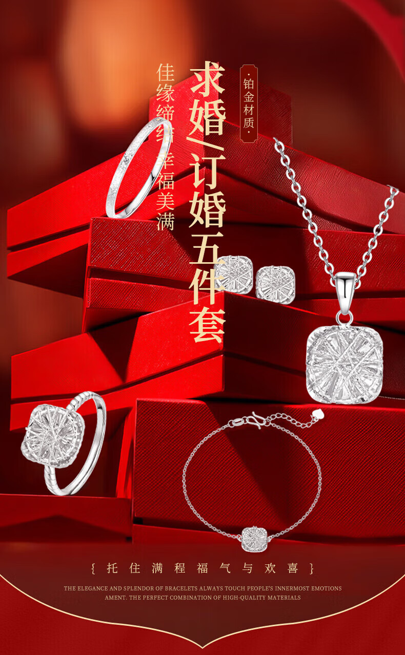 Lao Fengxiang ordered a proposal set, platinum necklace, jewelry, wedding gift, proposal gift, fiancée five-piece set for girlfriend, engagement/proposal platinum sugar cube set, 52 rings - about 27.9g