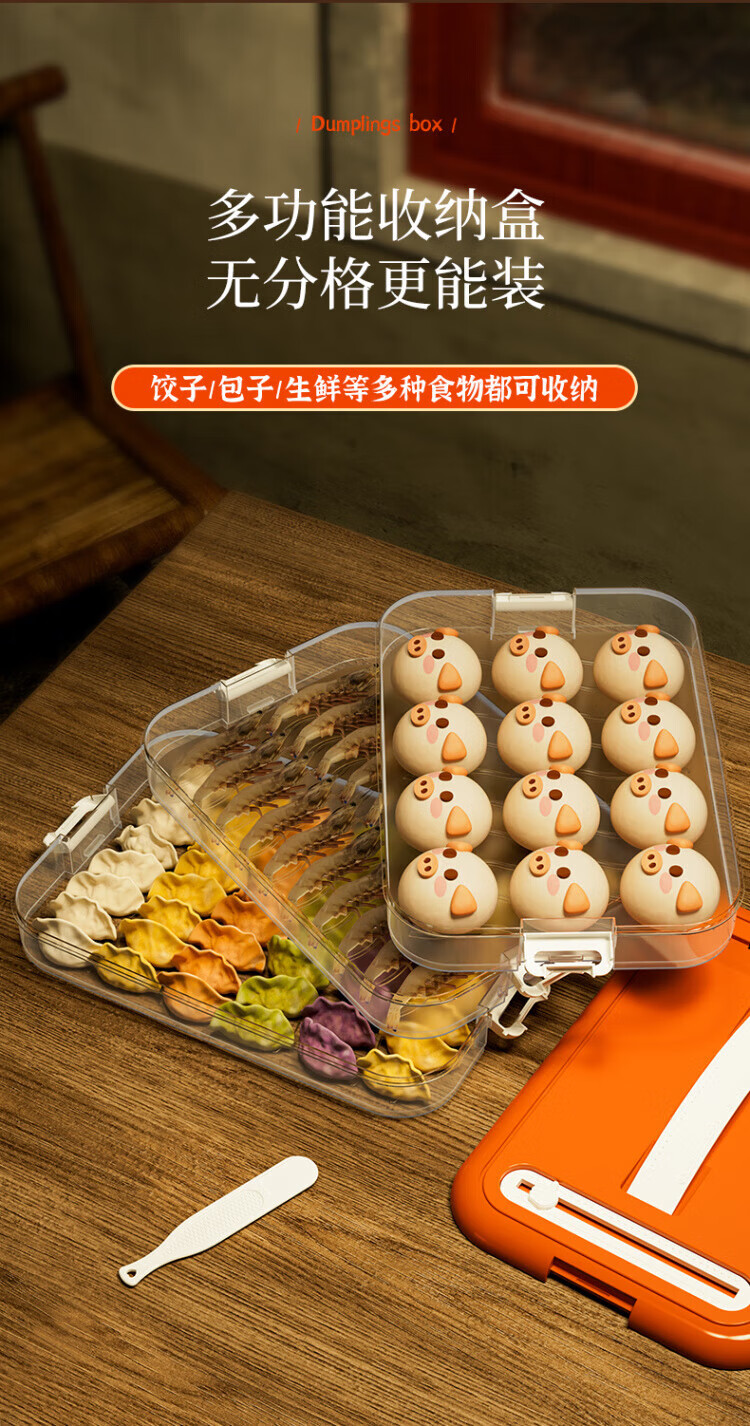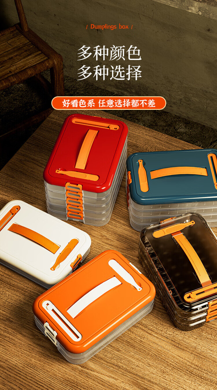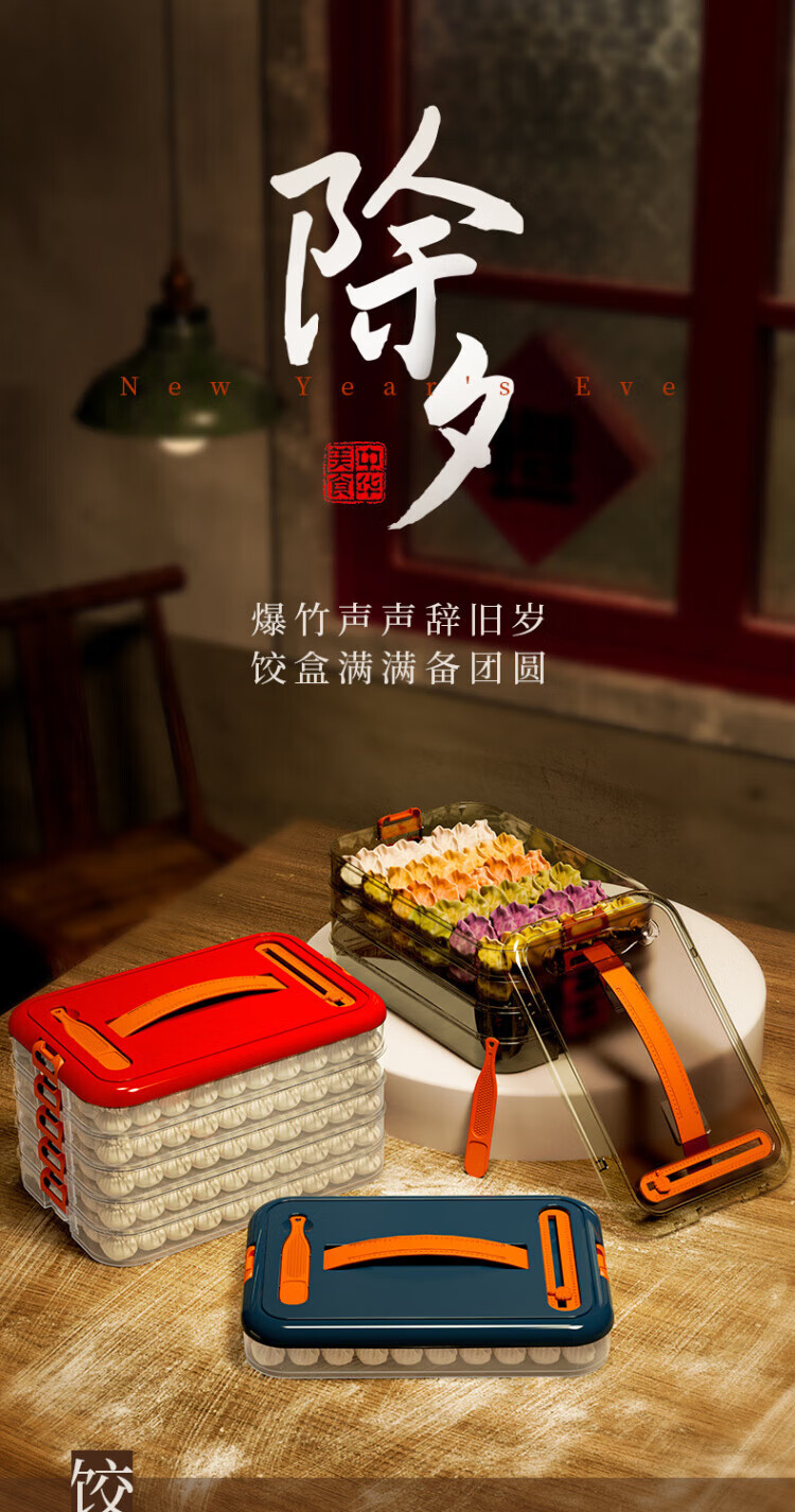 WCZ German domestic dumpling box, dumpling wonton frozen preservation box, kitchen multi-layer refrigerator food storage box dumplings, Chinese red 2-layer 1 lid plus dumpling spoon-portable timer
