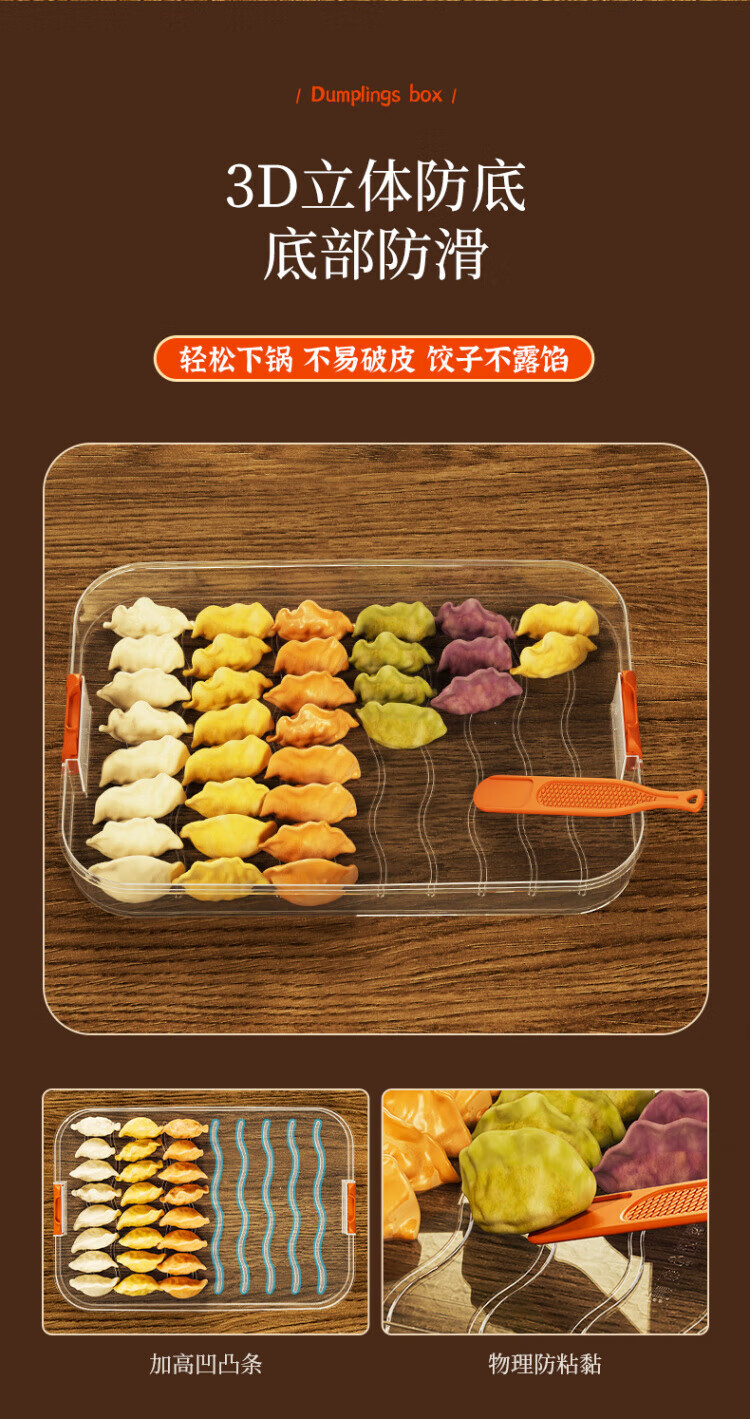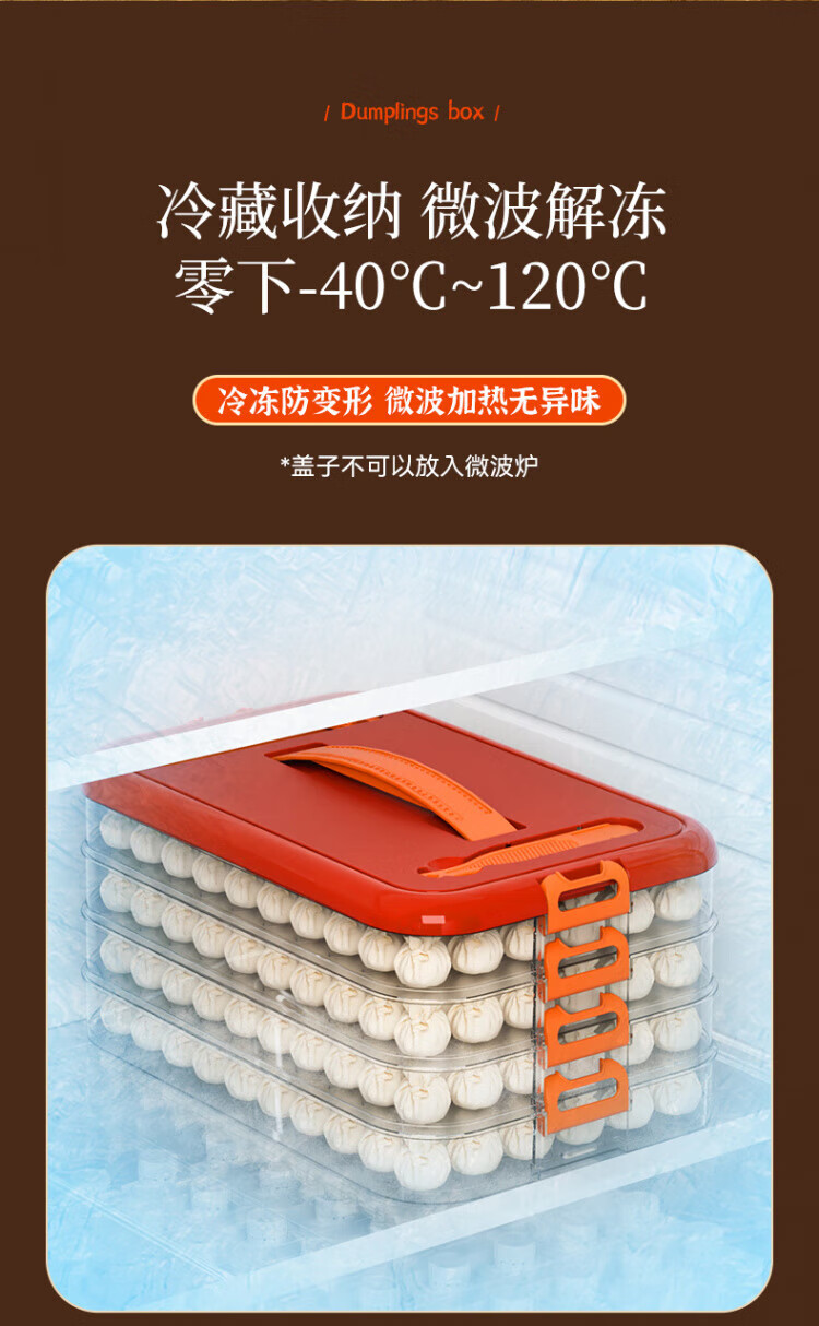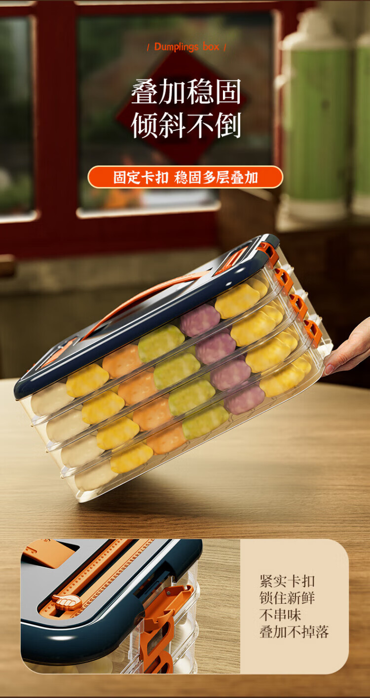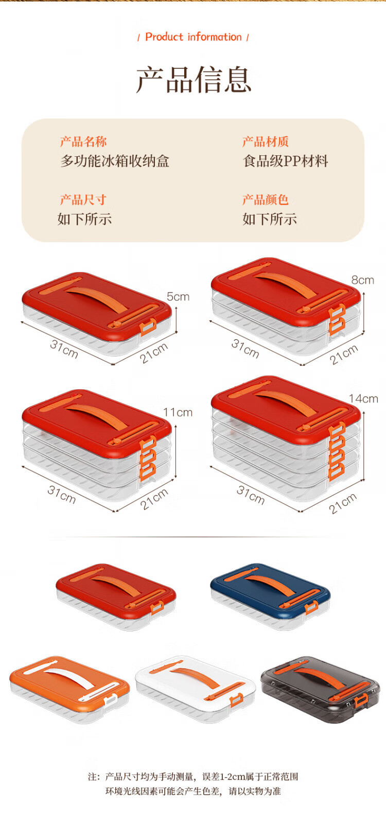WCZ German domestic dumpling box, dumpling wonton frozen preservation box, kitchen multi-layer refrigerator food storage box dumplings, Chinese red 2-layer 1 lid plus dumpling spoon-portable timer