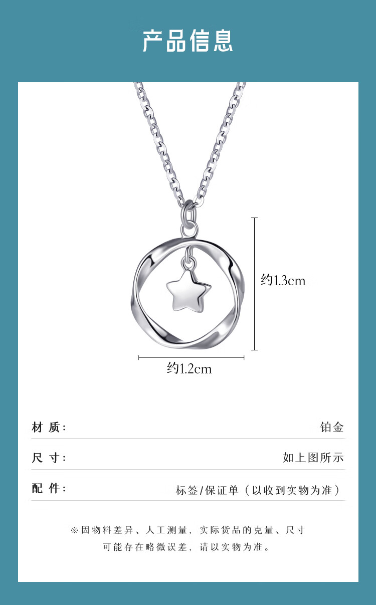 Wanfulong PT950 platinum platinum necklace genuine clavicle chain for women, star men's birthday gift for girlfriend, platinum PT950, about 45cm long, 3.8g in weight