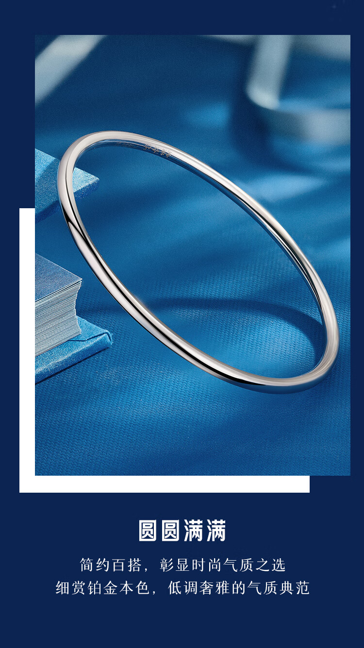 Wanfulong commuting matching丨PT950 platinum simple and fashionable smooth plain ring platinum bracelet 2025 new style gift for girlfriend 9.07g, fashionable smooth plain platinum bracelet 58cm