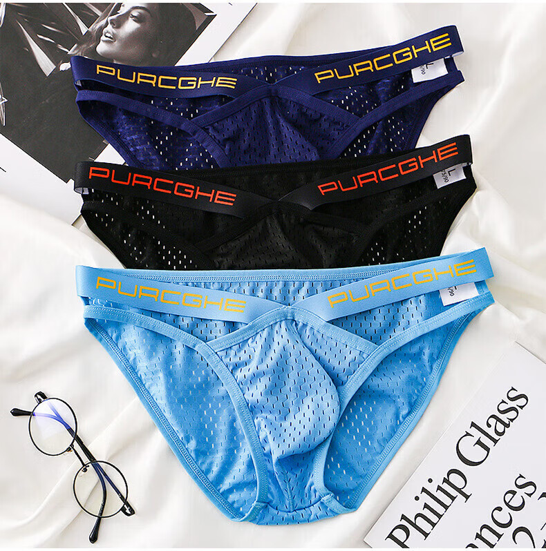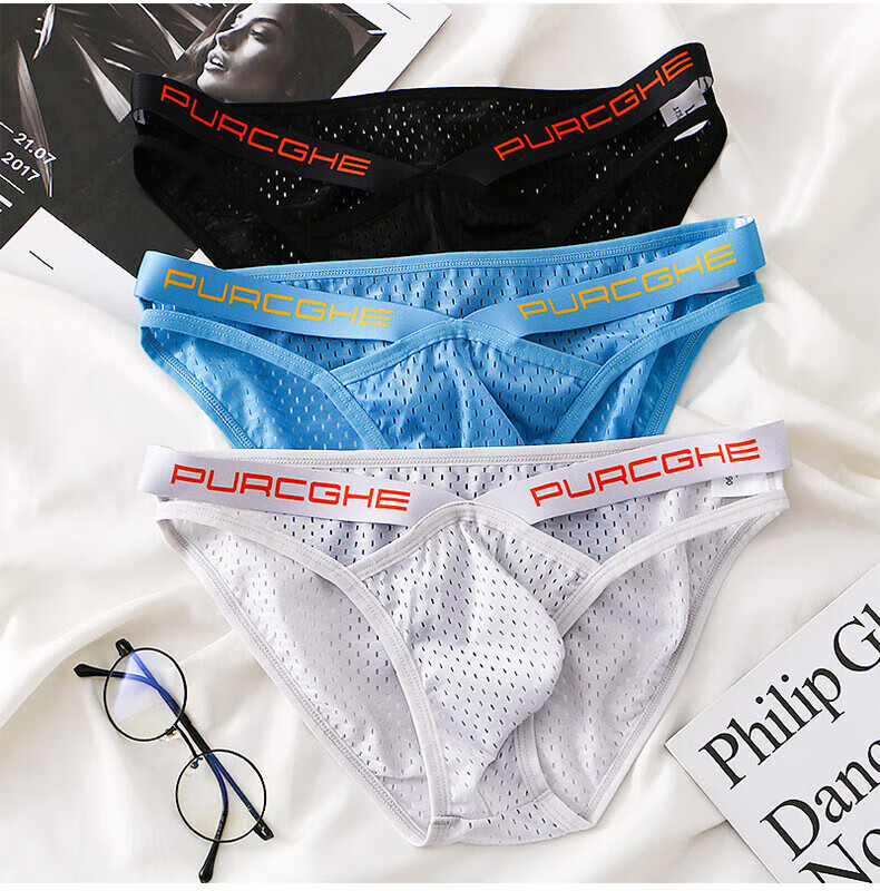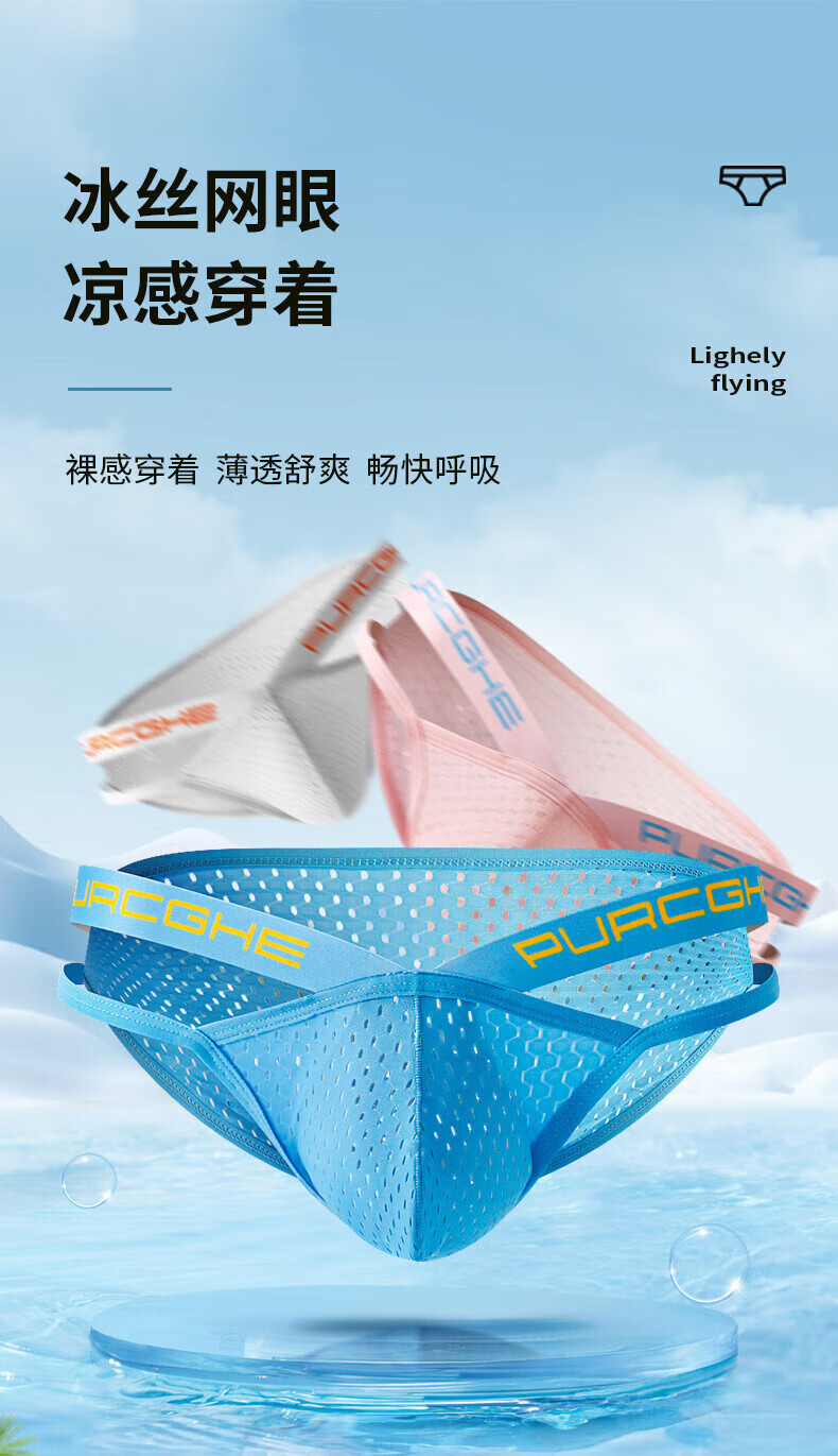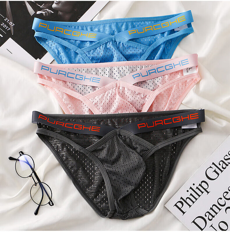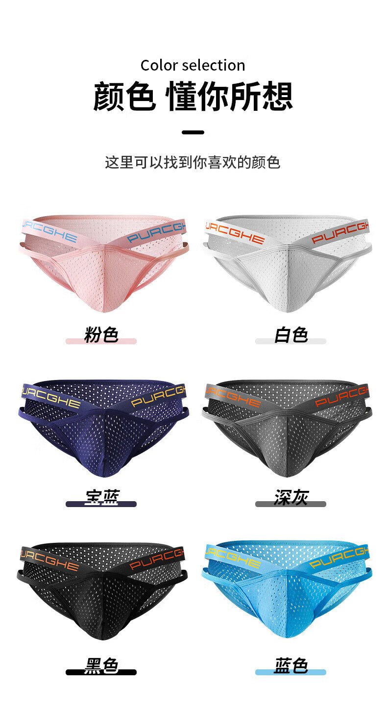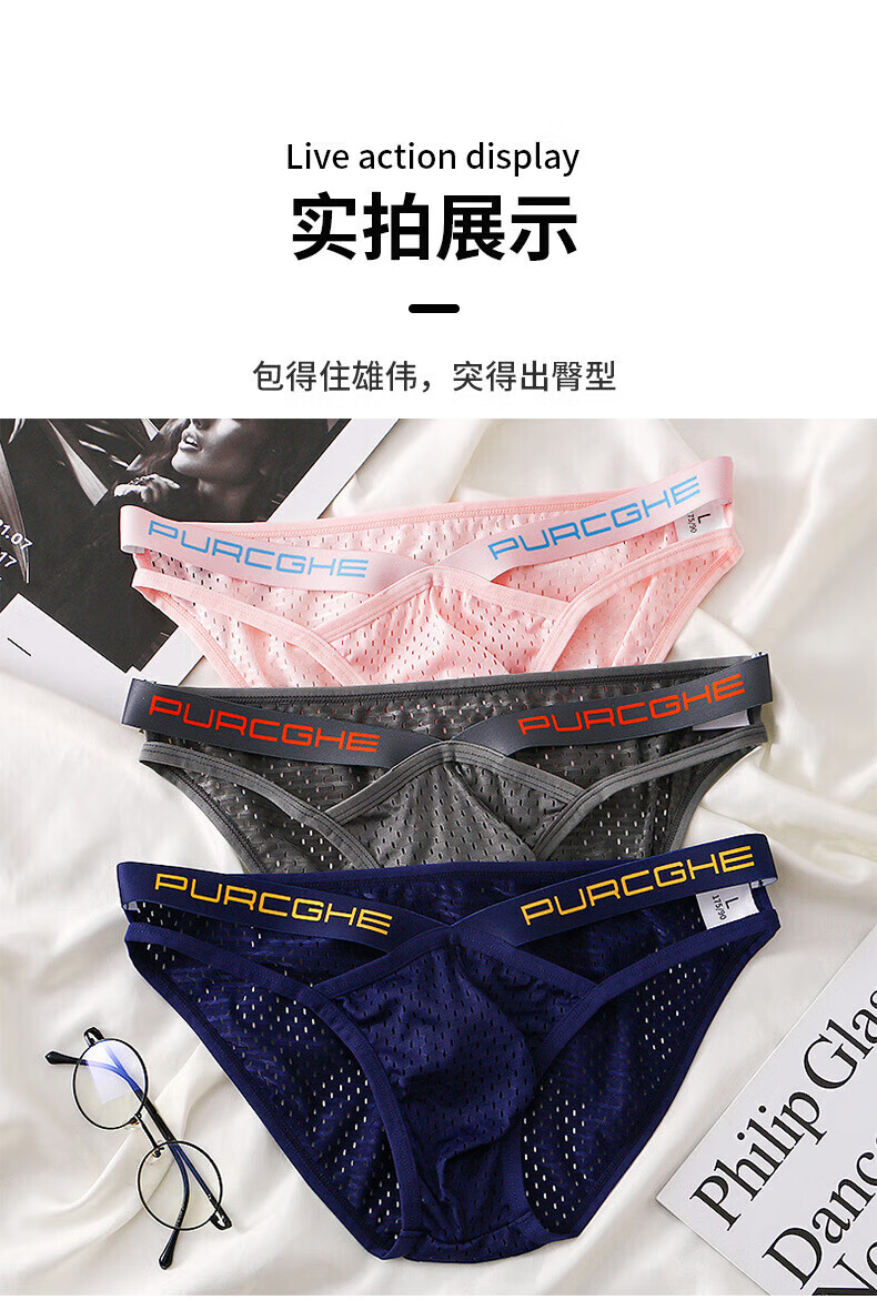 Universal Sexy Low Waist Sexy Ice Silk Men's Underwear Mesh Breathable Quick-drying Sports Briefs Hip Lift Suspender Underwear Men Pink L120Jin Jin is equal to within 0.5 kg