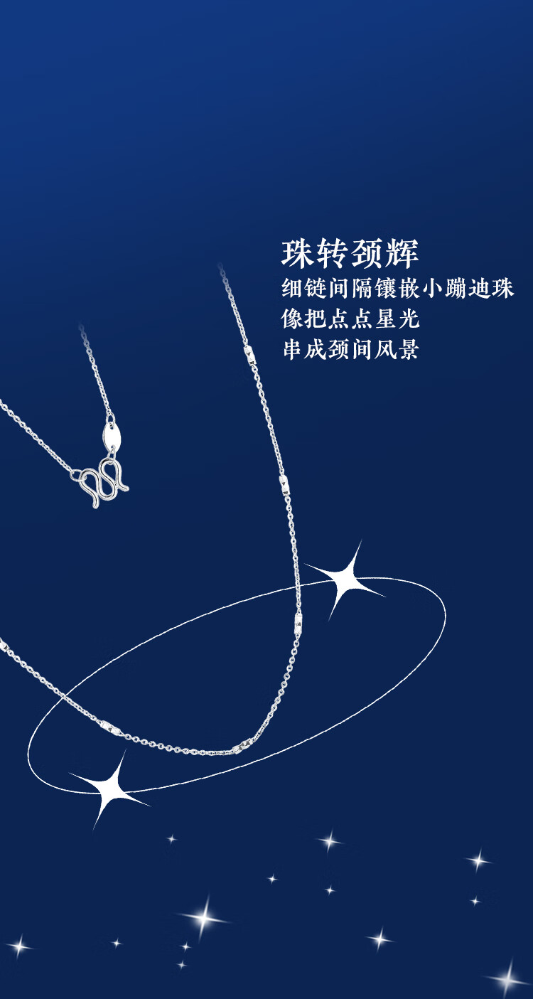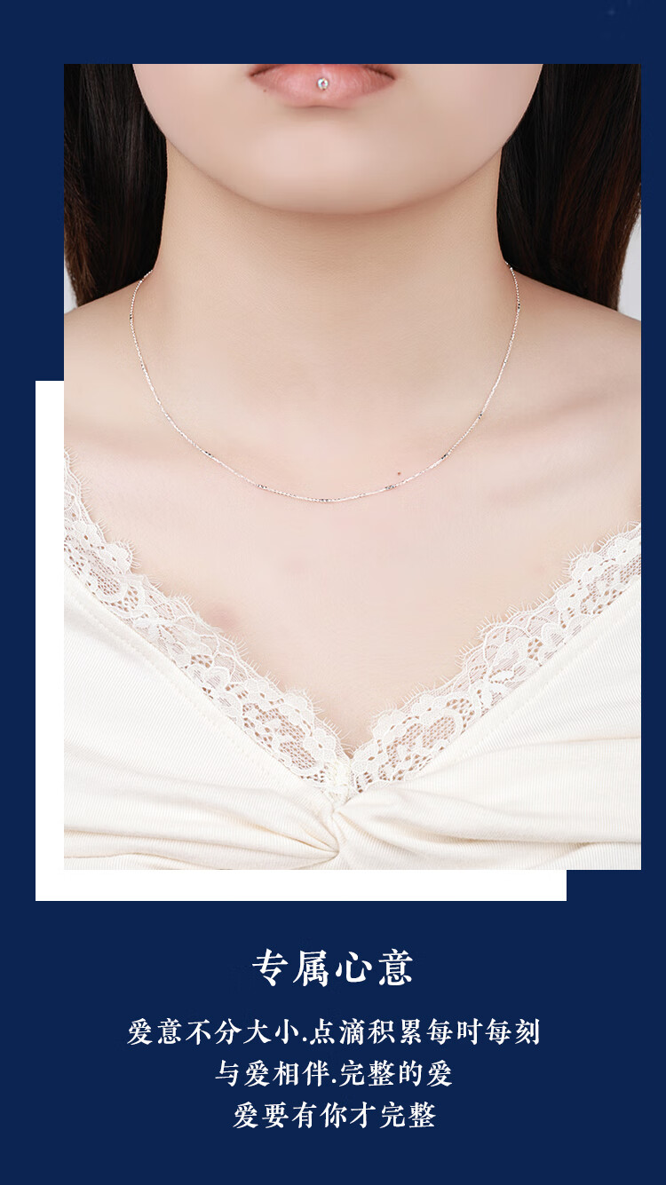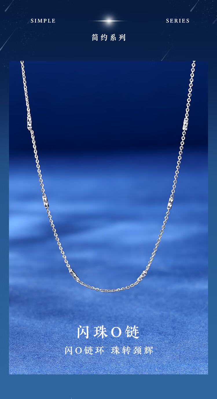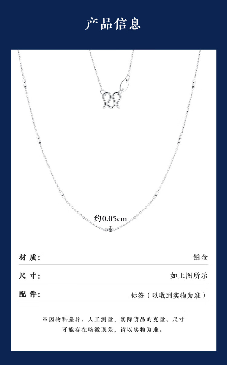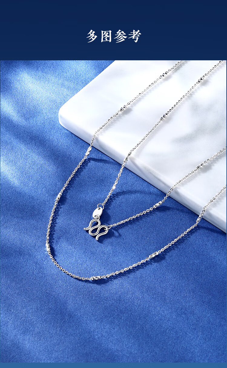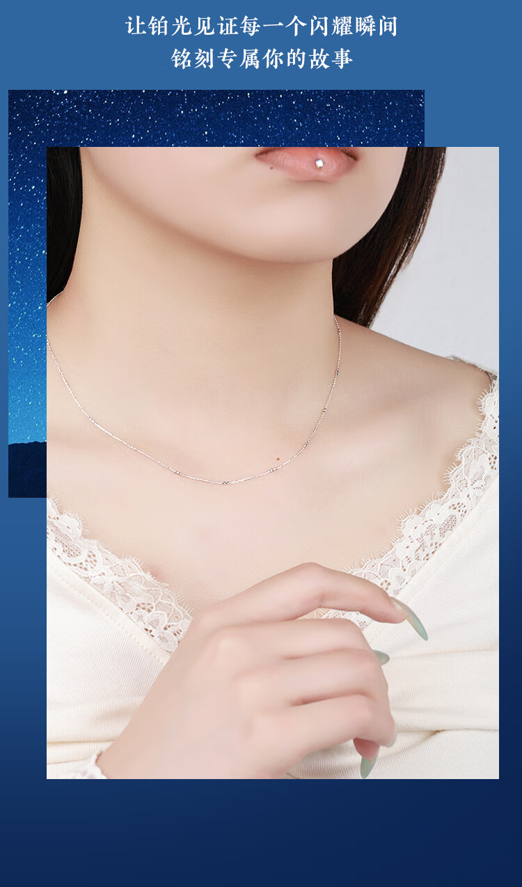 Wanfulong PT950 platinum necklace wave chain water shadow series plain chain M buckle versatile high-end platinum necklace women's PT950 bungee transfer bead necklace -43cm about 2.48g