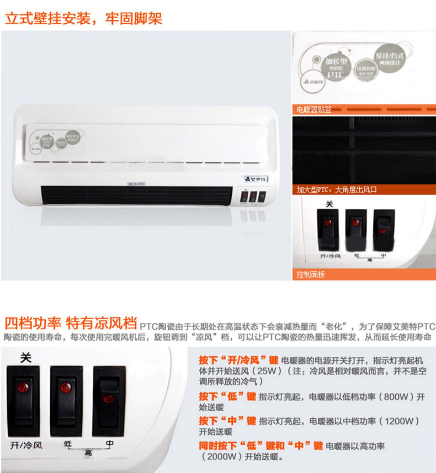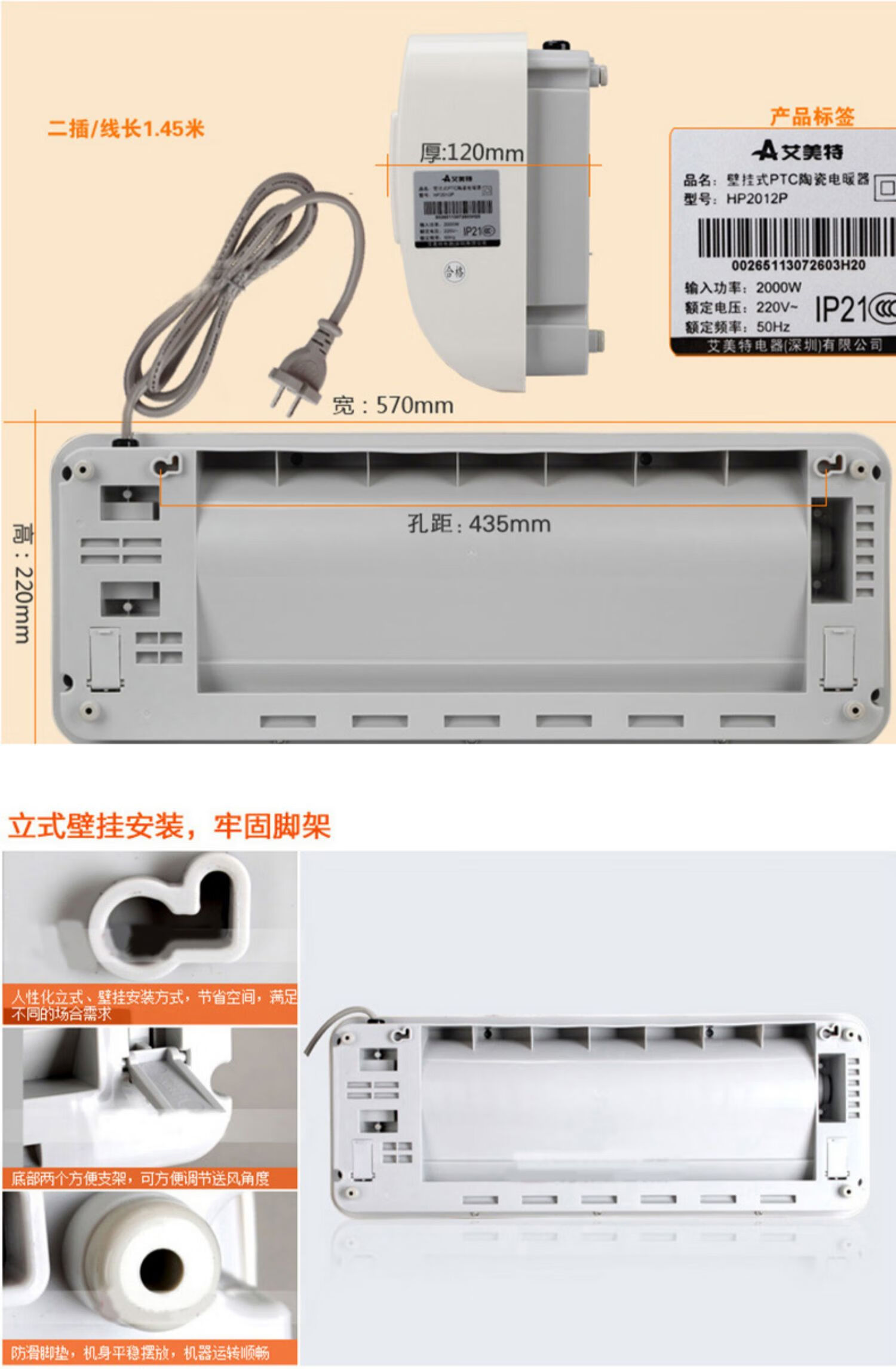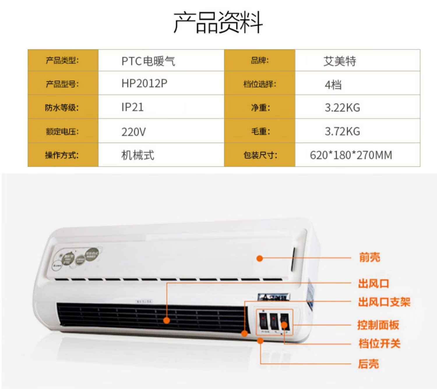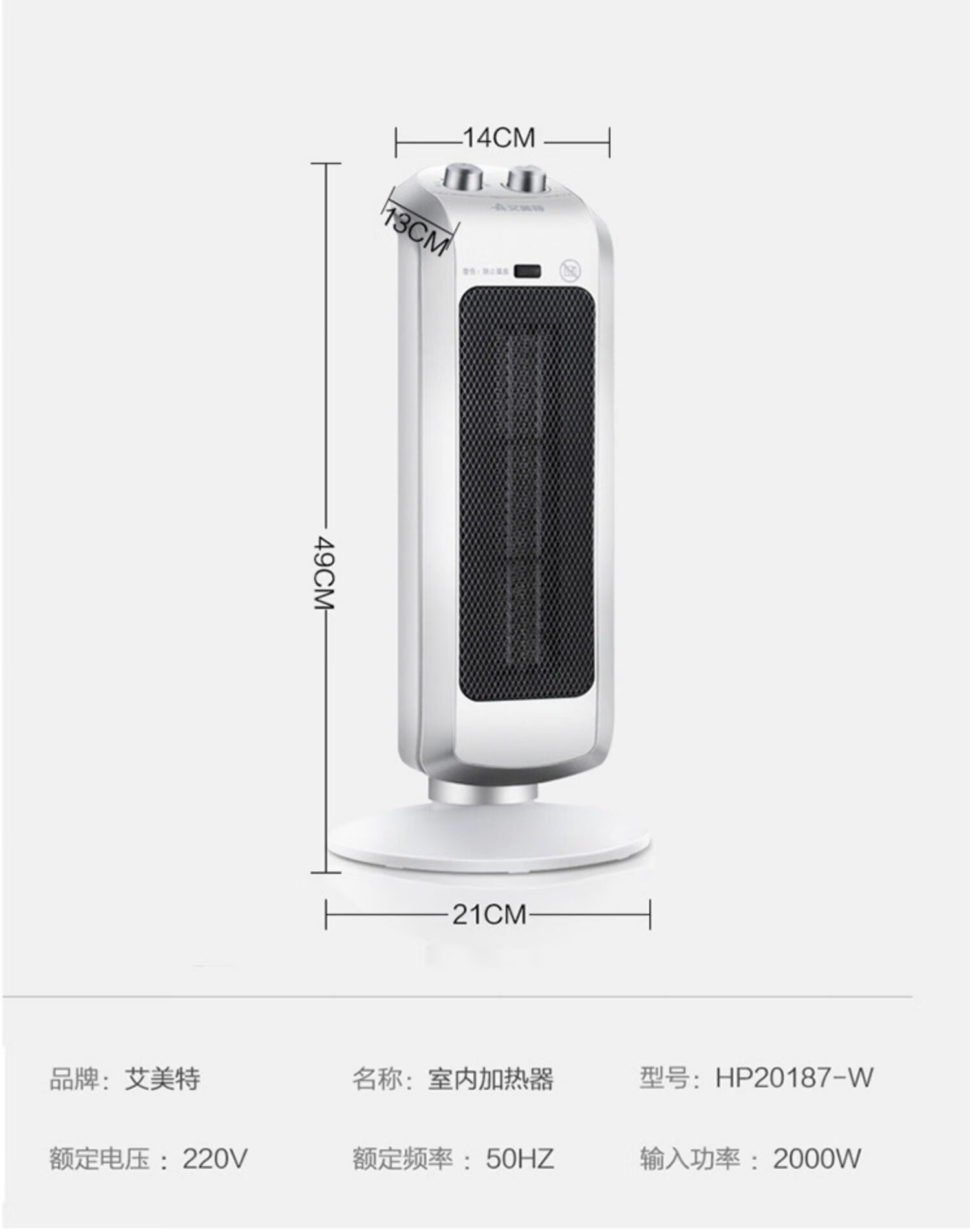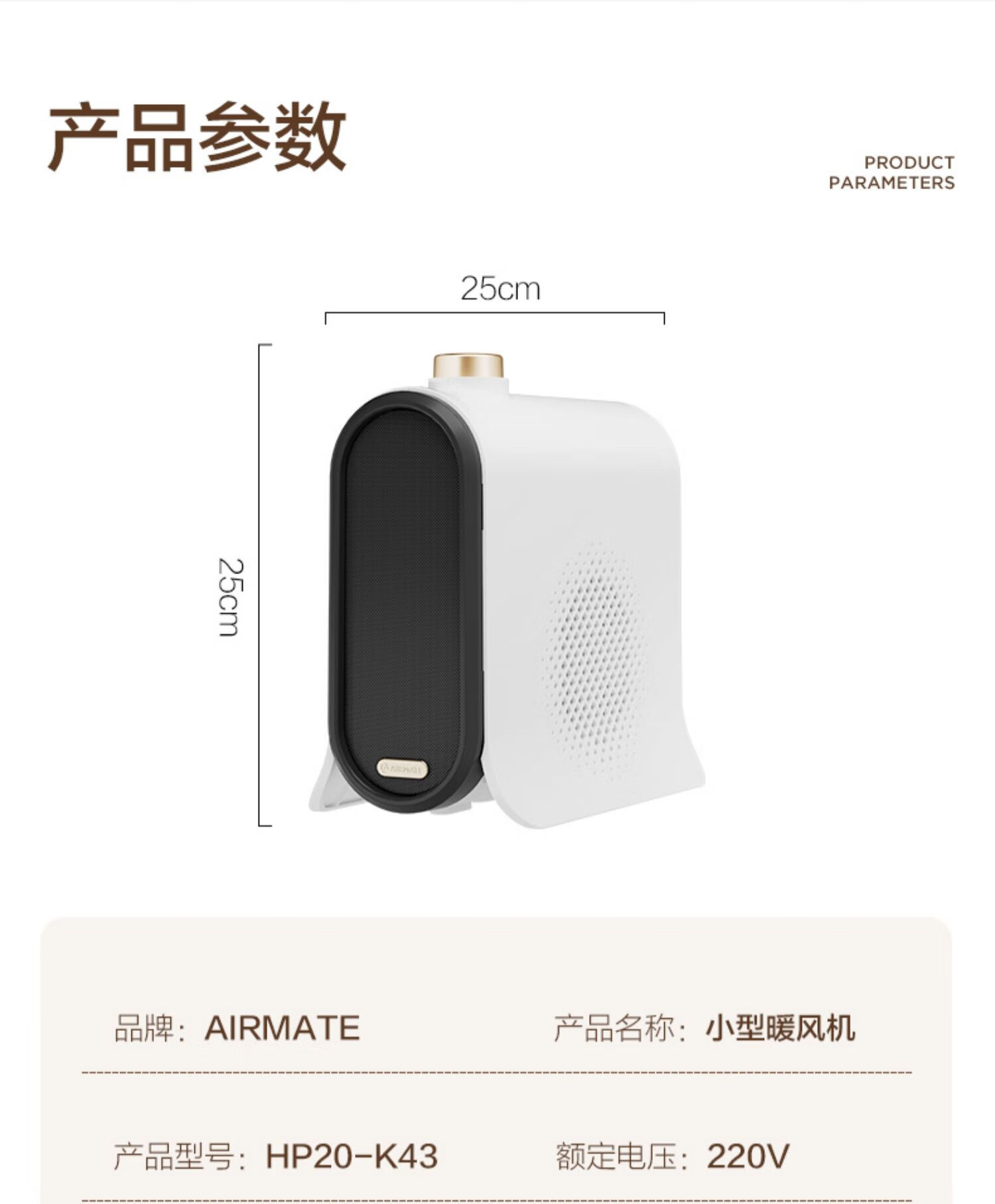 Airmate electric heater PTC ceramic heater household waterproof temperature control heater HP20065 bathroom quick heating HP20187W