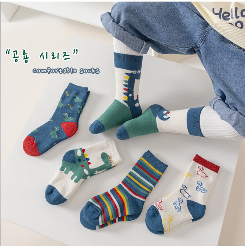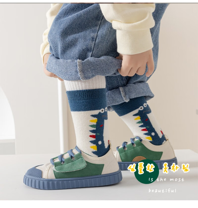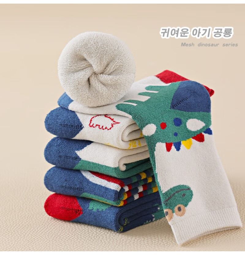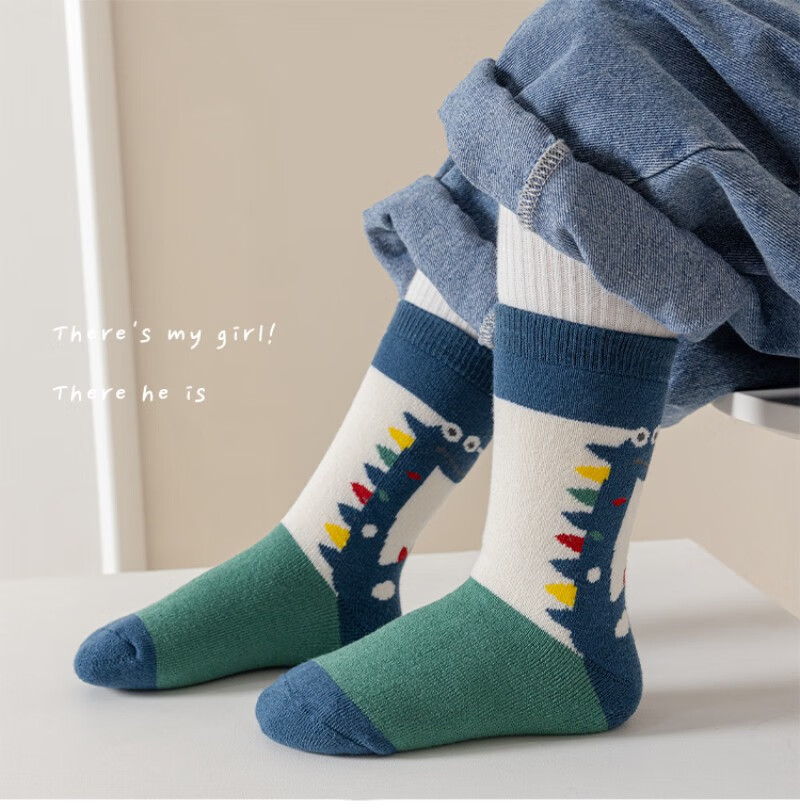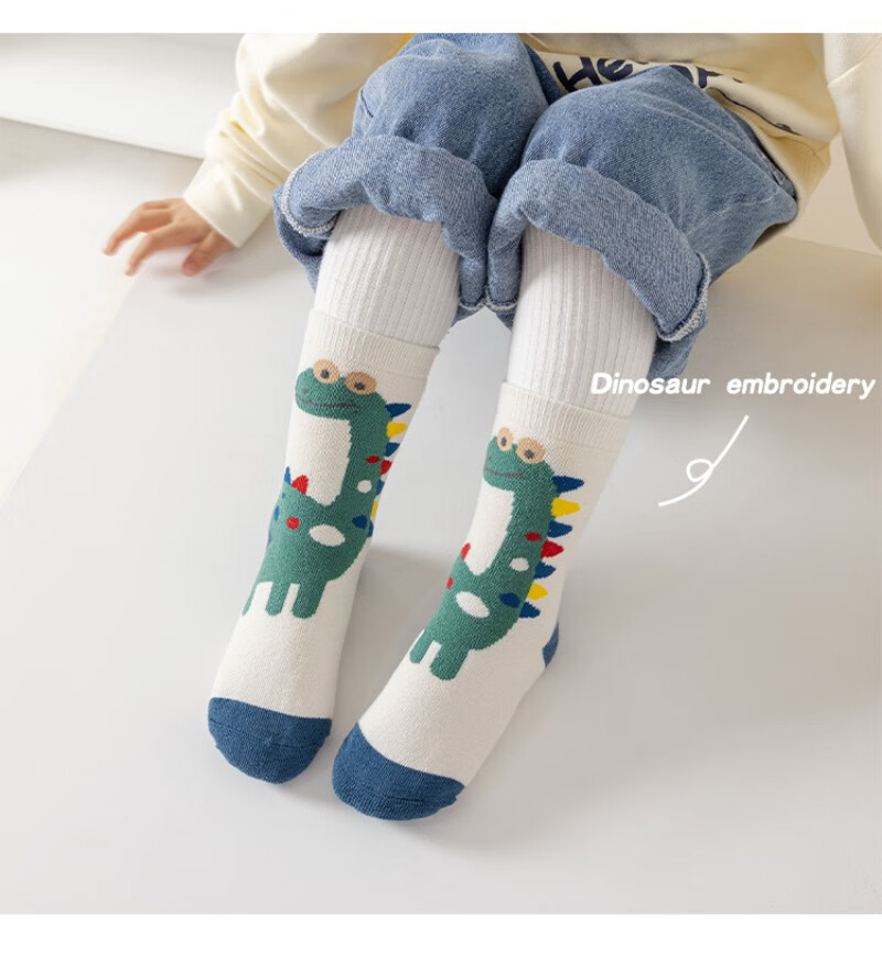 Children's socks for autumn and winter thickened terry combed cotton mid-tube cotton socks with velvet for boys and girls cartoon dinosaurs to keep warm and thick for children 4 pairs of terry terry pack letter C 4 pairs one size fits all 9-13 years old suitable for foot length 19-24cm