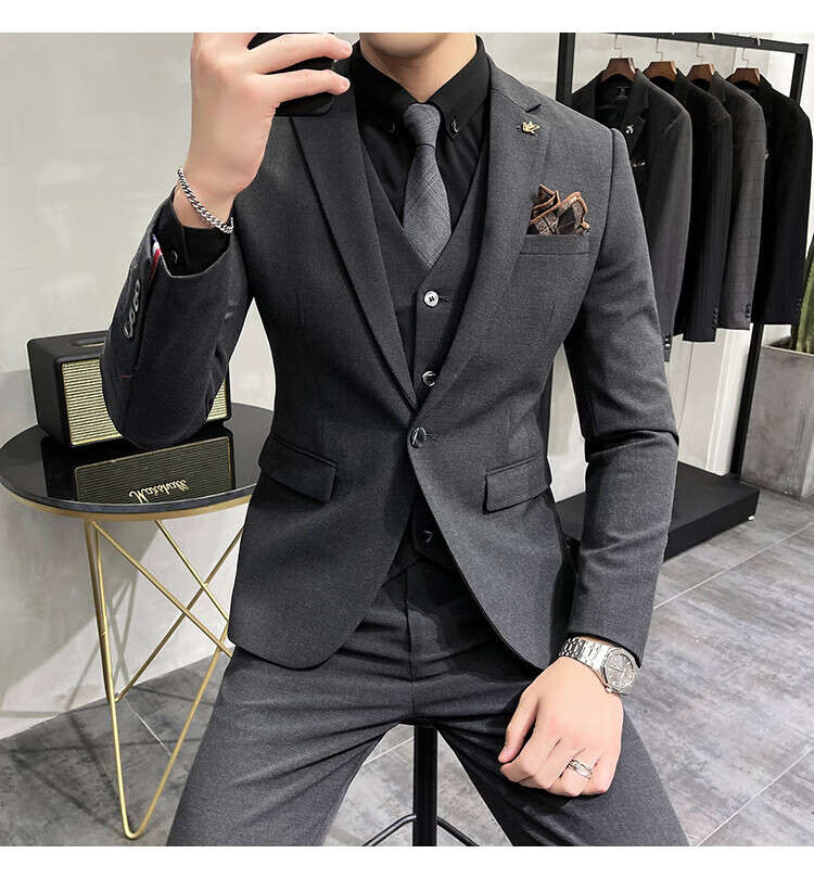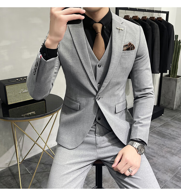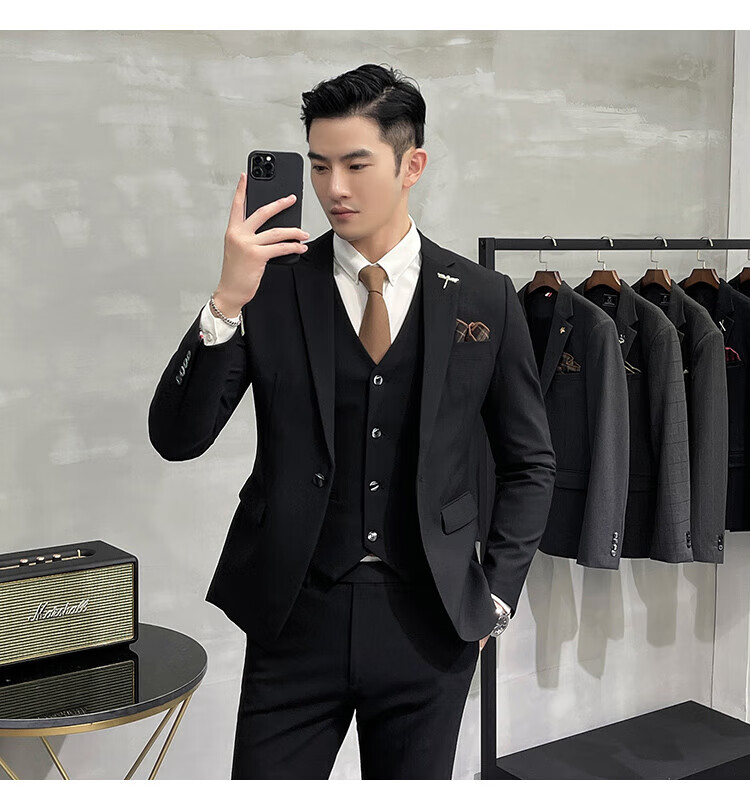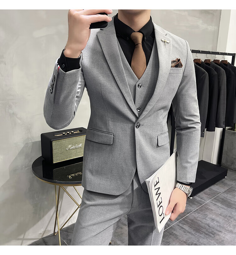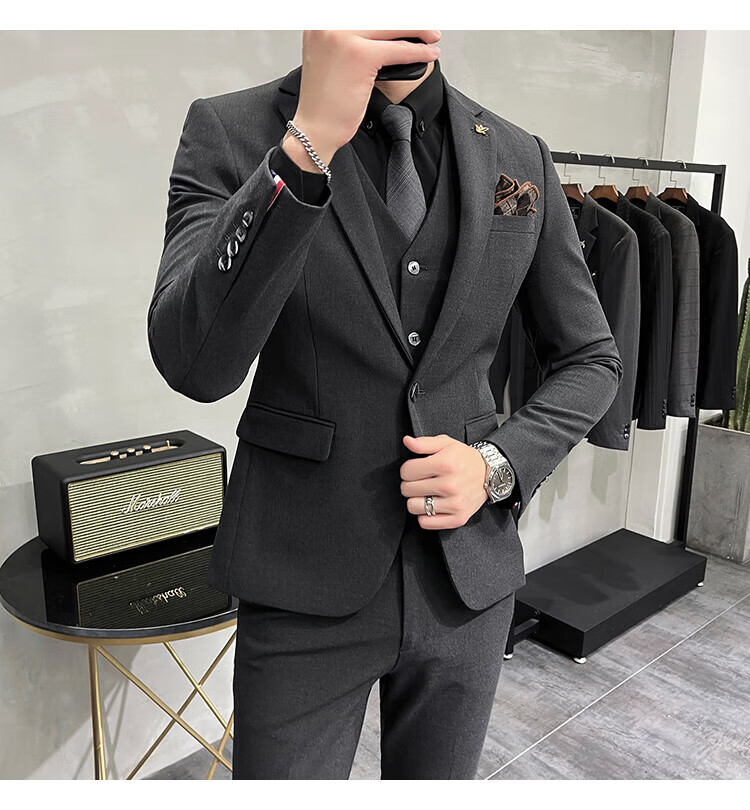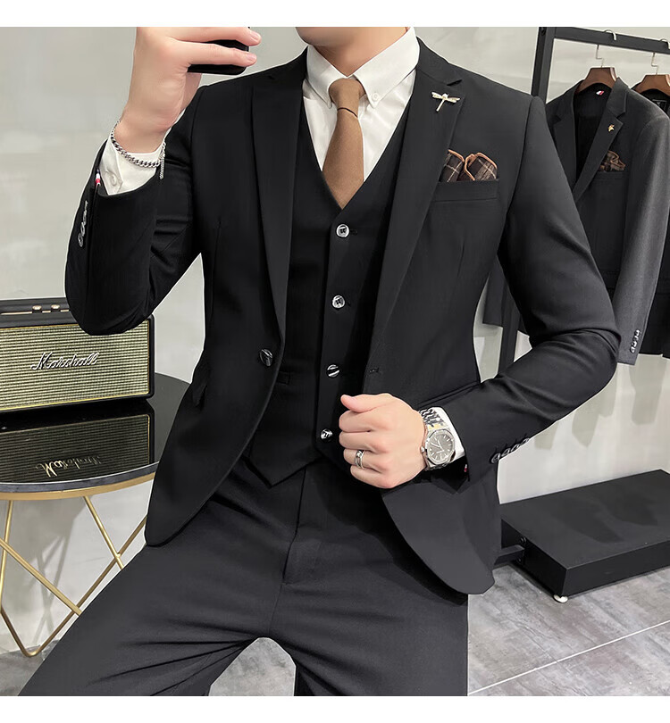 UOSO brand light luxury high-end men's suit suit men's plus size men's solid color suit suit men's three-piece dress suit group purchase customization discounts available for consultation S