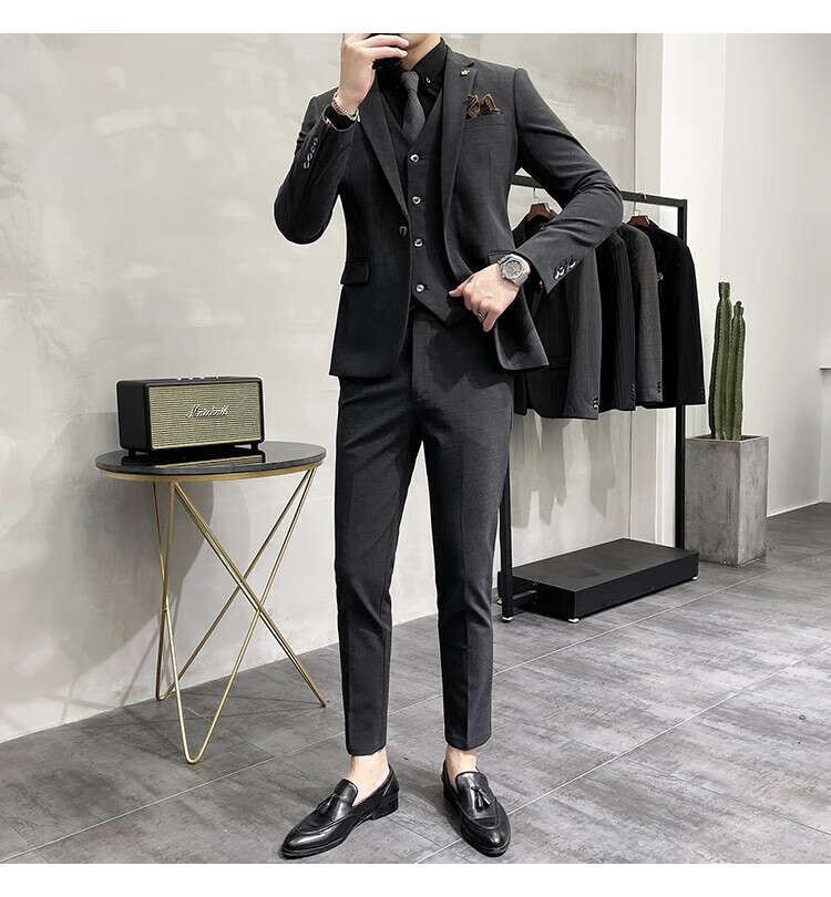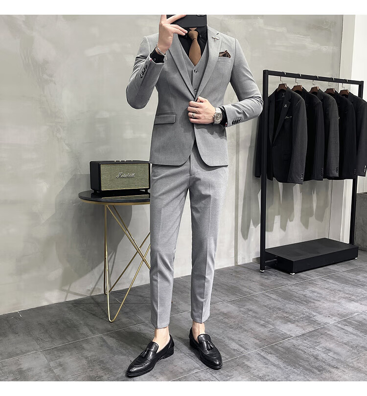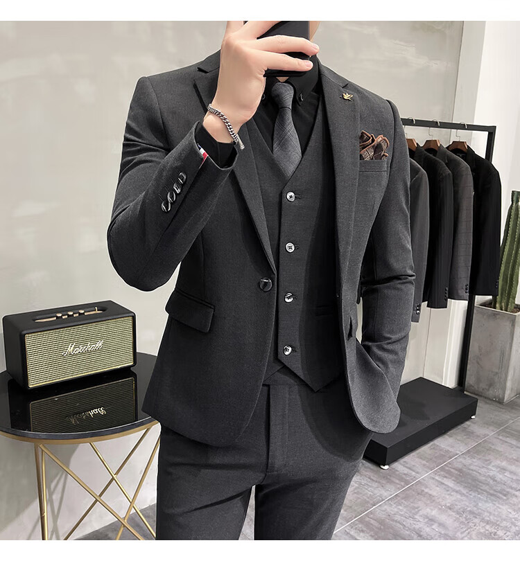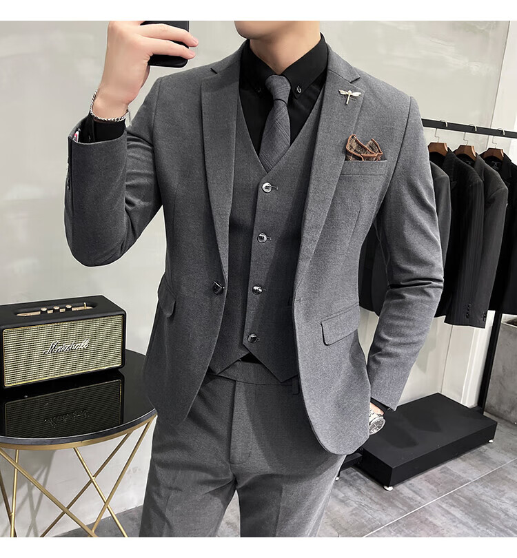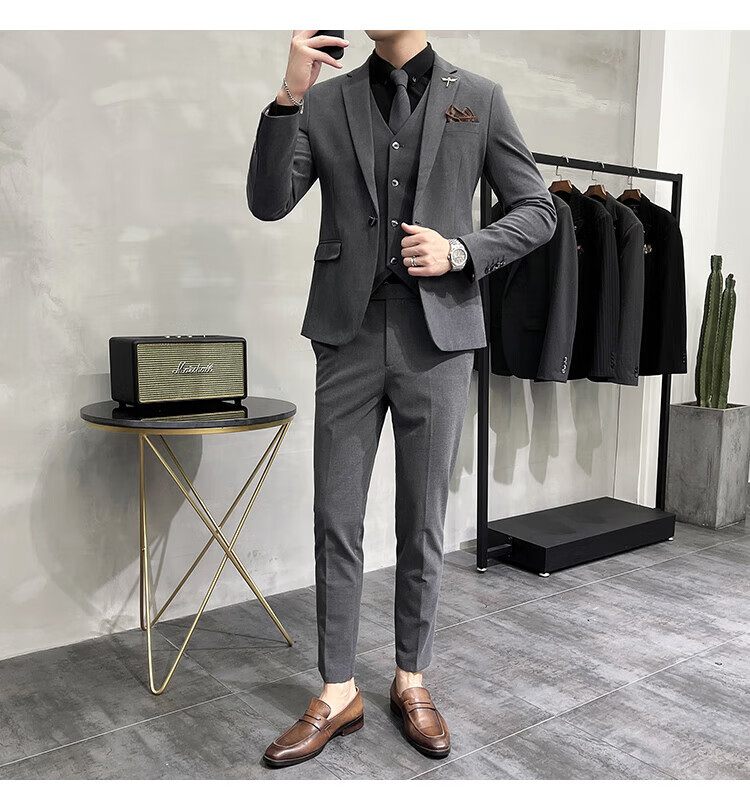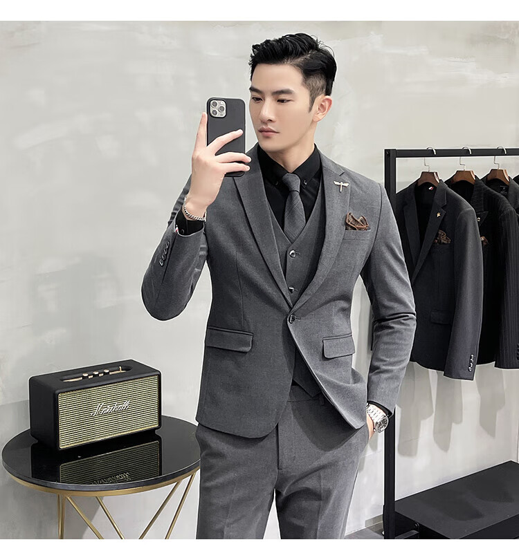 UOSO brand light luxury high-end men's suit suit men's plus size men's solid color suit suit men's three-piece dress suit group purchase customization discounts available for consultation S