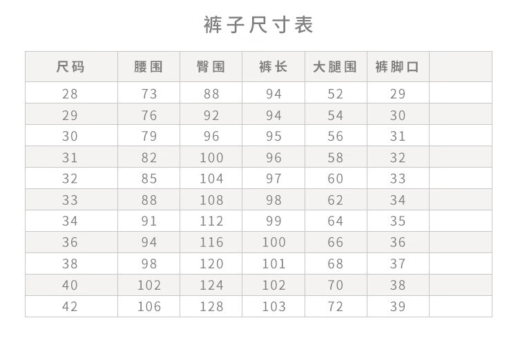 USA(inch) 28-30 30-32 32-34 34-38 38-42