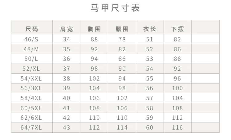 China (cm) 165 / 88-90 170 / 96-98 175 / 108-110 180 / 118-122 185 / 126-130