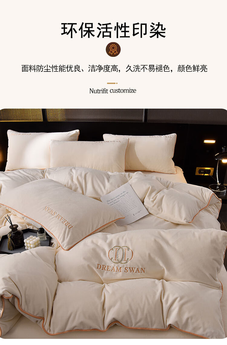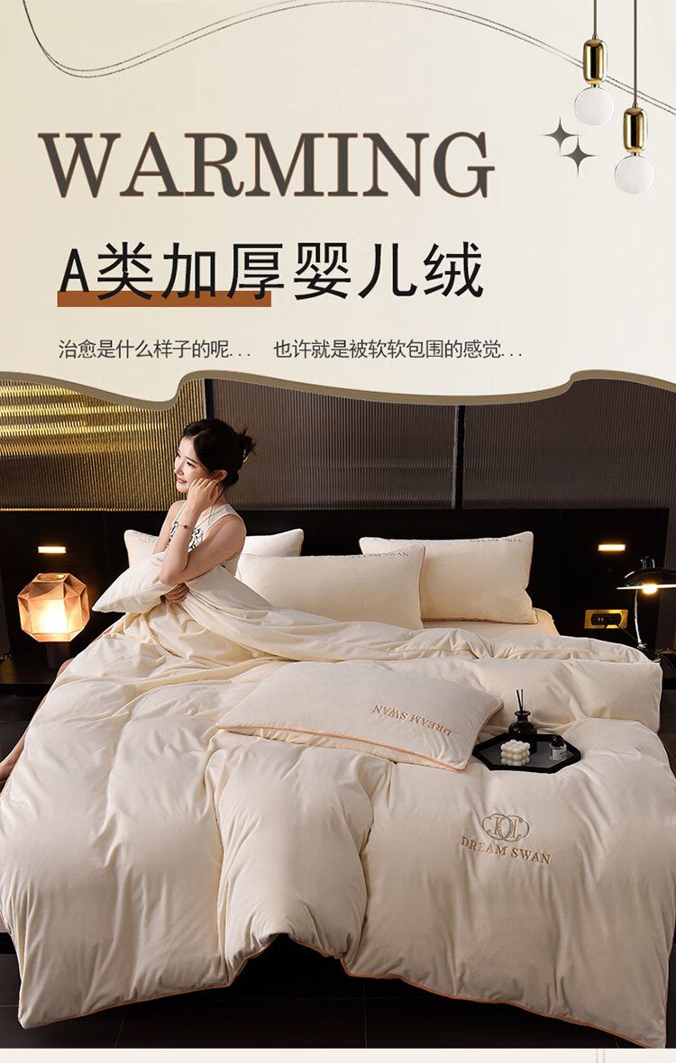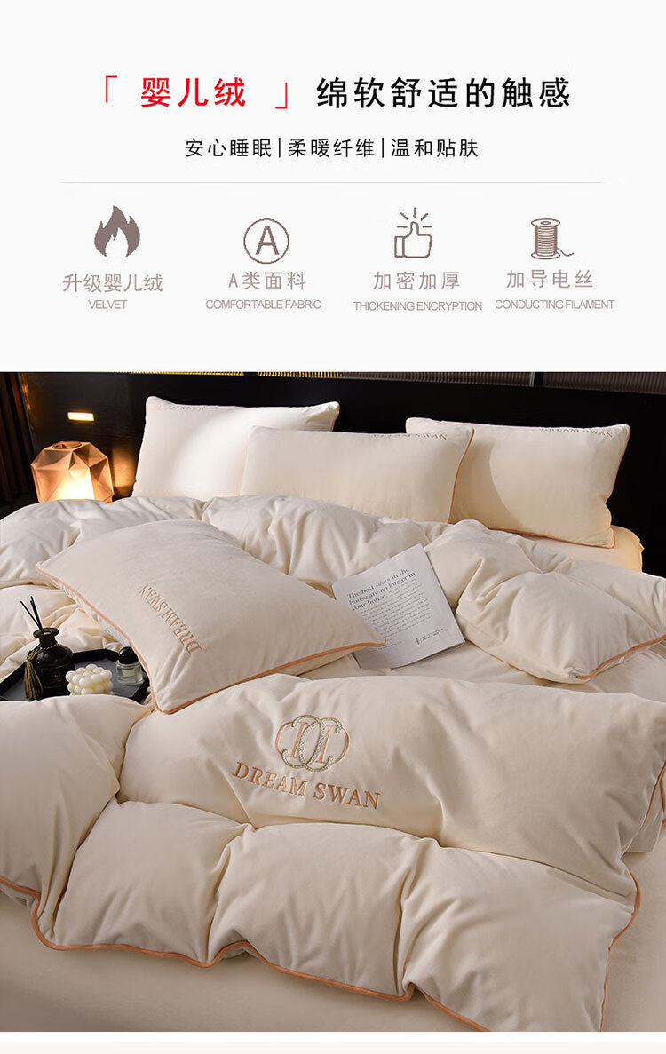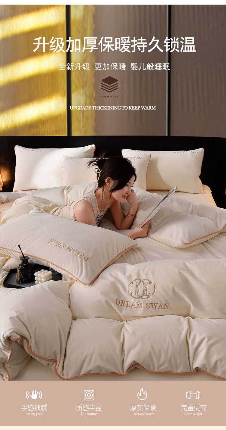 Dunlopillo High Weight Baby Milk Velvet Four-piece Set Warm Winter Sheets and Quilt Covers Coral Velvet Double-sided Plush Bedding Warm Luxury-Bean Paste Red Class A Quality Velvet Encryption 1.8 Bed Four-Piece Sheet Set Quilt Cover 200cm*230cm
