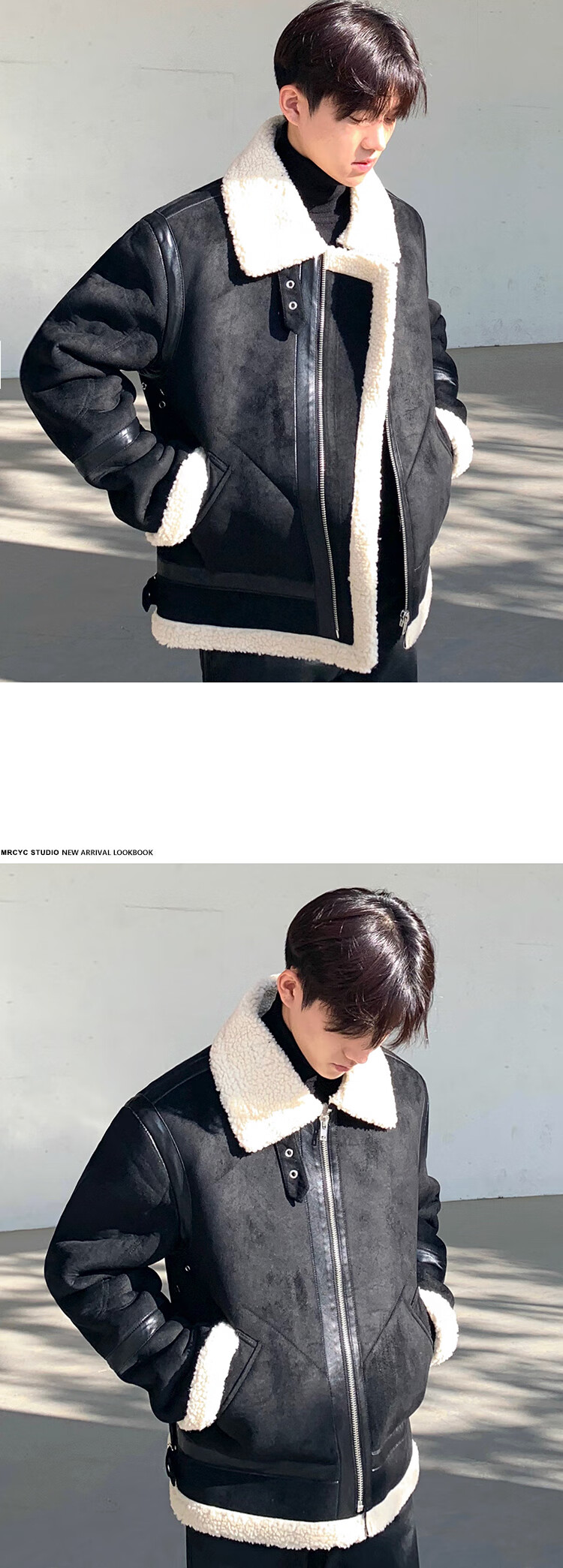Falling cotton-padded jacket men's Korean style winter suede cotton-padded jacket trendy loose thickened fur one-piece lambswool jacket black XL