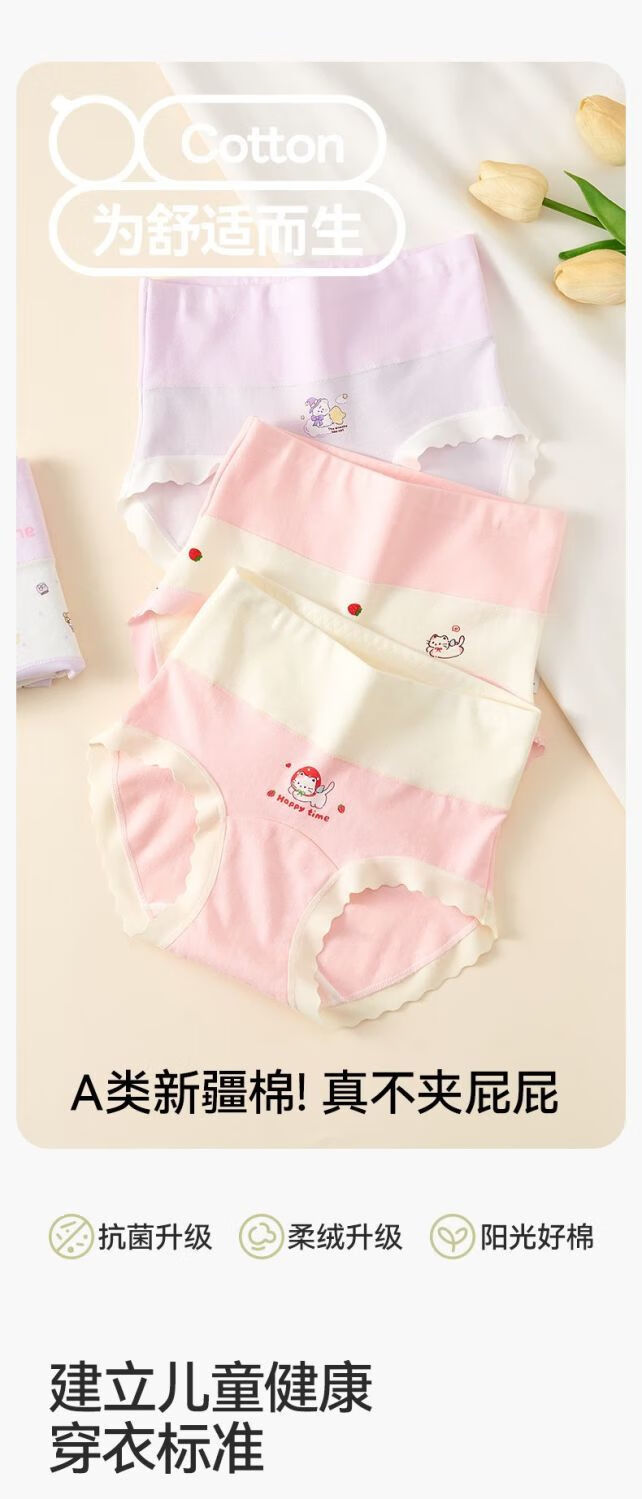 Hongdou children's clothing girls' underwear children's pure cotton crotch enlarged development period junior high school students high waist type A medium and large children's girls' briefs 6 pairs of high waist type A cotton briefs 02 160 4XL size 80-120 Jin Jin equals 0.5 kg