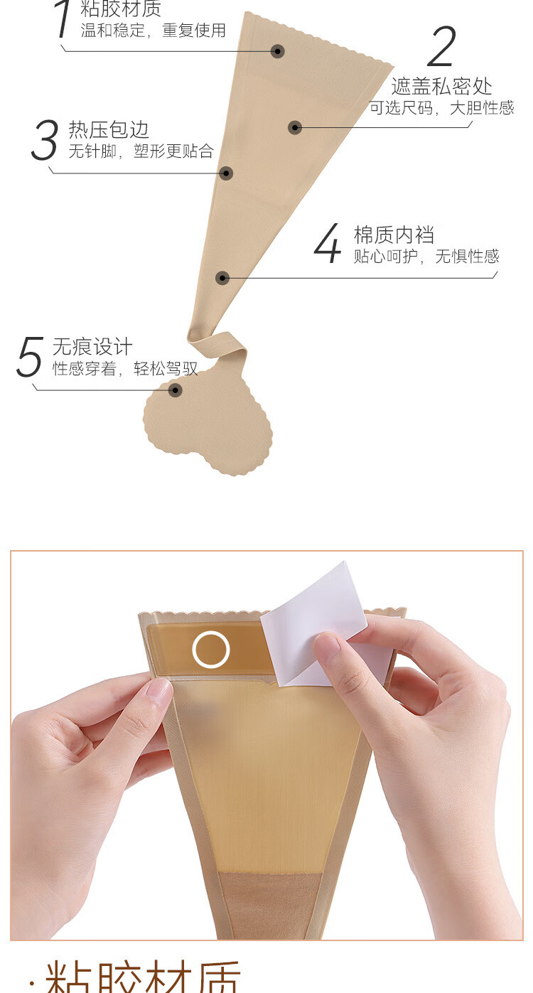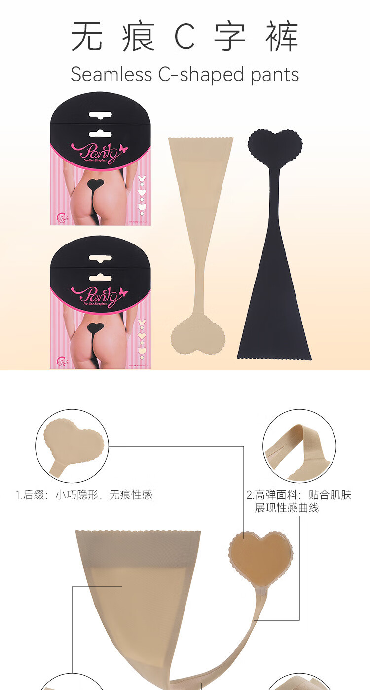 Pickup Cat Sexy Underwear New Self-adhesive Seamless Breathable C-string Pants Women's G-string Pants Men's Invisible One-piece Ice Silk C-Pants Skin Color Love Model Boxed S