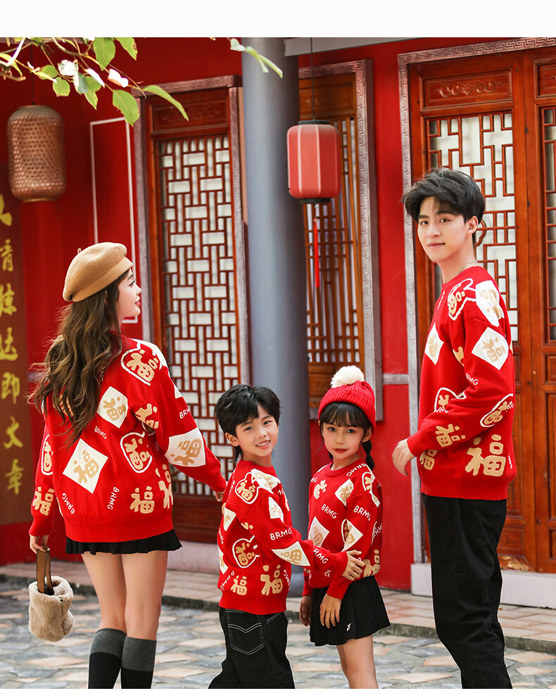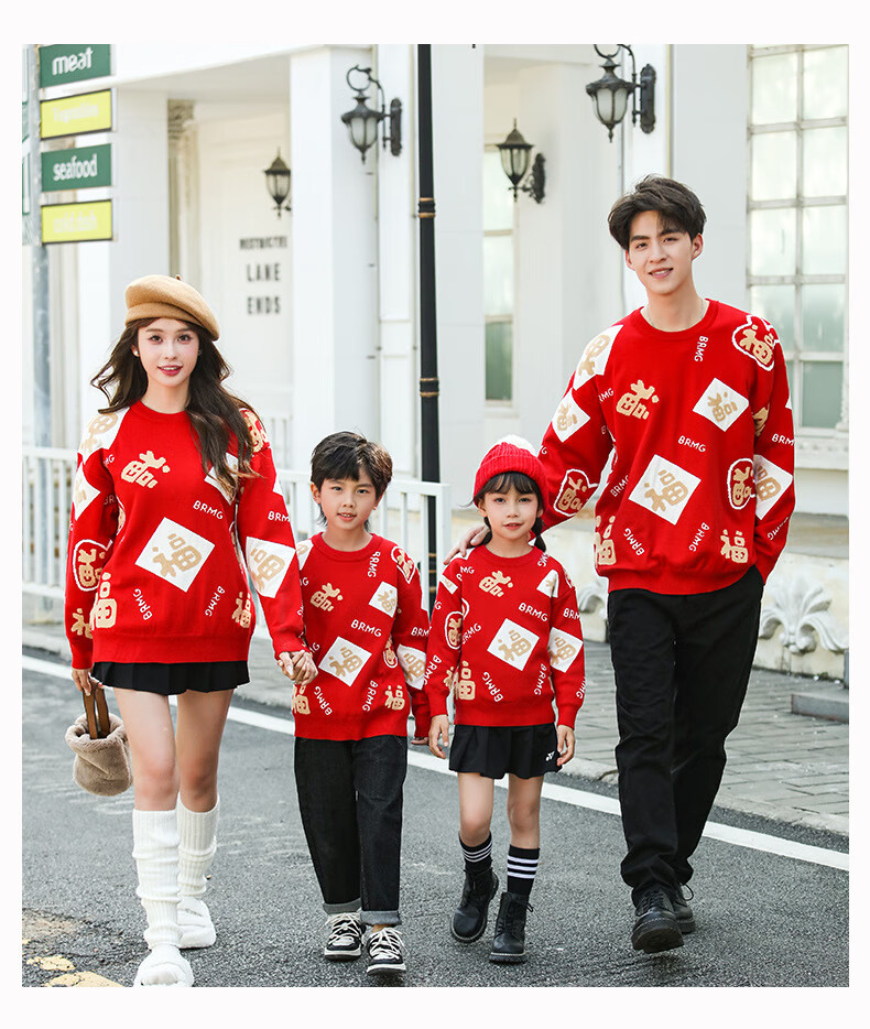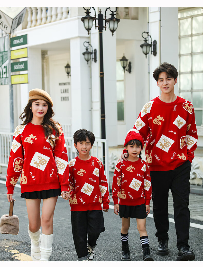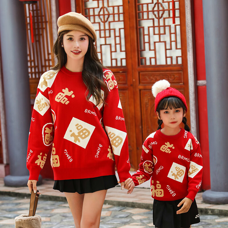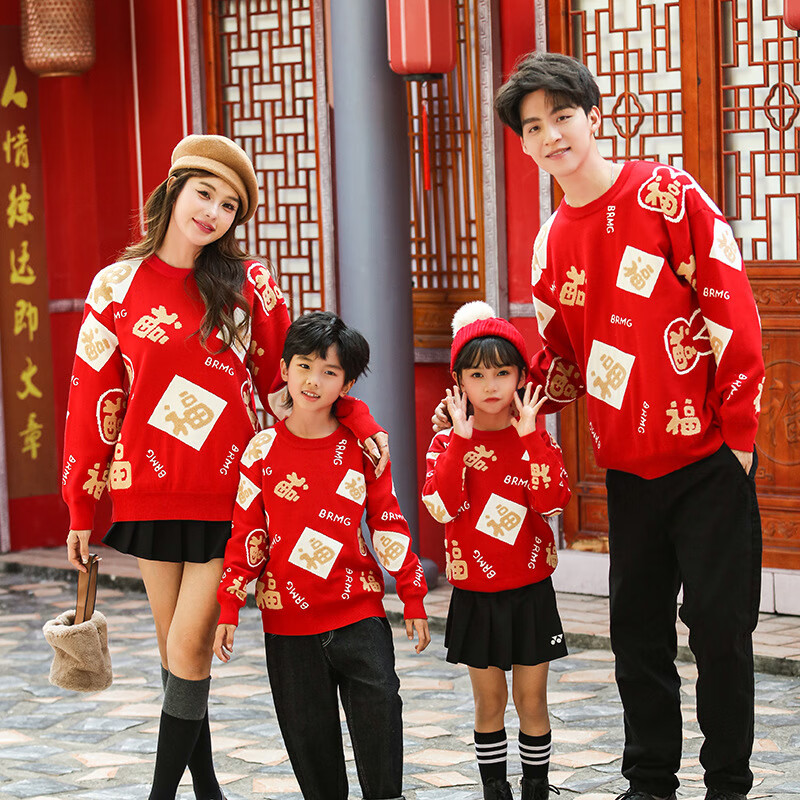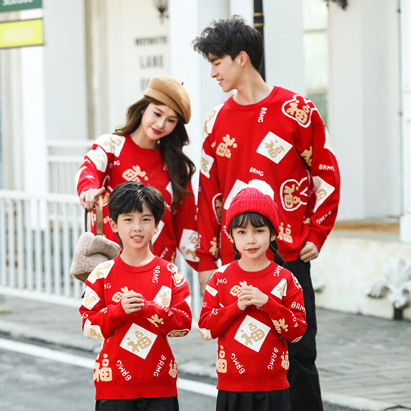 G.duck New Year parent-child outfit sweater winter family of three festive thickened coat red mother and daughter mother and son high-end family portrait red sweater 165 adult size S