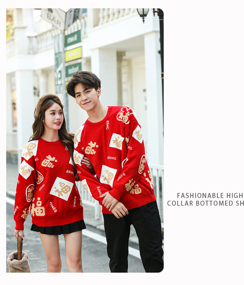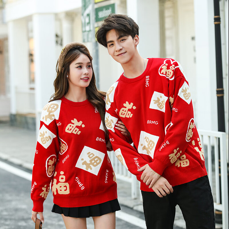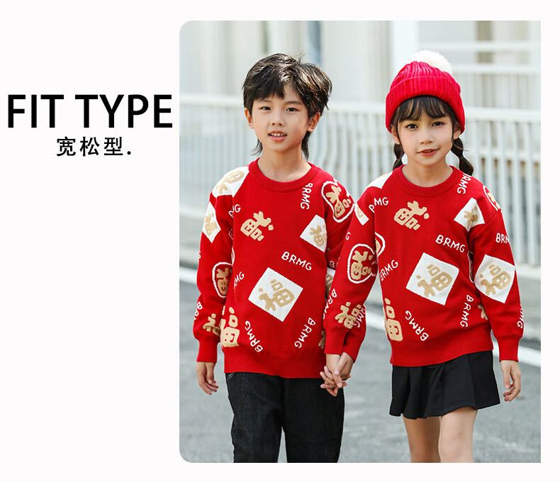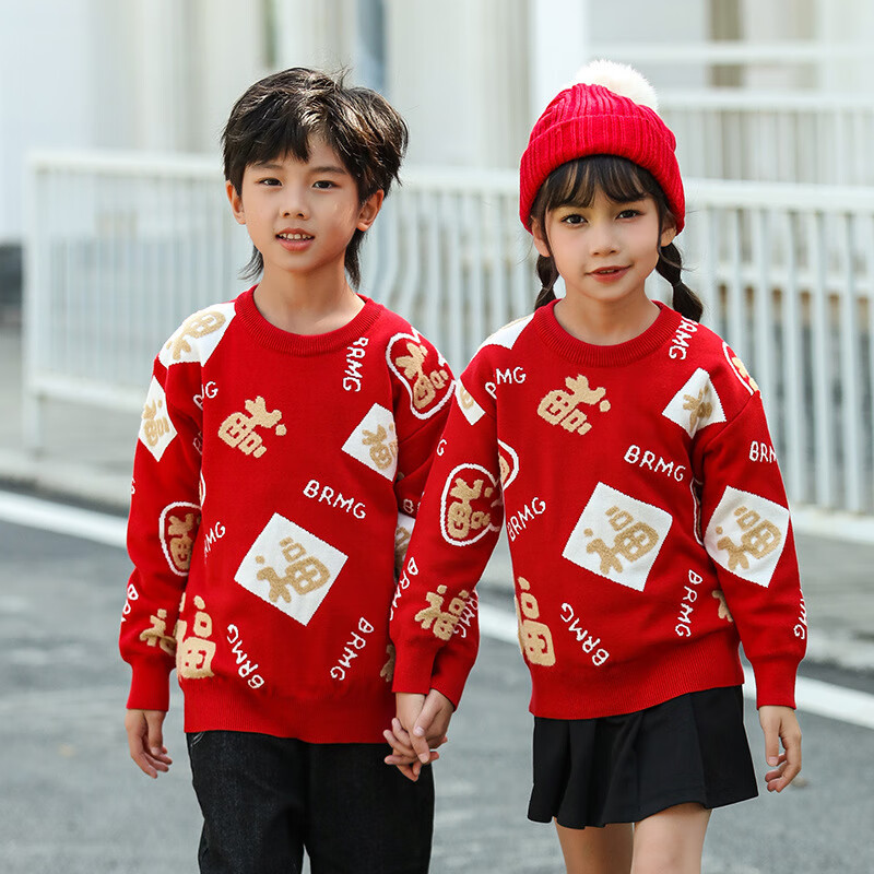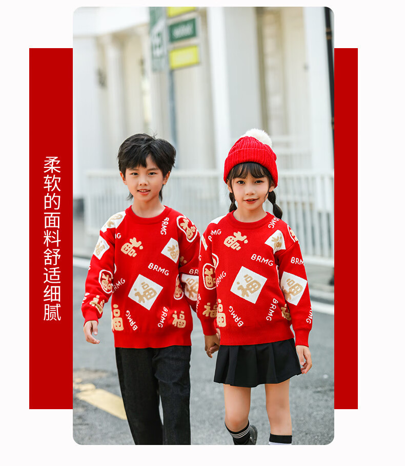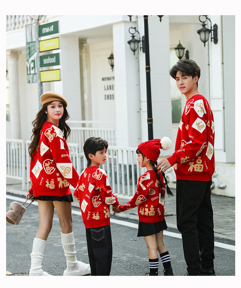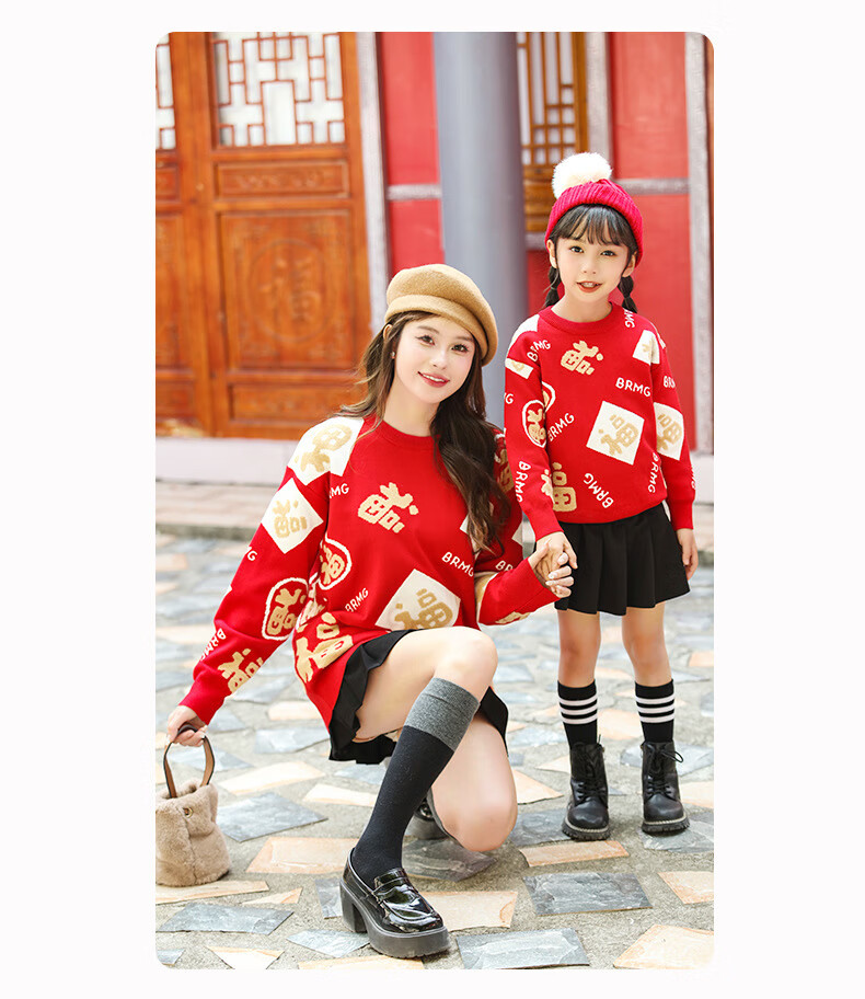 G.duck New Year parent-child outfit sweater winter family of three festive thickened coat red mother and daughter mother and son high-end family portrait red sweater 165 adult size S