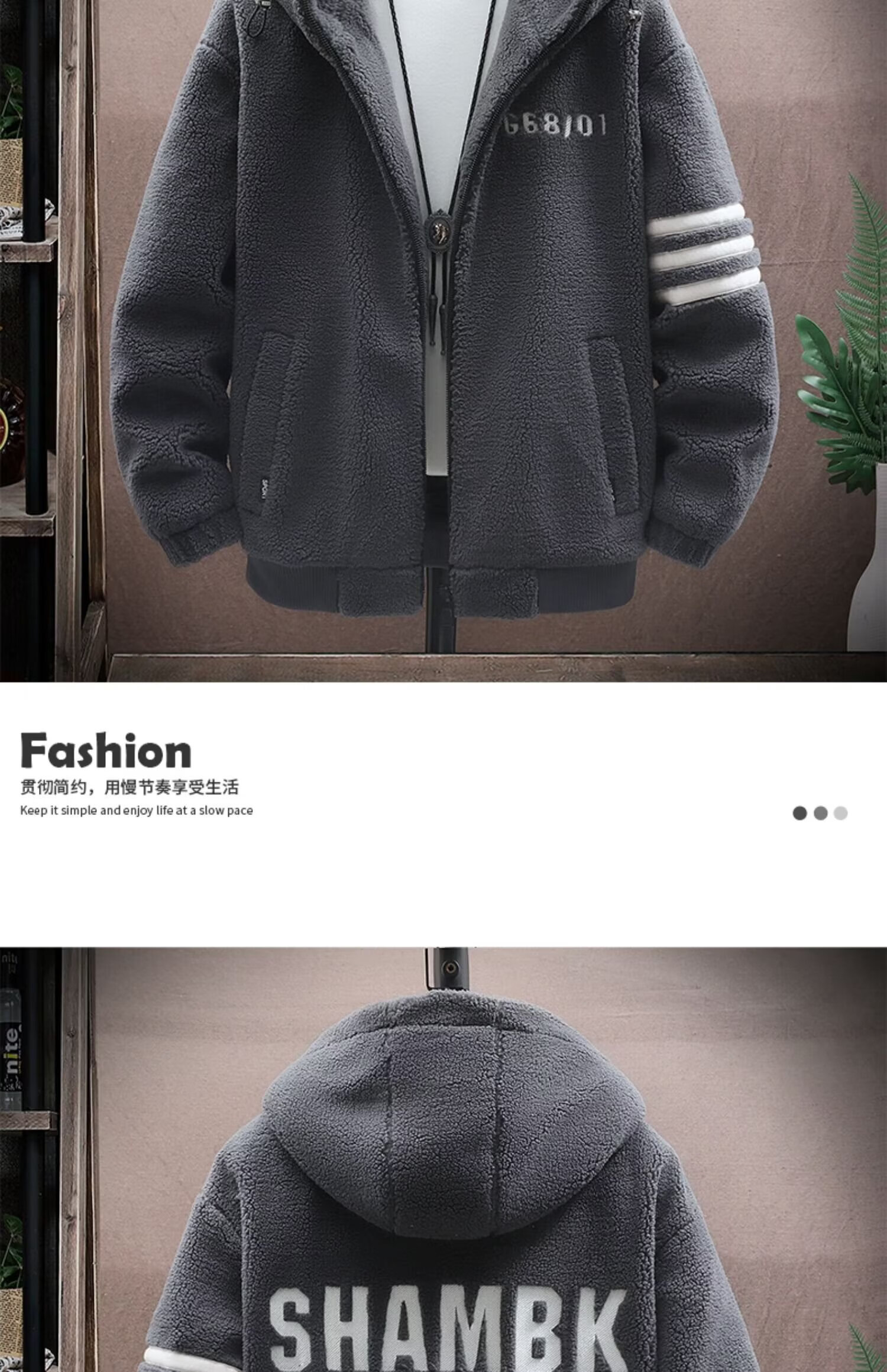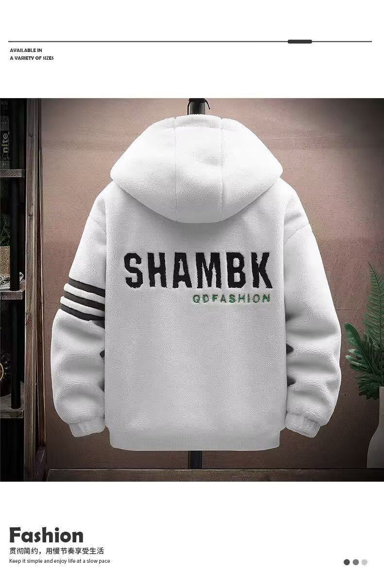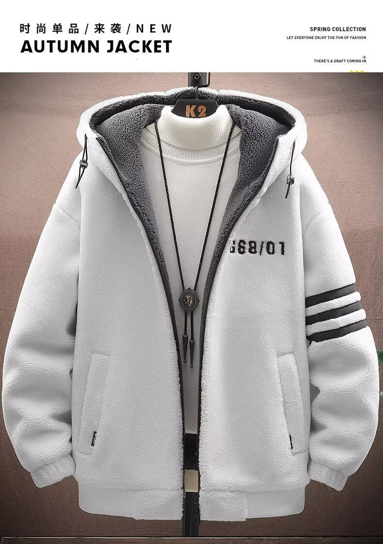 Playboy 25 Double-sided Velvet Jacket Men's Winter Loose and Trendy Teenage Students' Padded Thickened Granular Velvet Men's Jacket White XL