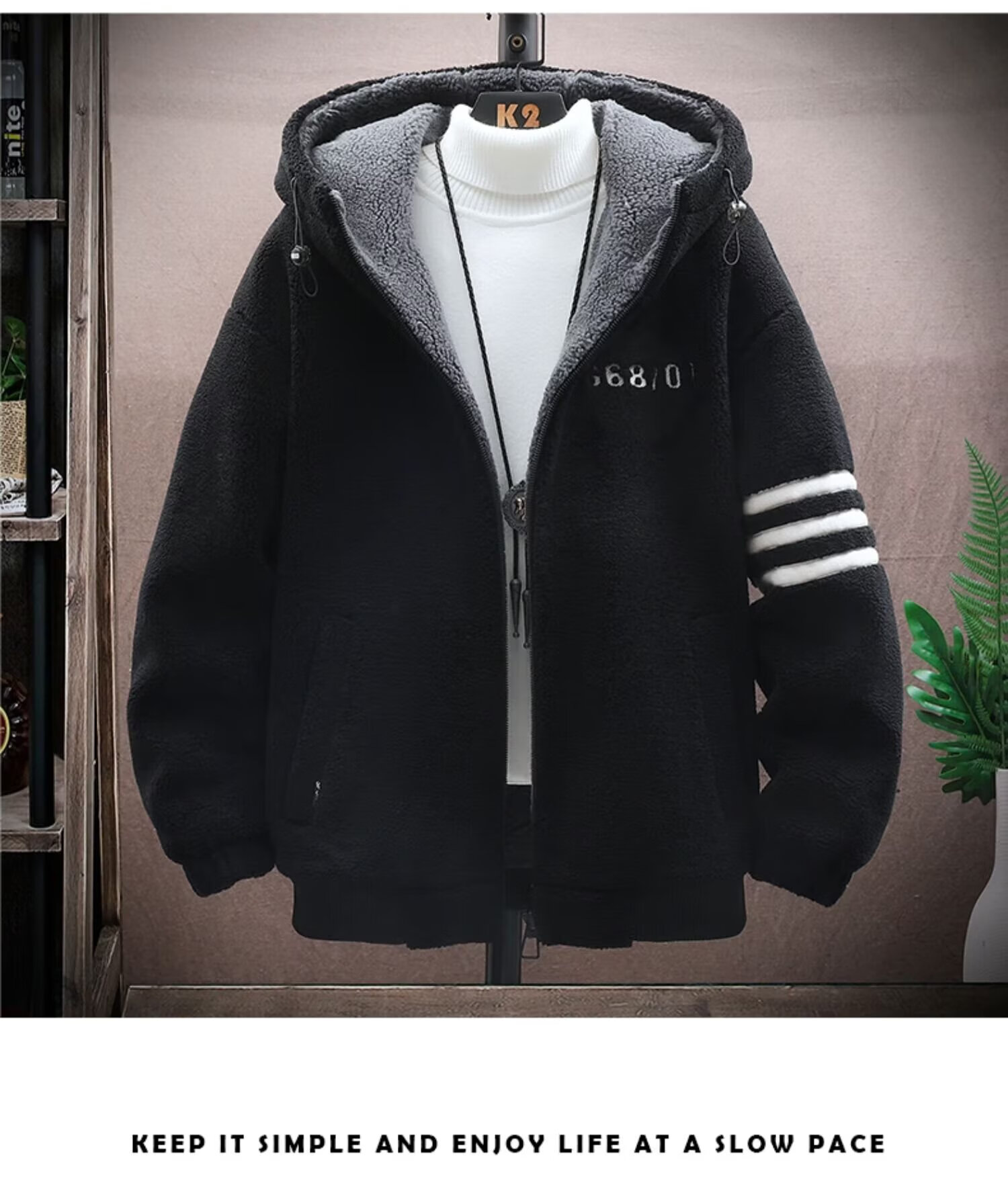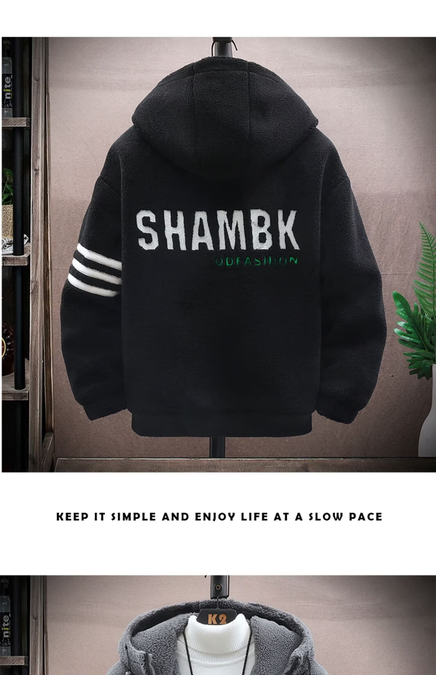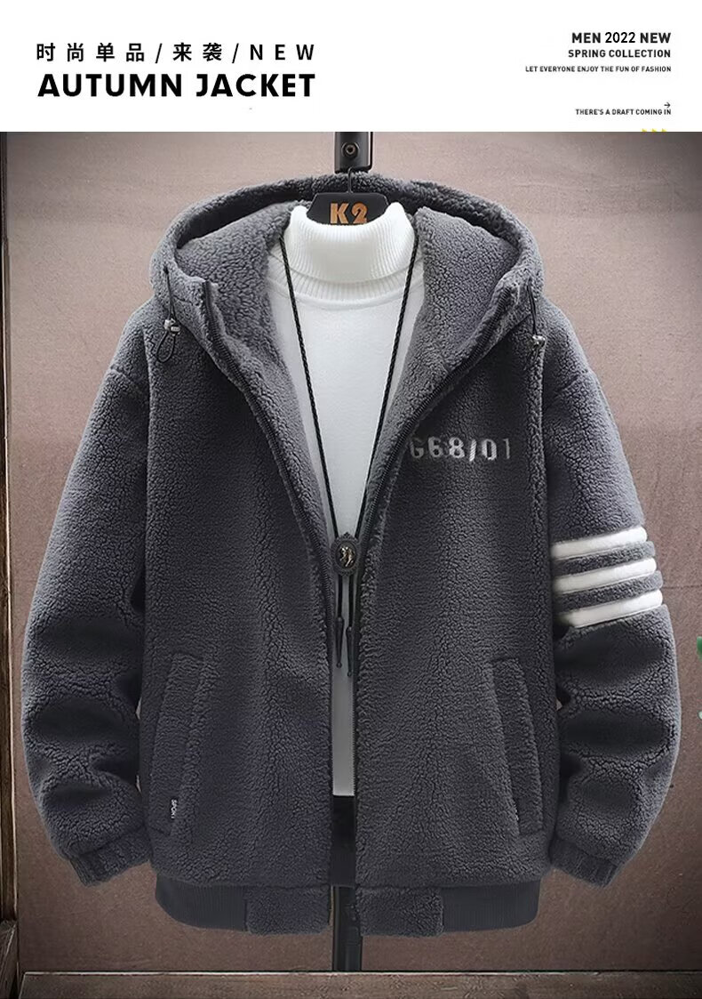 Playboy 25 Double-sided Velvet Jacket Men's Winter Loose and Trendy Teenage Students' Padded Thickened Granular Velvet Men's Jacket White XL
