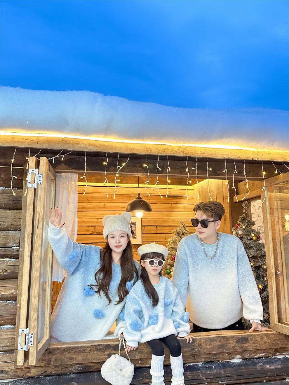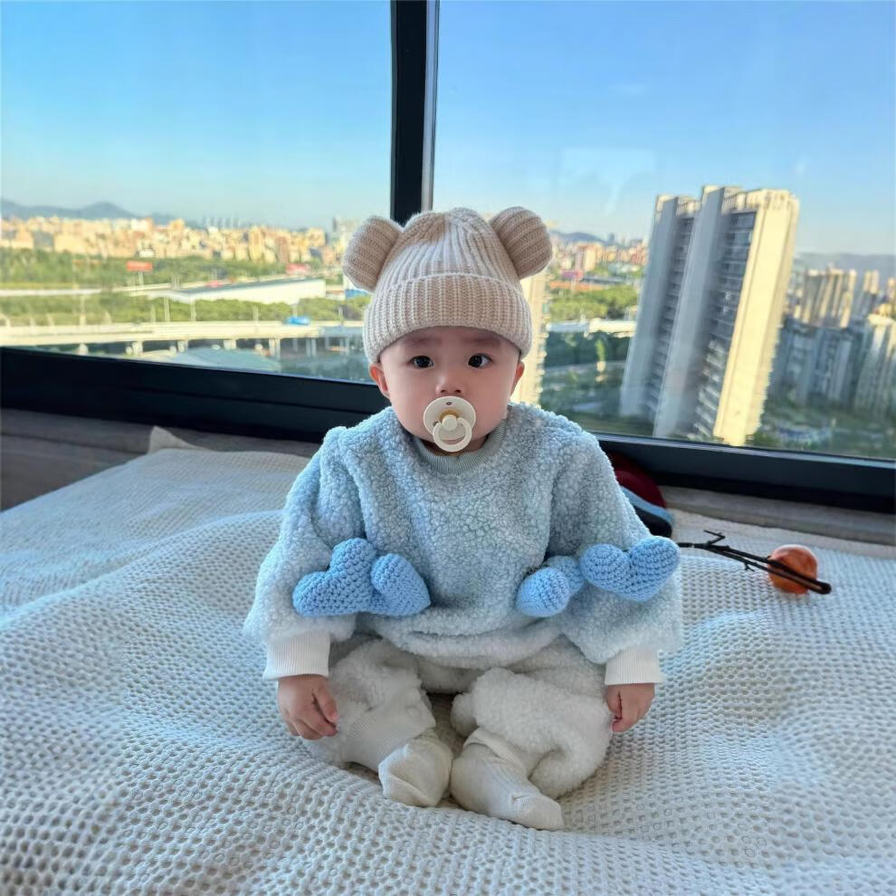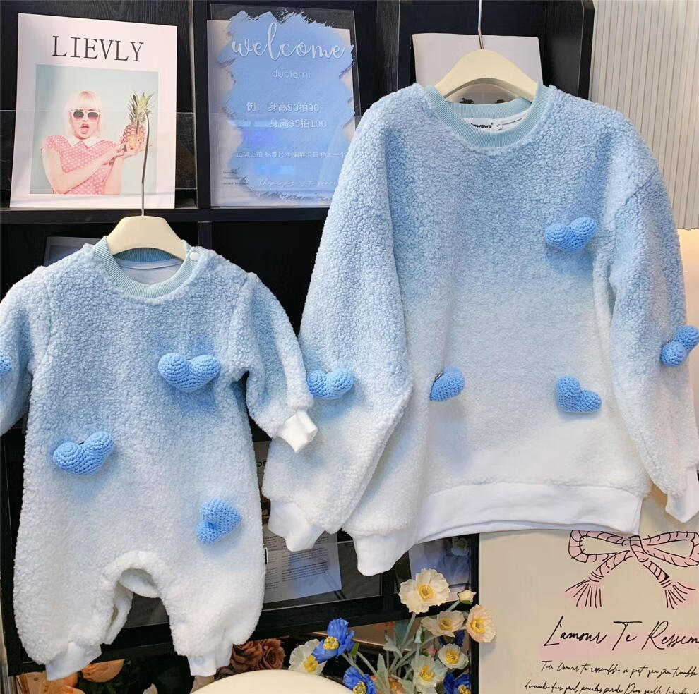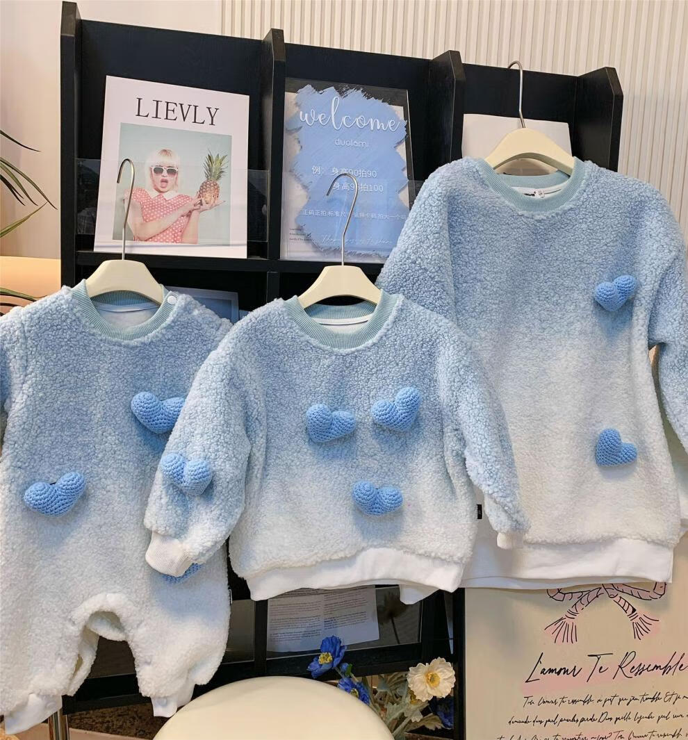 G.duck internet celebrity street sweatshirt parent-child outfit for a family of three, whole family outfit baby autumn and winter thickened velvet lambswool jacket blue velvet sweatshirt 165 adults S (85-105Jin Jin equals 0.5kg)