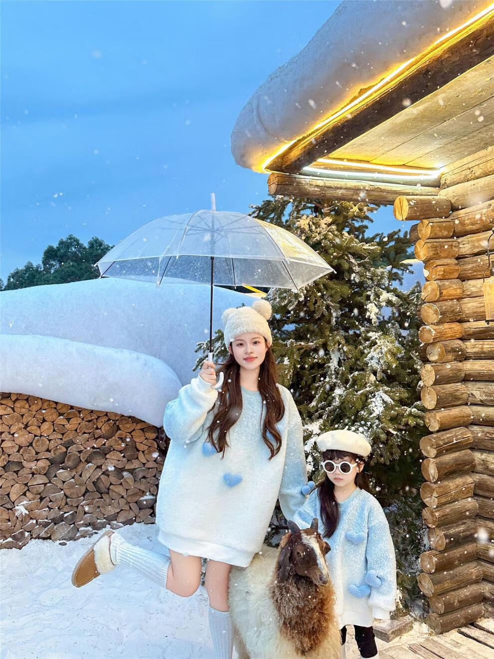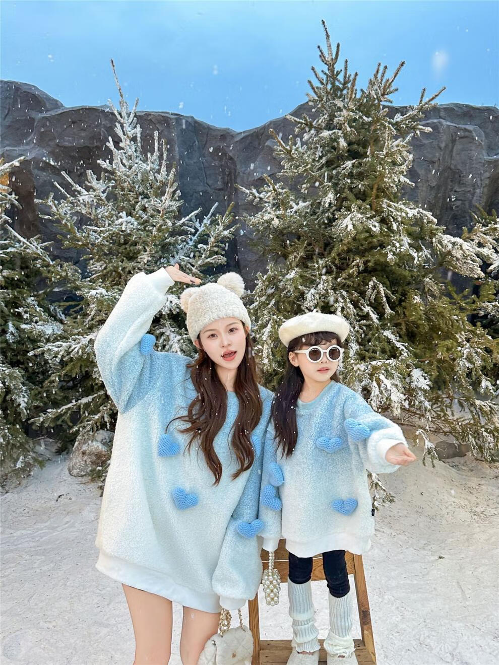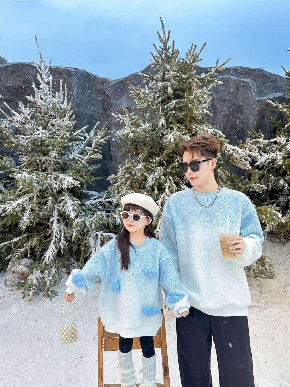 G.duck internet celebrity street sweatshirt parent-child outfit for a family of three, whole family outfit baby autumn and winter thickened velvet lambswool jacket blue velvet sweatshirt 165 adults S (85-105Jin Jin equals 0.5kg)