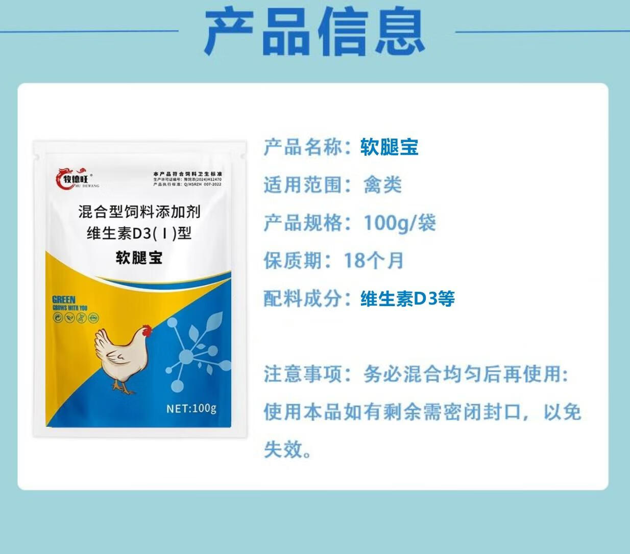 Mudewang soft-legged chicken, duck, goose, pigeon and poultry breeding general livestock feed additive 2 bags
