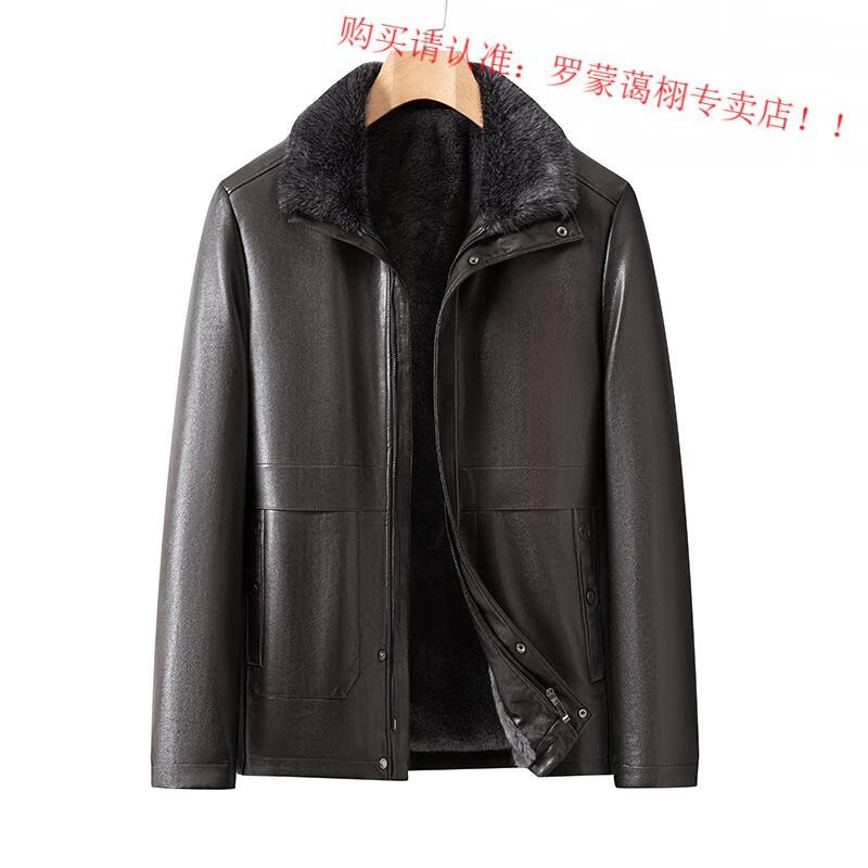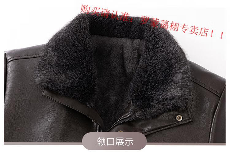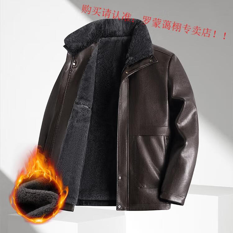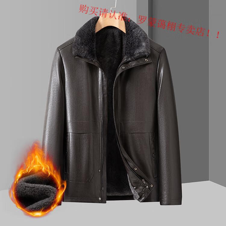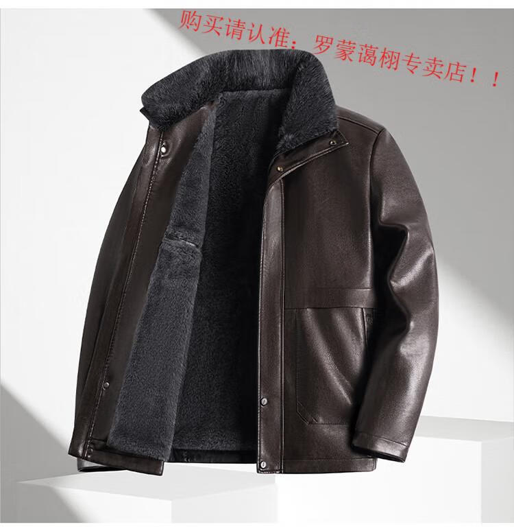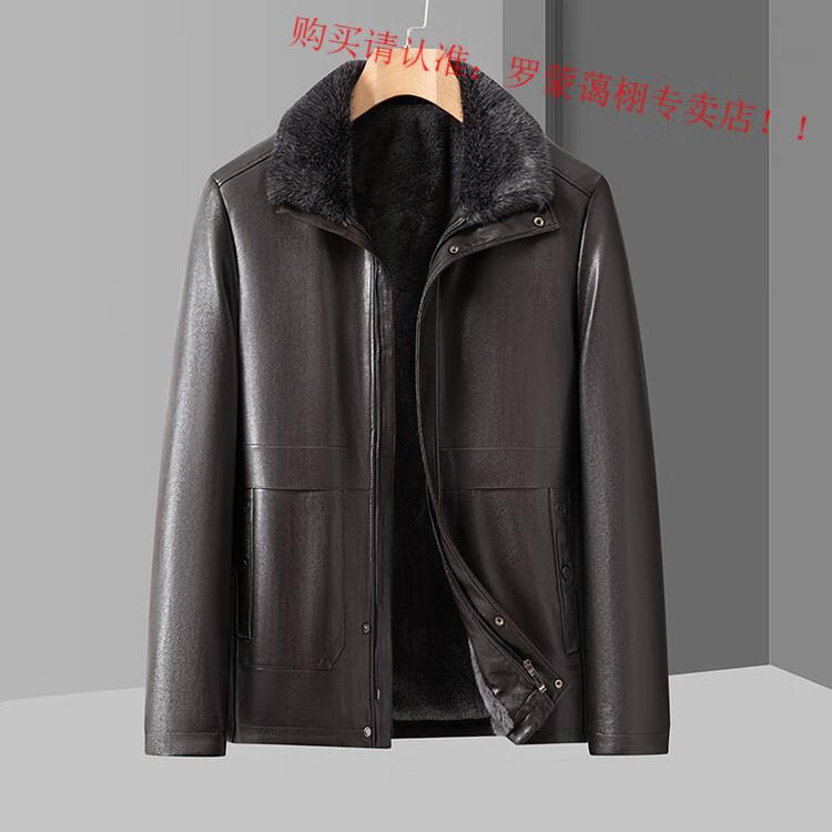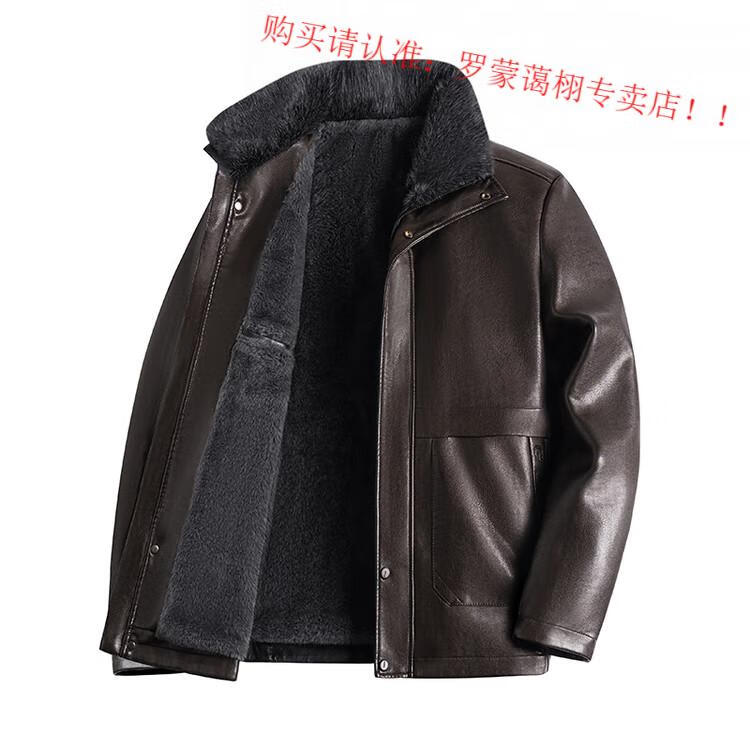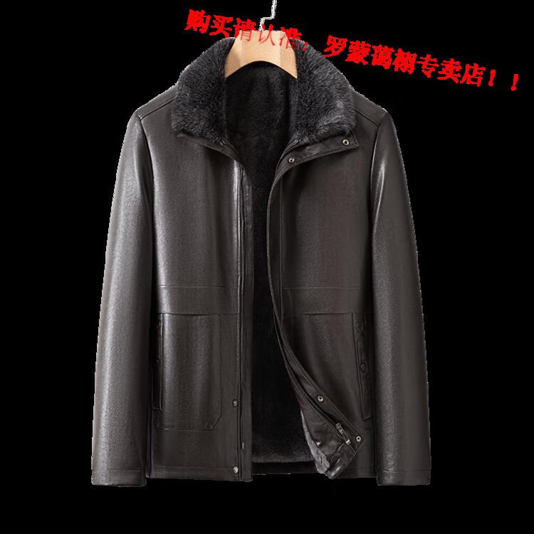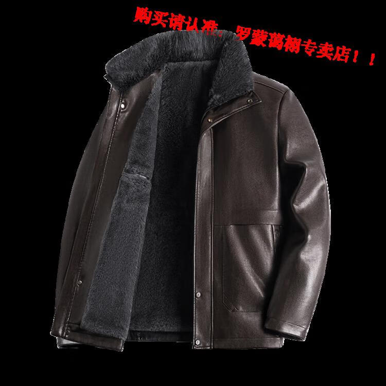 Luo Meng middle-aged and elderly men's leather jacket with velvet and thickened dad's clothing autumn and winter coat fur all-in-one velvet men's leather jacket jacket brown 4XL 195