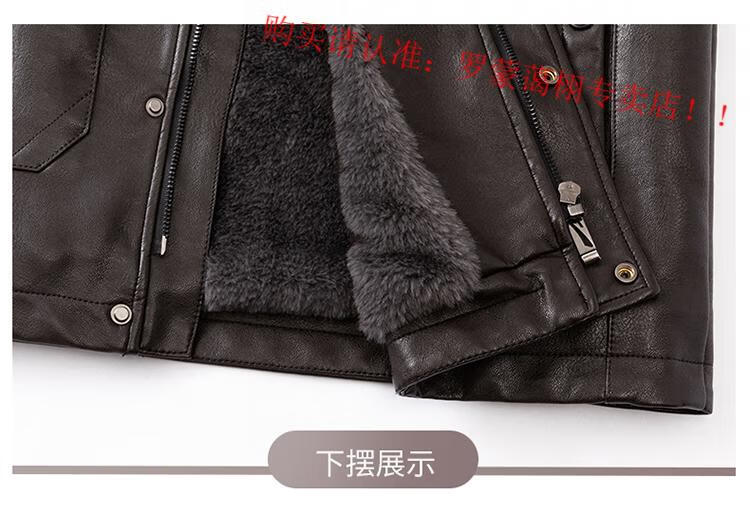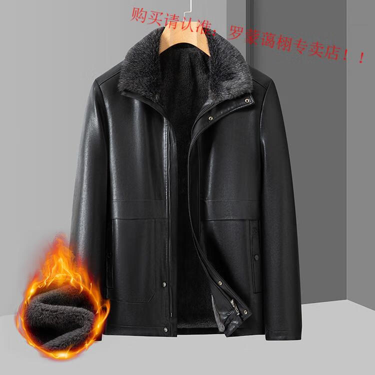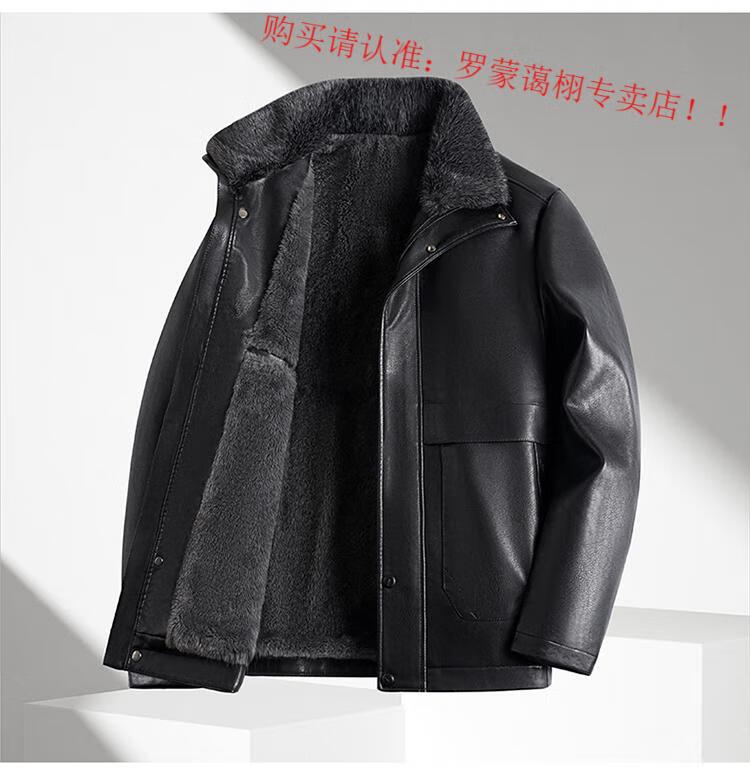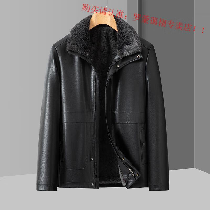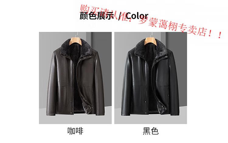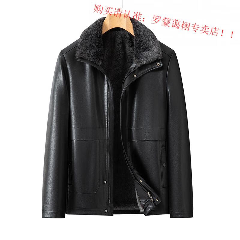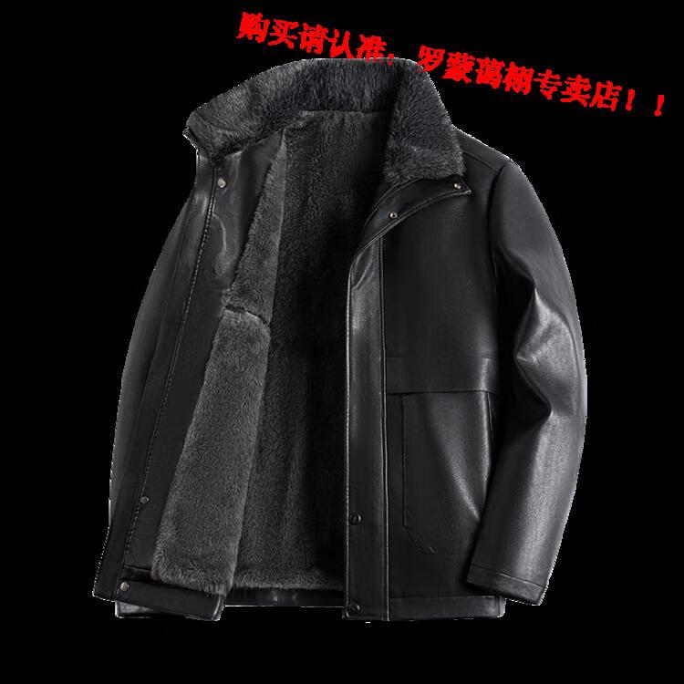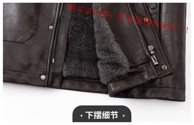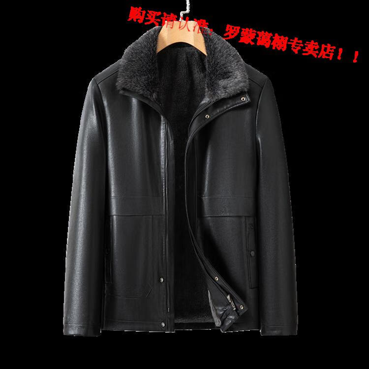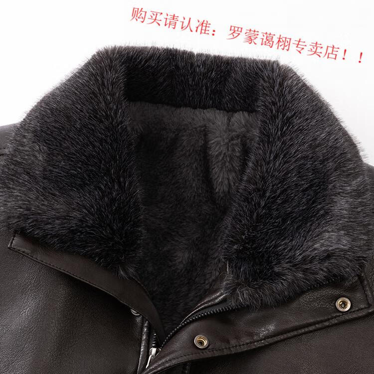 Luo Meng middle-aged and elderly men's leather jacket with velvet and thickened dad's clothing autumn and winter coat fur all-in-one velvet men's leather jacket jacket brown 4XL 195