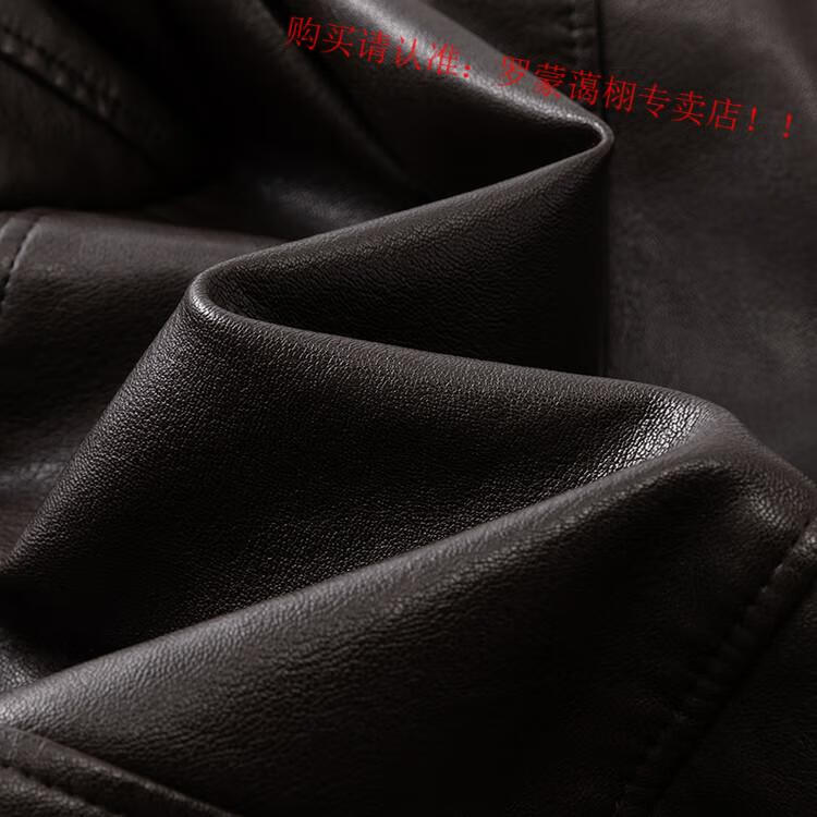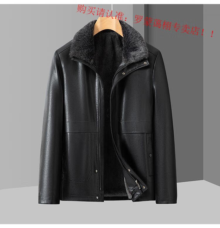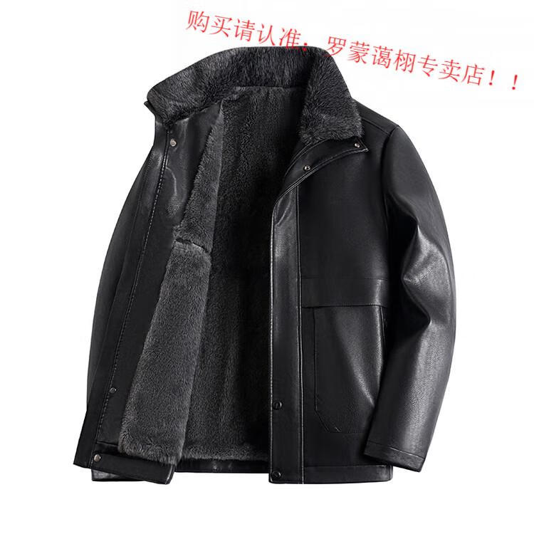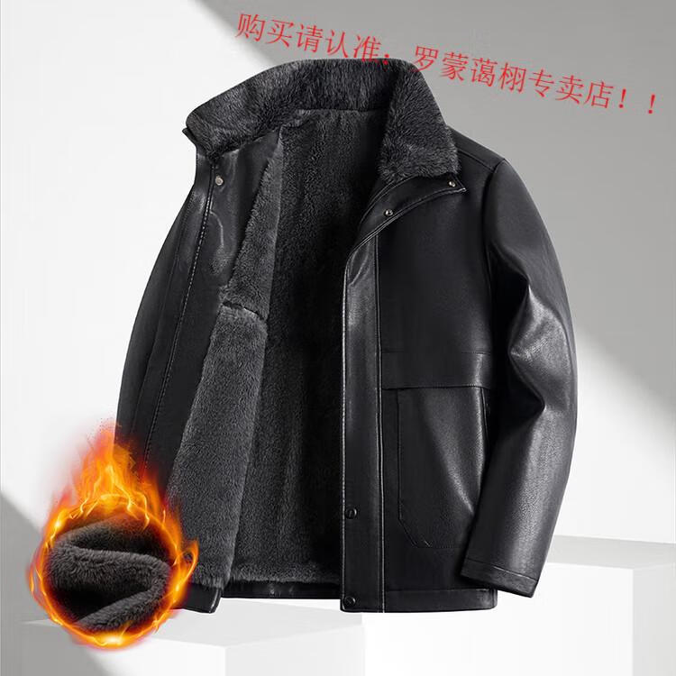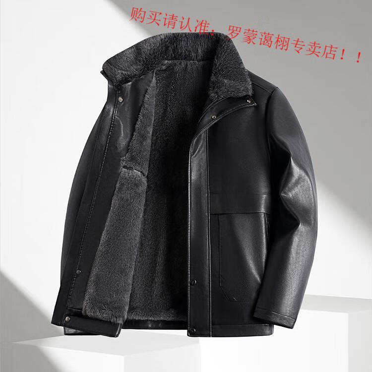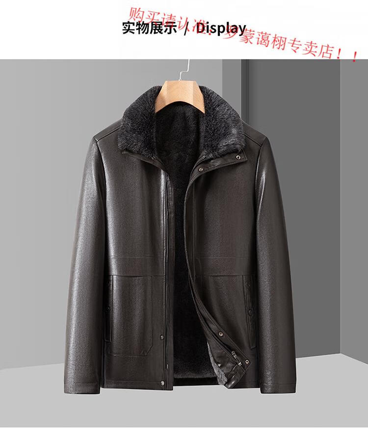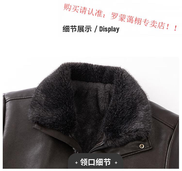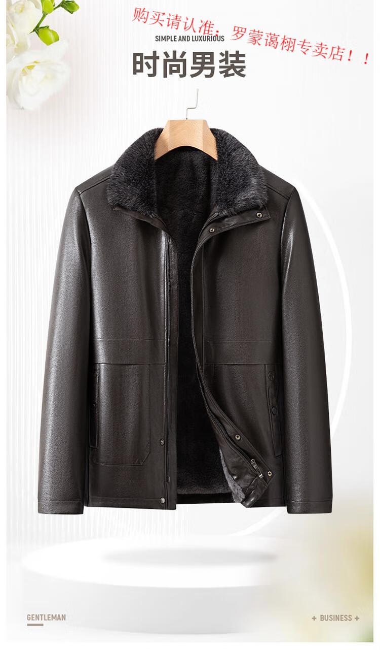Luo Meng middle-aged and elderly men's leather jacket with velvet and thickened dad's clothing autumn and winter coat fur all-in-one velvet men's leather jacket jacket brown 4XL 195