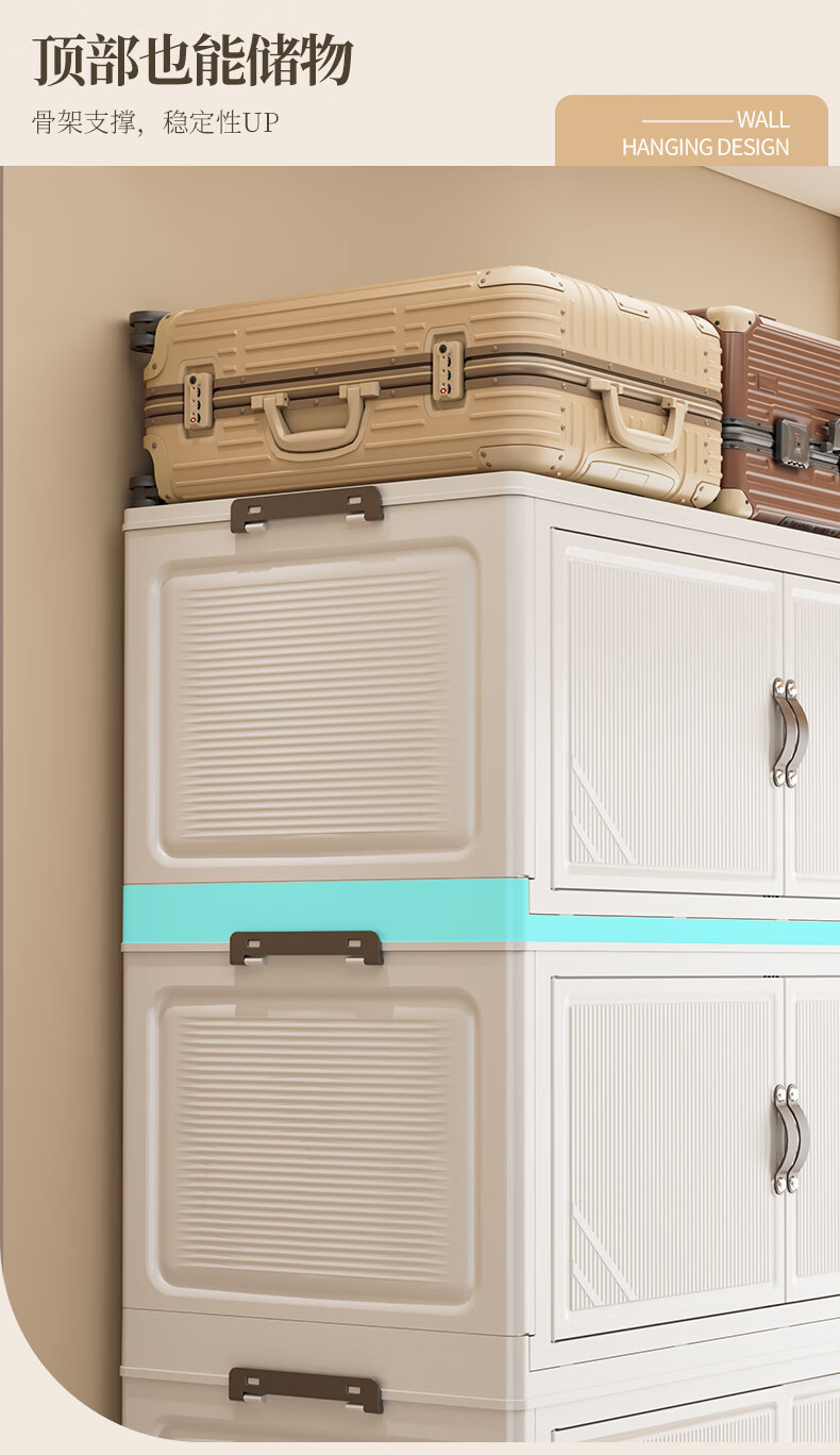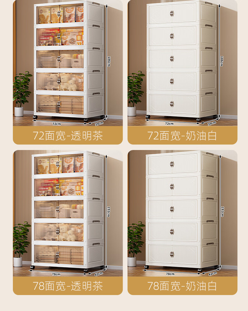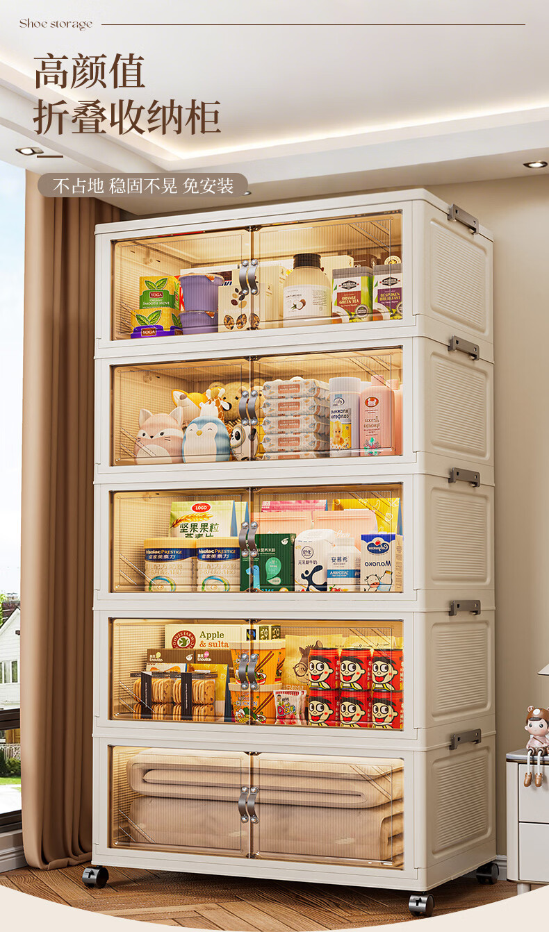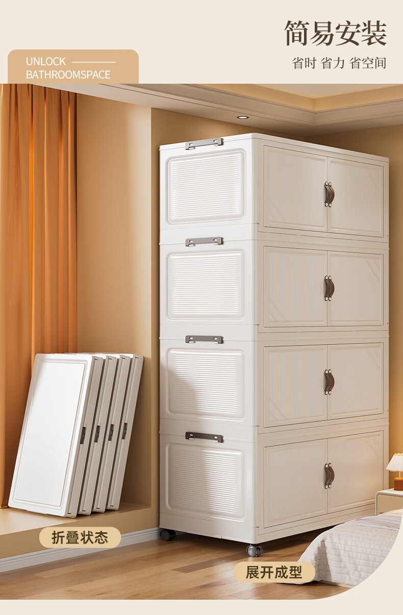 Nafenai Thickened 78CM Folding Storage Cabinet Simple Wardrobe Storage Cabinet Children's Toys Snacks Multi-layer Storage Storage Box 50CM Width Promotional Price Mixed Color Vertical Stripes Five Layers With Universal Wheels/No Installation