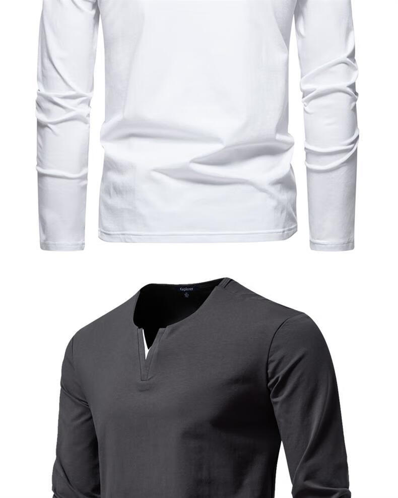 MLB&NY trendy brand v-neck right shoulder long-sleeved T-shirt 2025 new T-shirt for men with loose t-shirt bottoming shirt Henry collar top white S weight 90-120Jin Jin is equal to 0.5 kg
