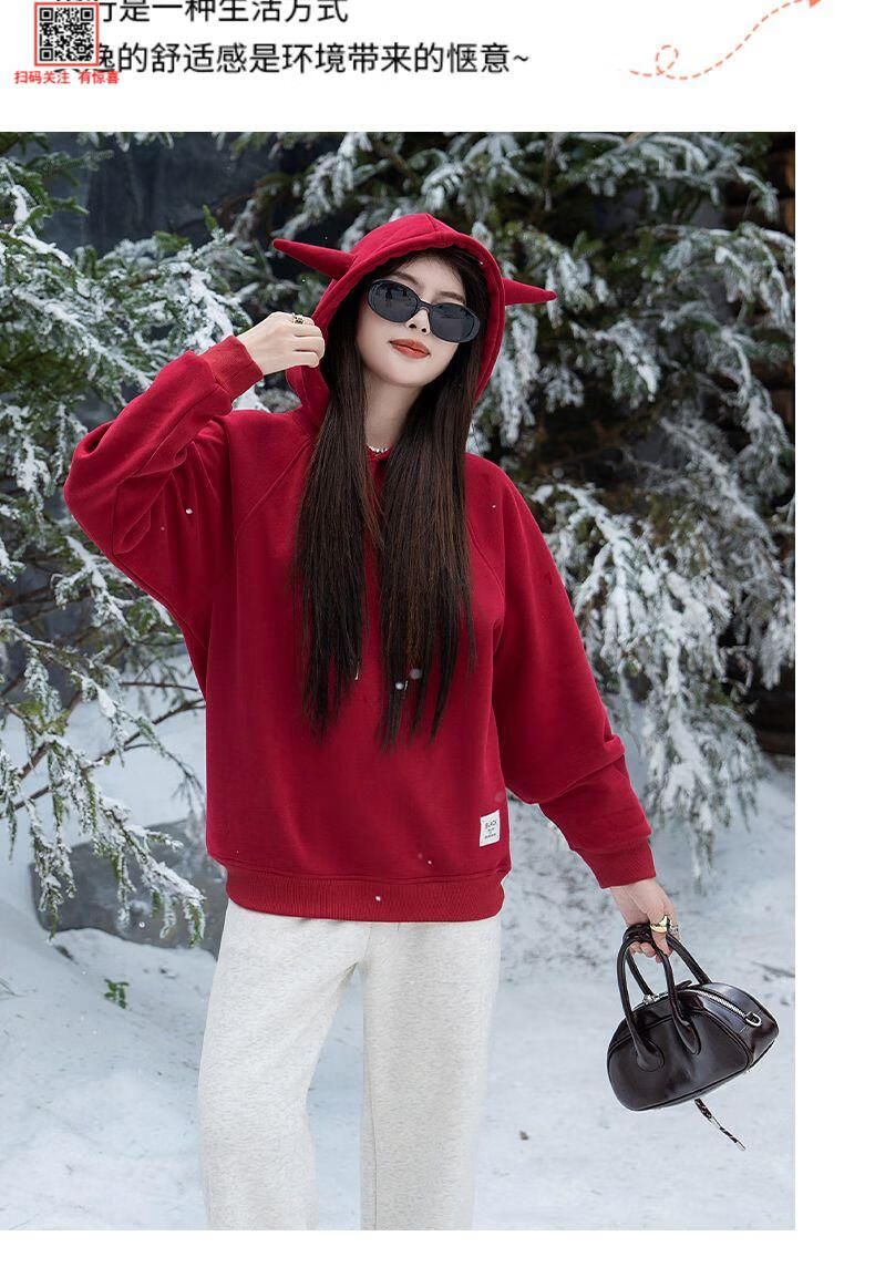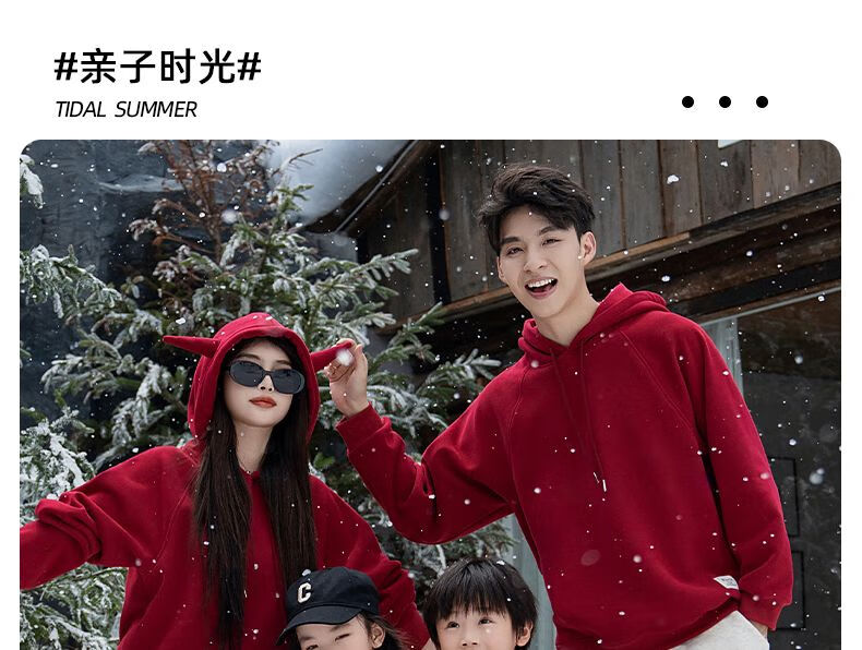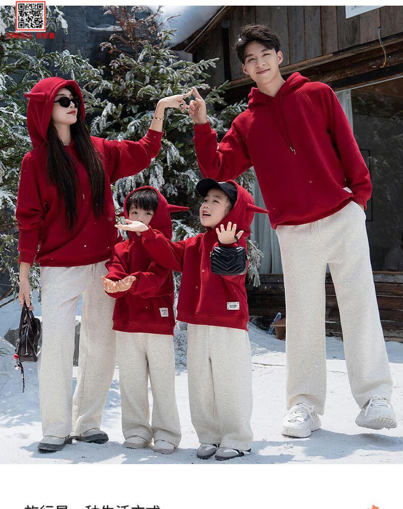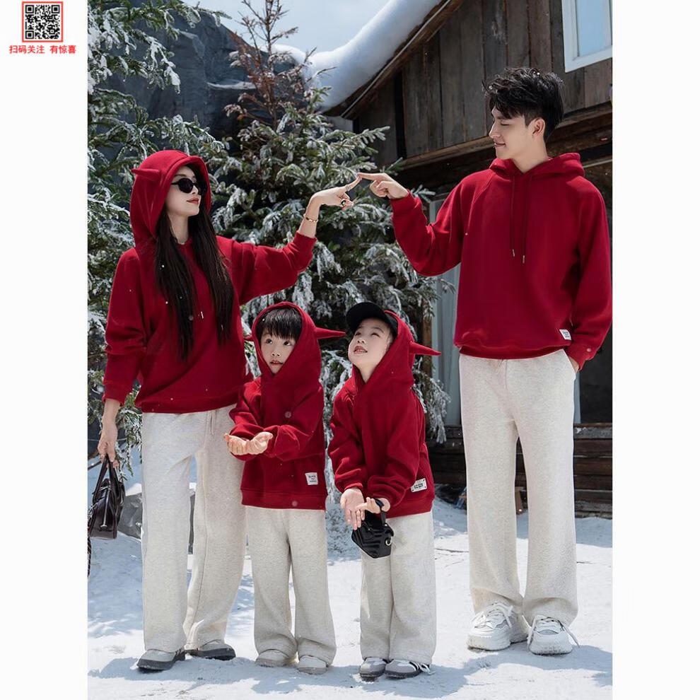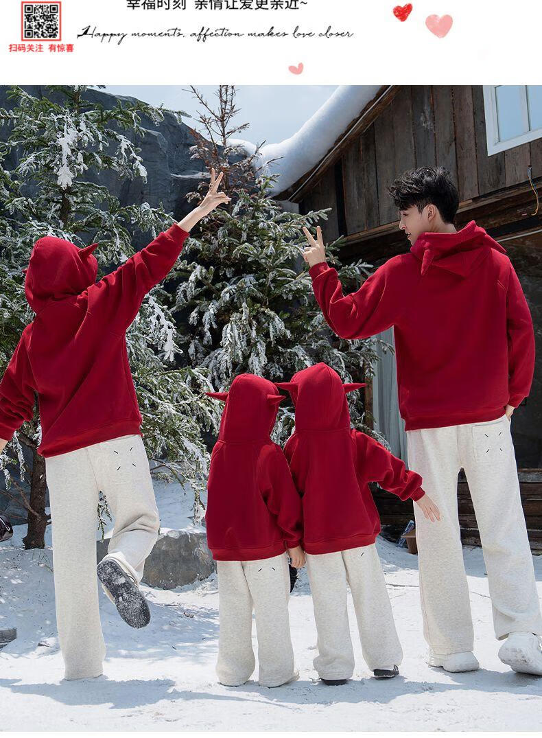 G.duck parent-child clothing for a family of three 2025 new mother-daughter burgundy autumn sweatshirt for four-person family hooded autumn and winter burgundy hooded velvet sweatshirt 120 cm